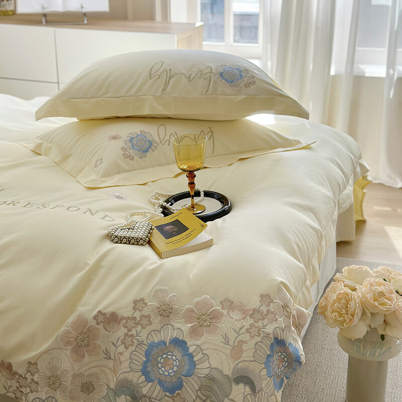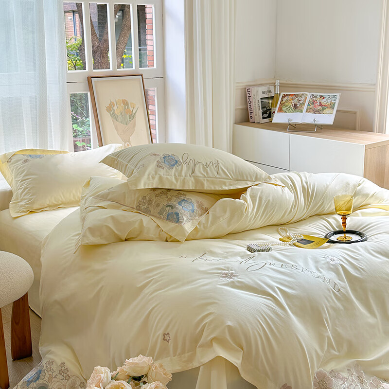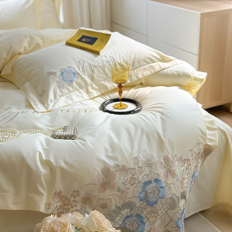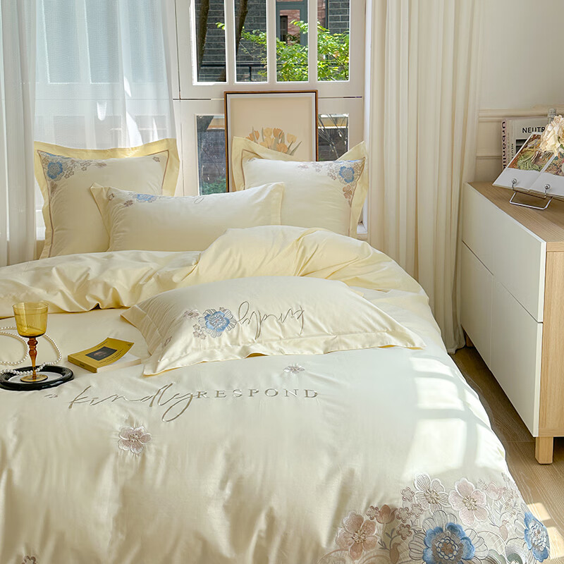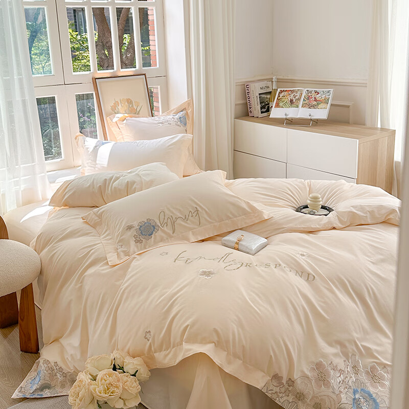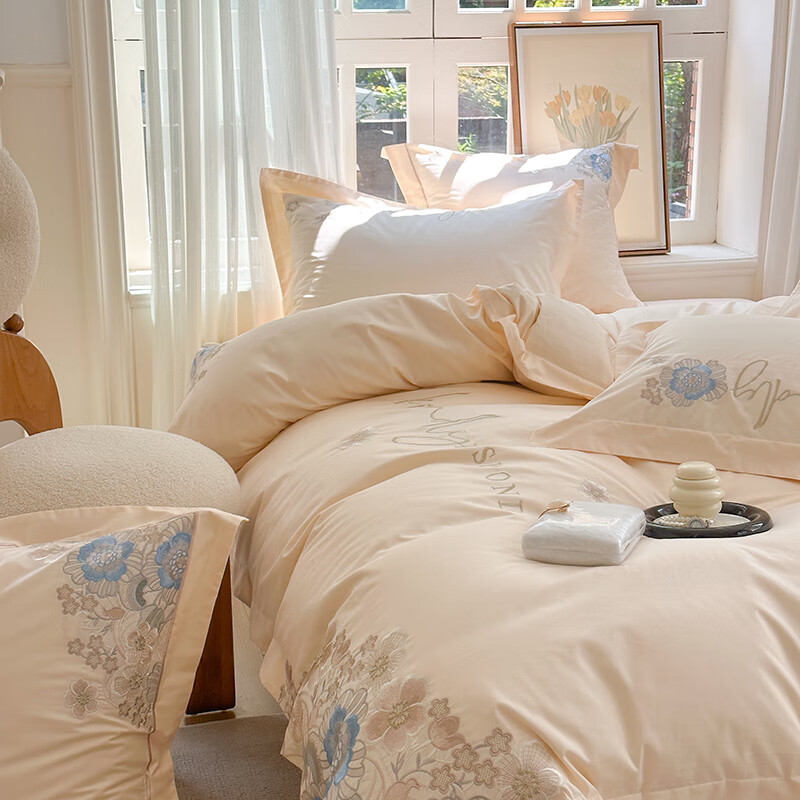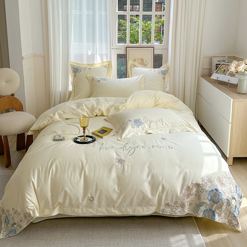 百丽丝四件套100支双股精致刺绣长绒棉四件套 迪丽莎尔(珊瑚金色) 床单款 (被套200*230cm)