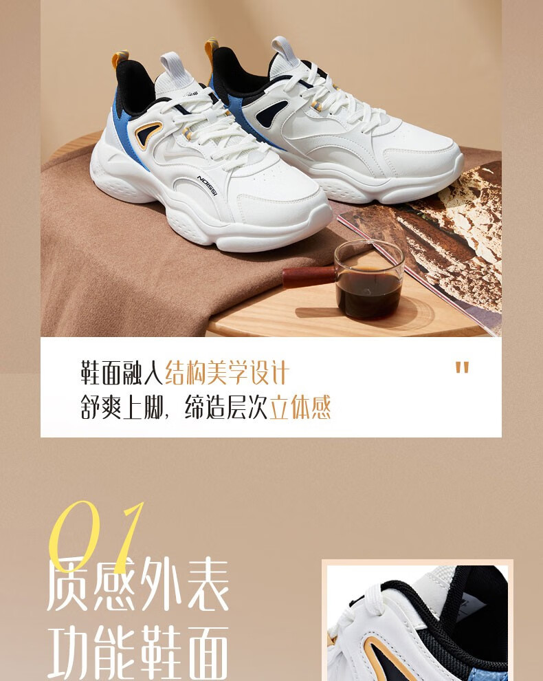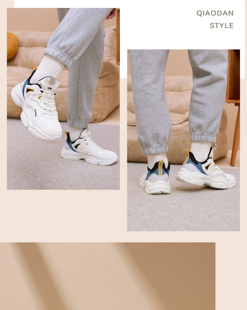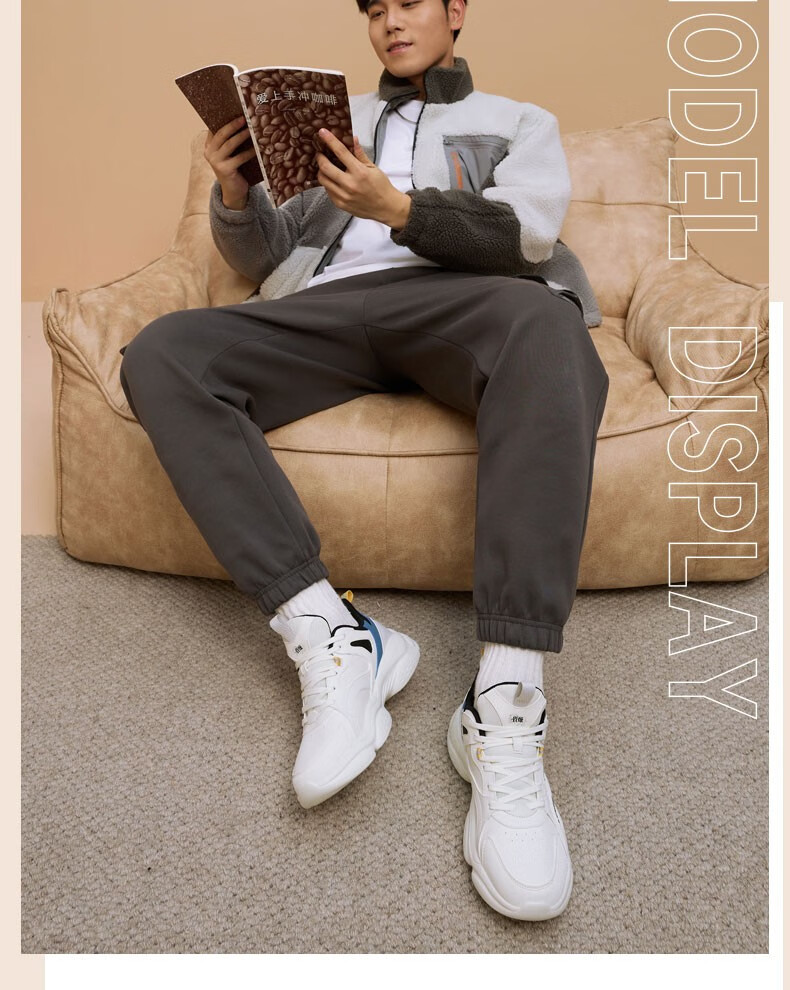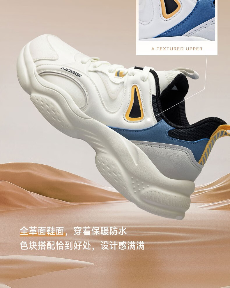 乔丹运动鞋男鞋2025年新款冬季革面休闲鞋复古轻便老爹鞋跑步鞋 象牙色/随影蓝 加绒版 41