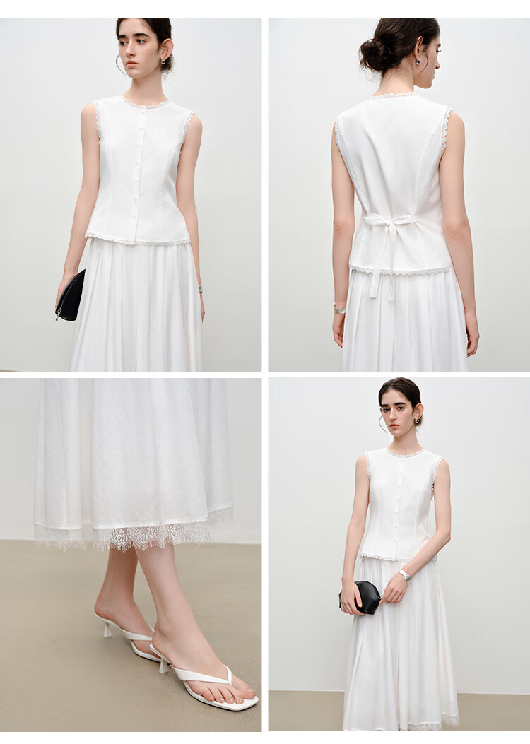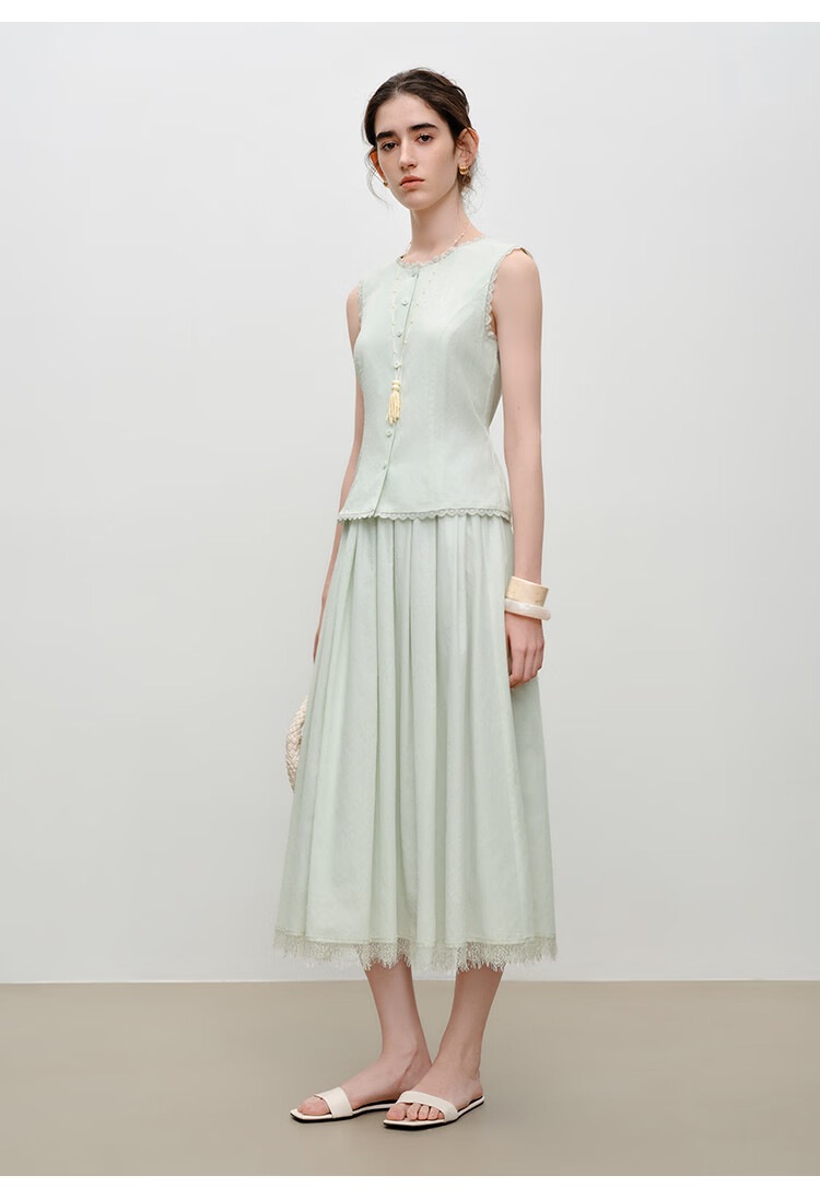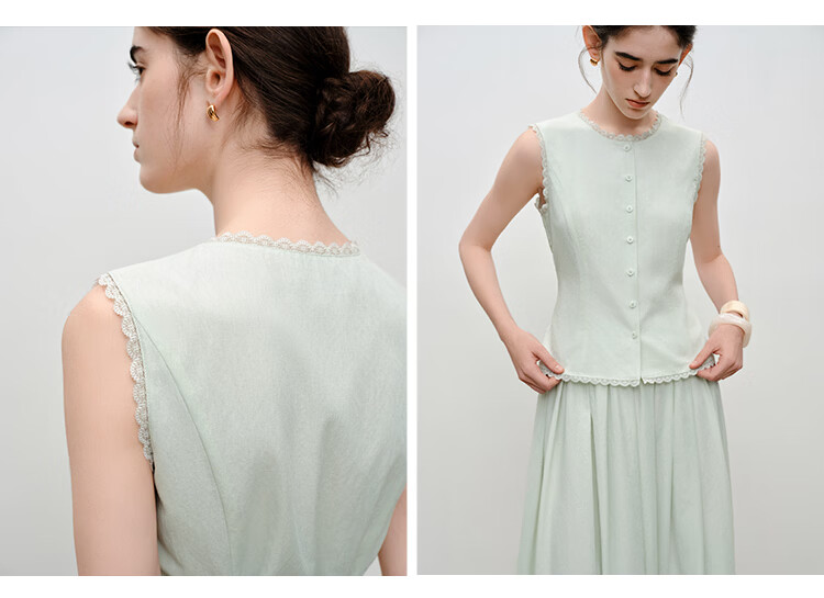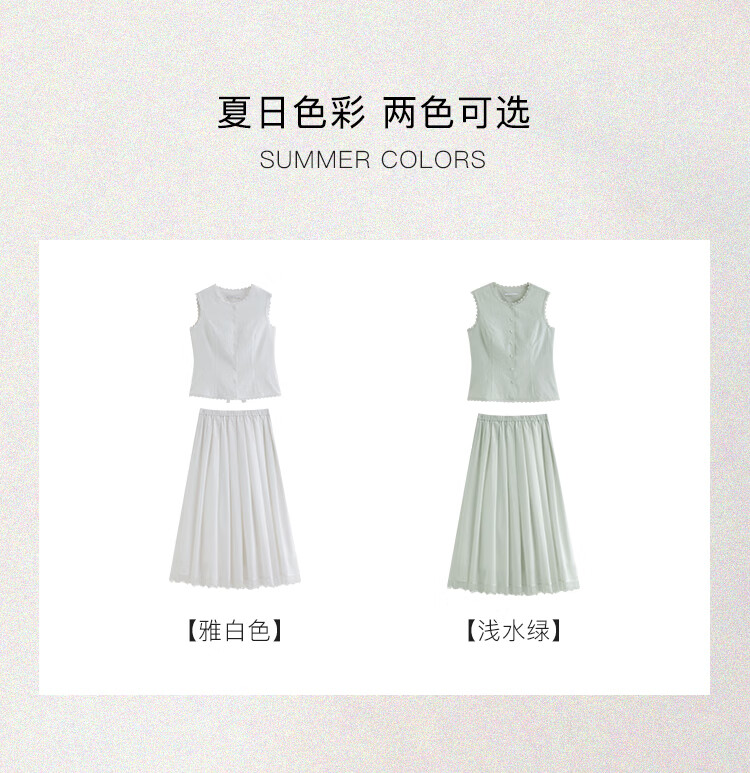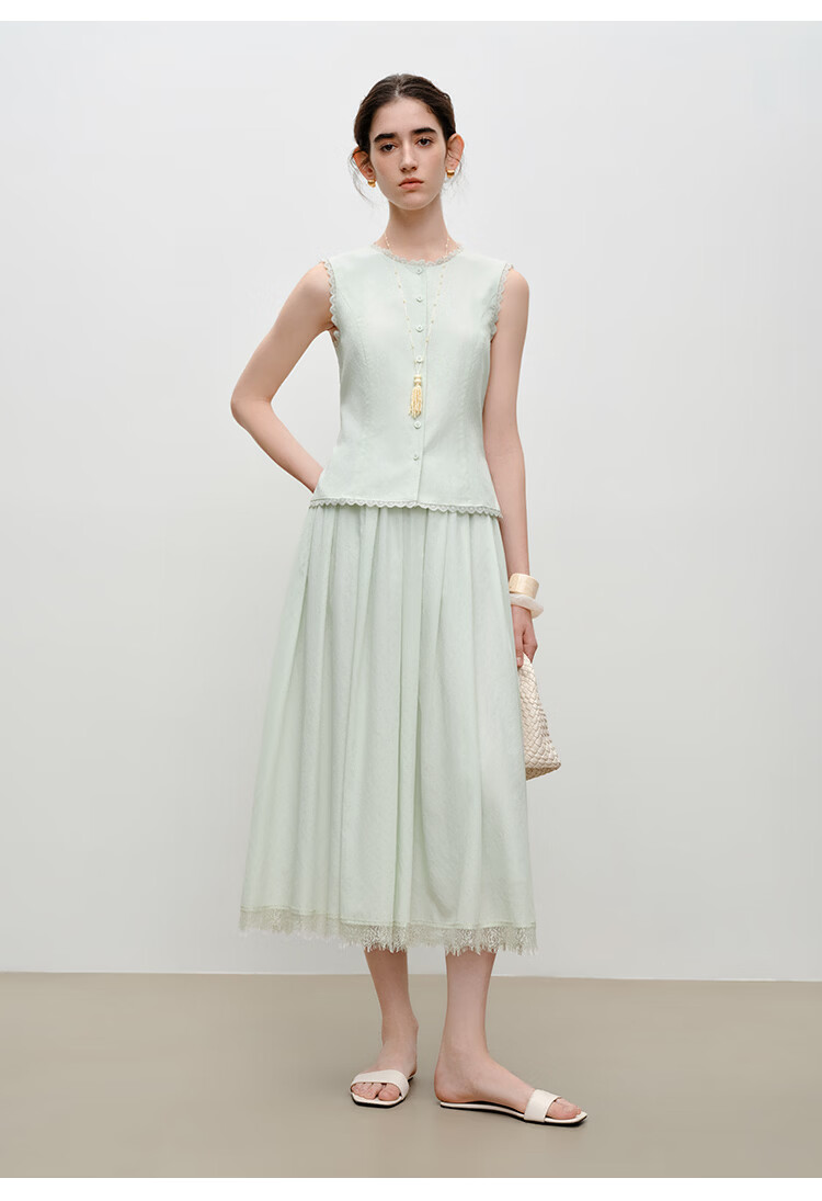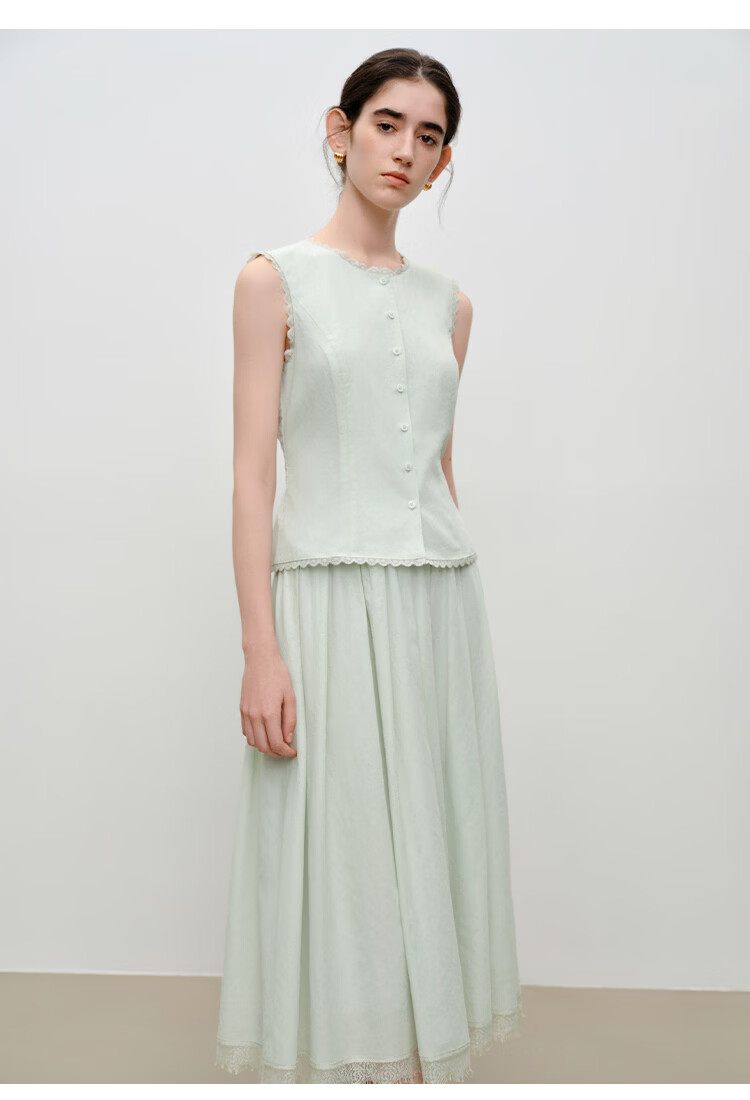 自巧【悦己小白裙】小个子蕾丝花边无袖衬衫套装裙女2026夏季新款 浅水绿半裙 M (尺码:4)