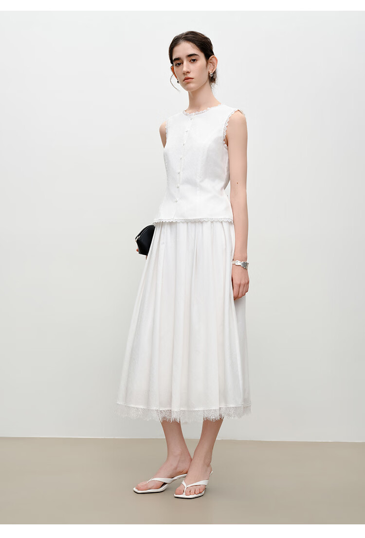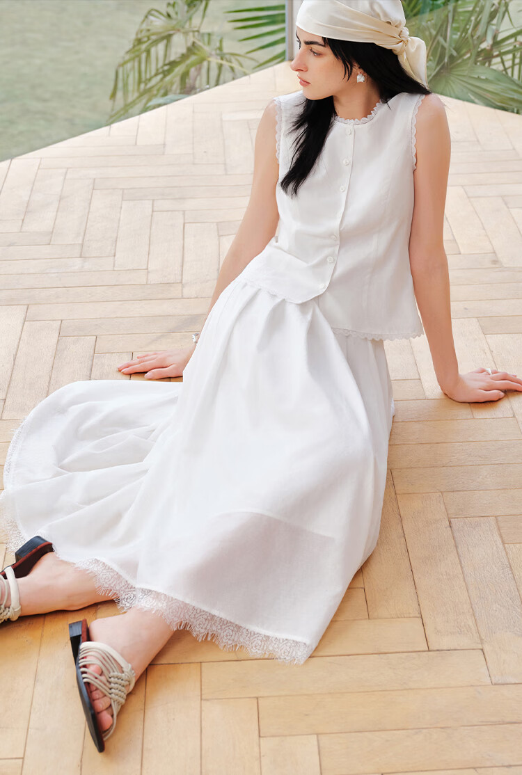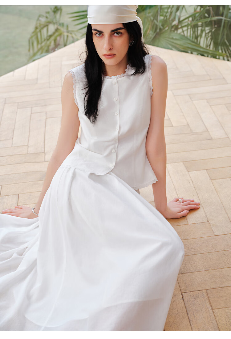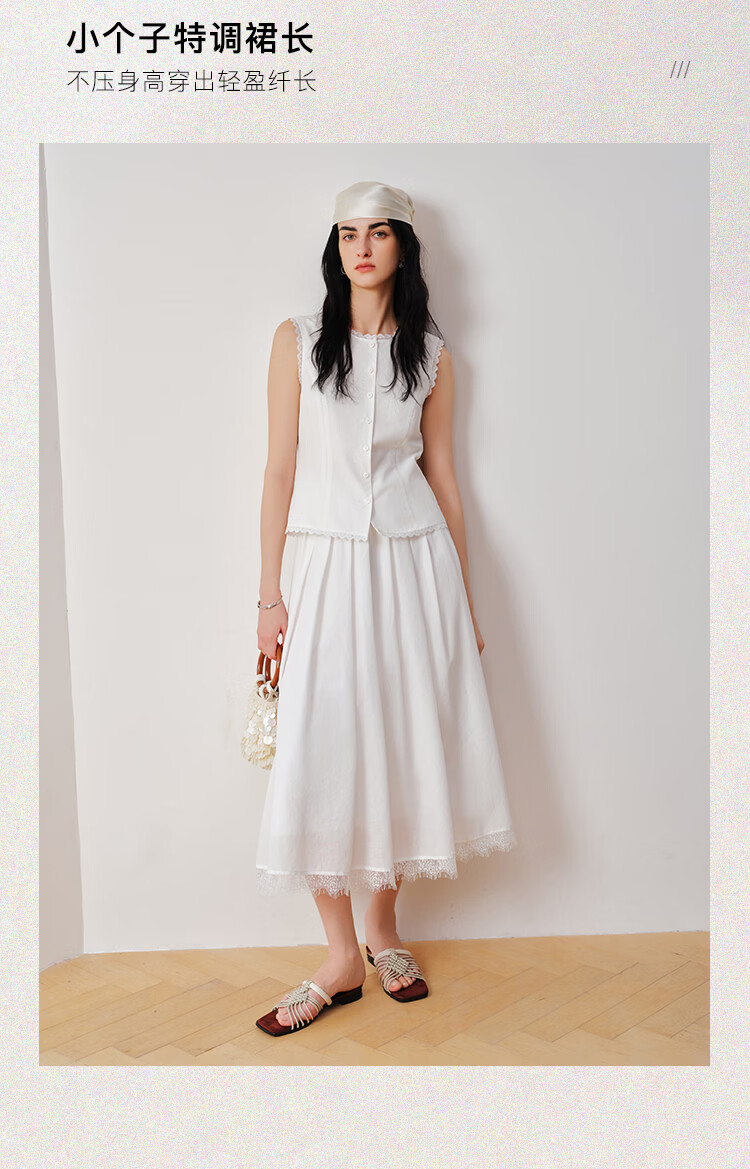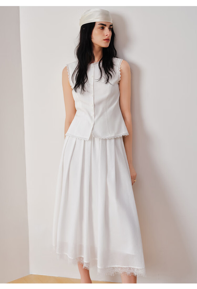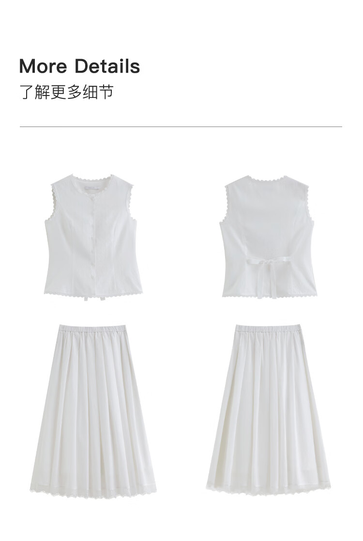自巧【悦己小白裙】小个子蕾丝花边无袖衬衫套装裙女2026夏季新款 浅水绿半裙 M (尺码:4)