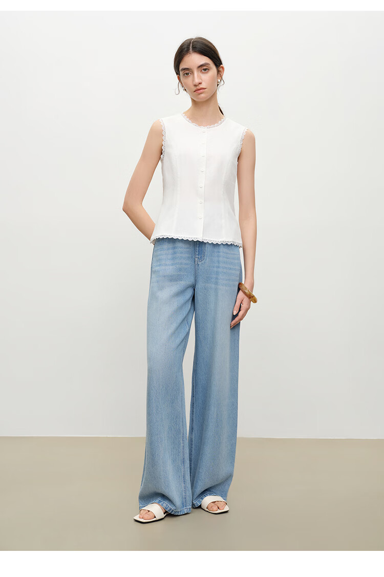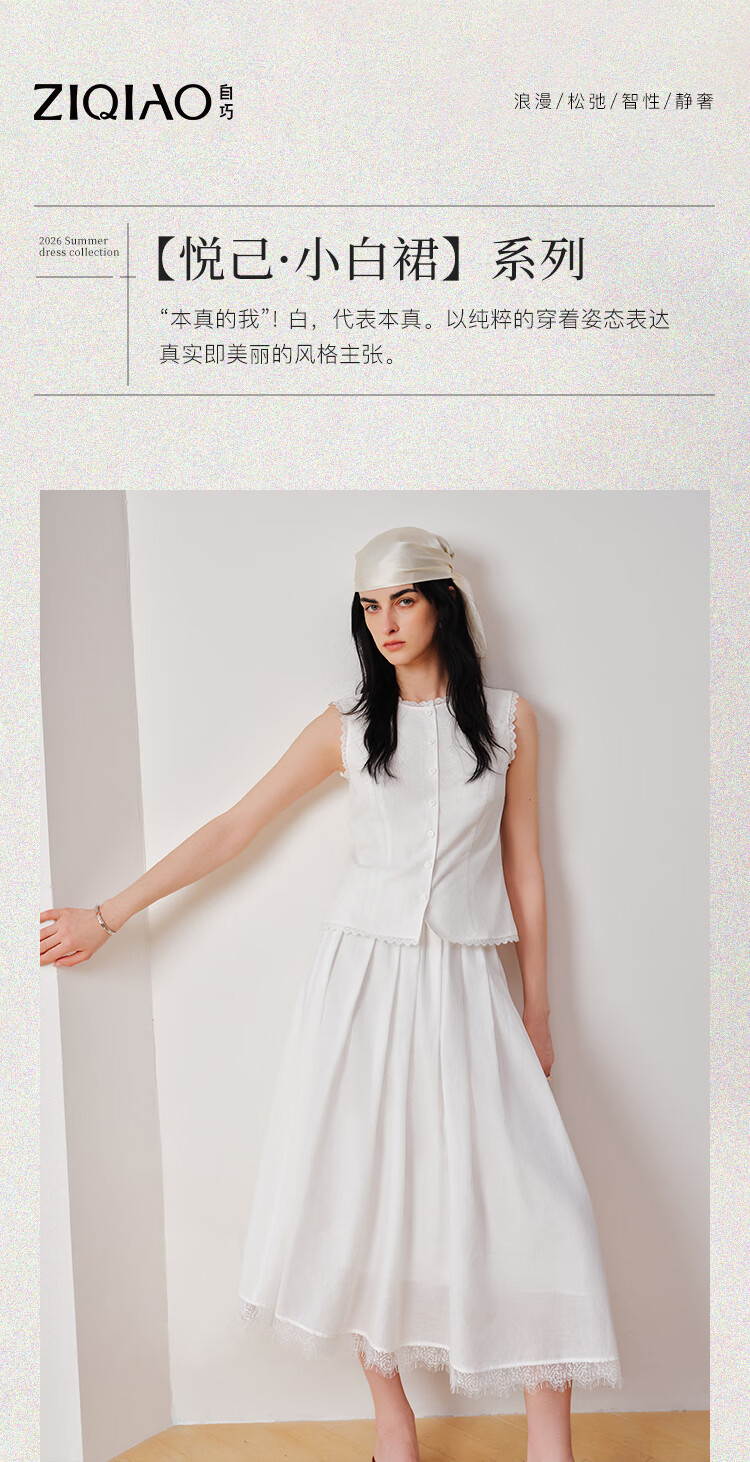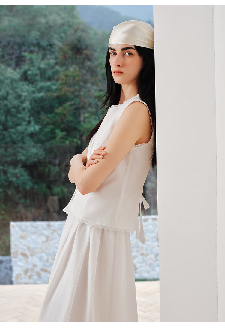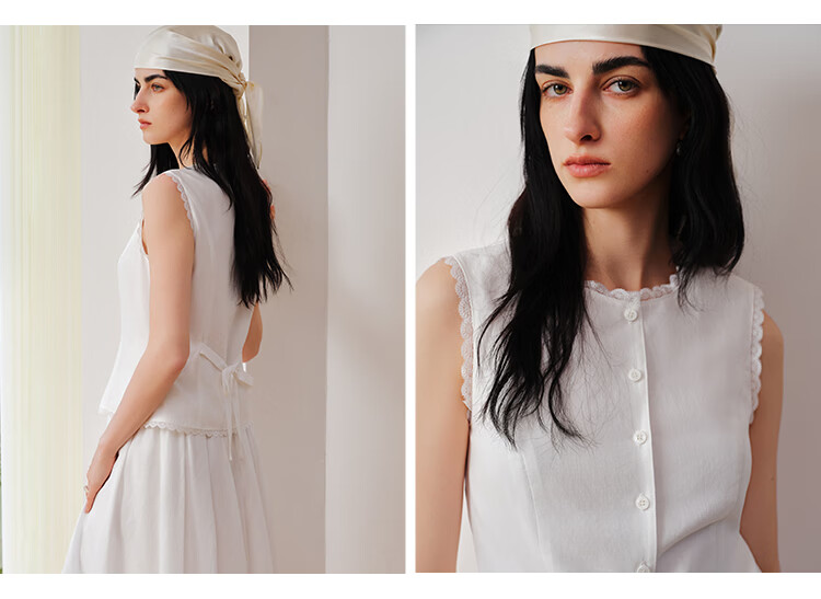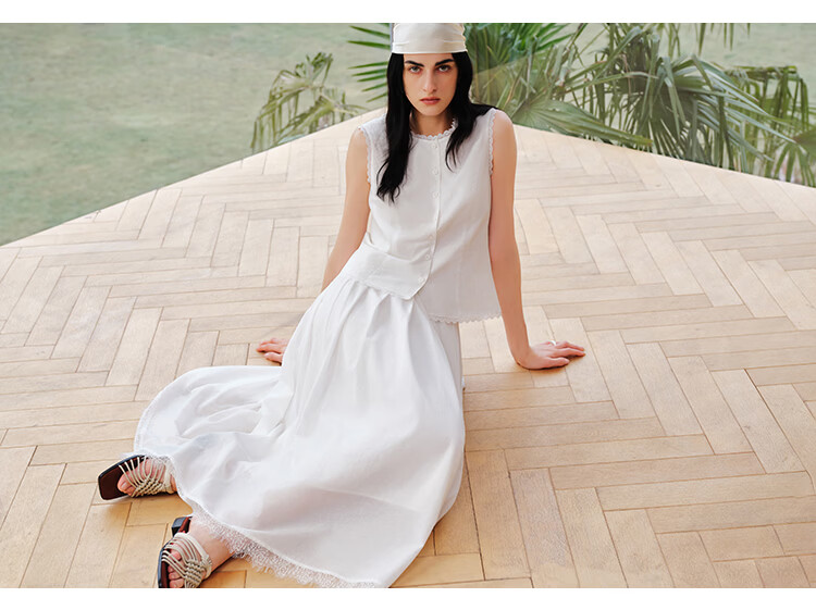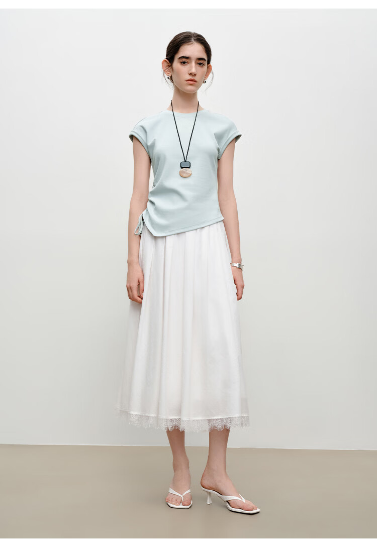 自巧【悦己小白裙】小个子蕾丝花边无袖衬衫套装裙女2026夏季新款 浅水绿半裙 M (尺码:4)