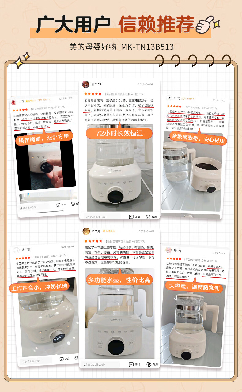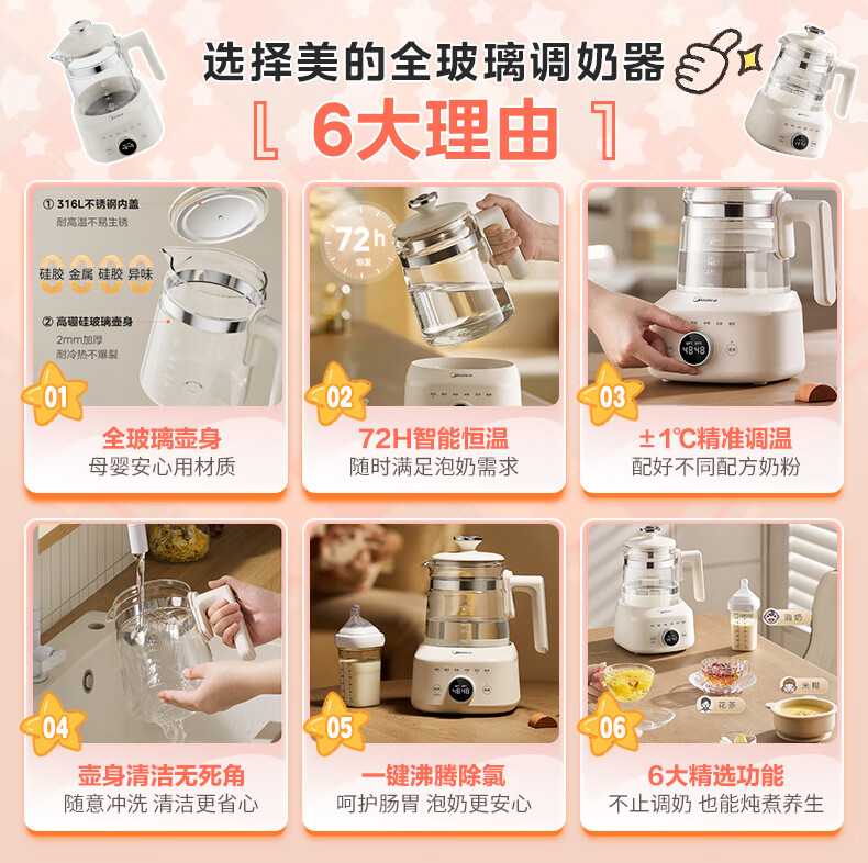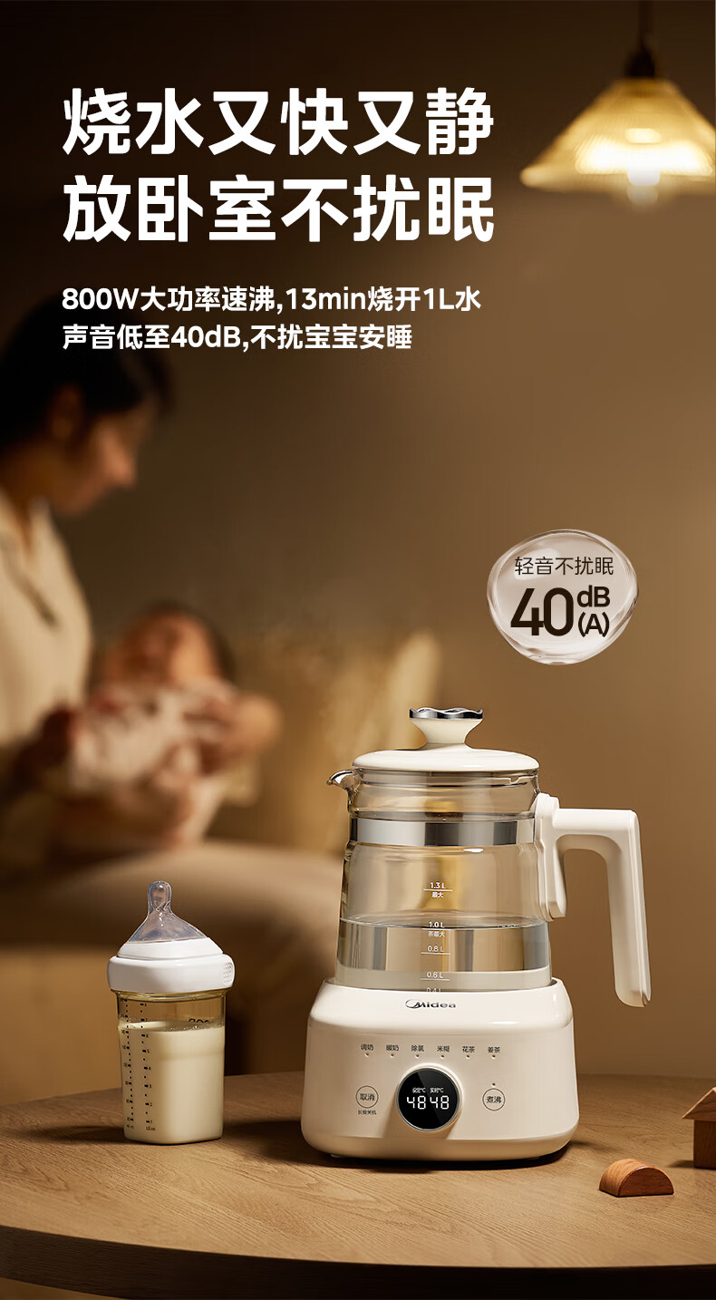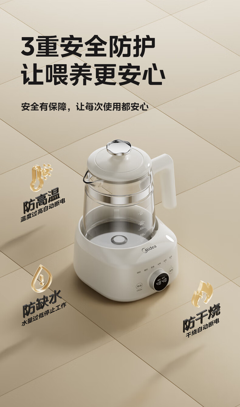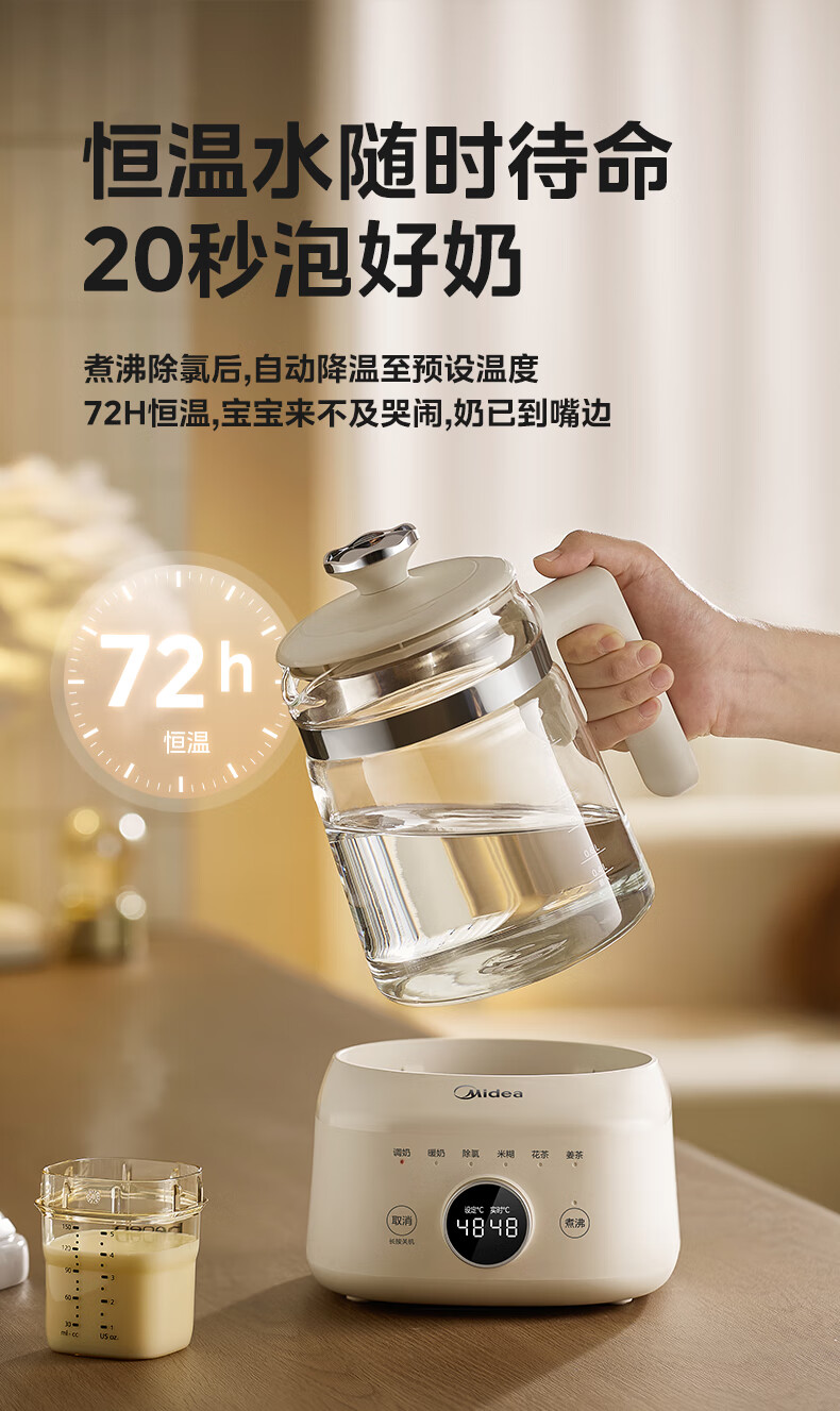 美的(Midea)全玻璃恒温水壶 恒温壶婴儿冲奶 电热水壶烧水壶养生壶 小皇冠