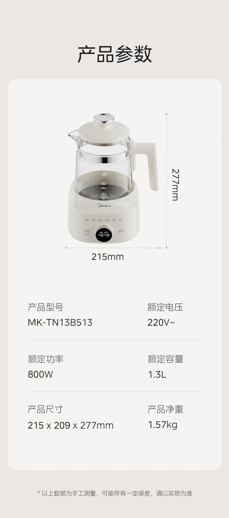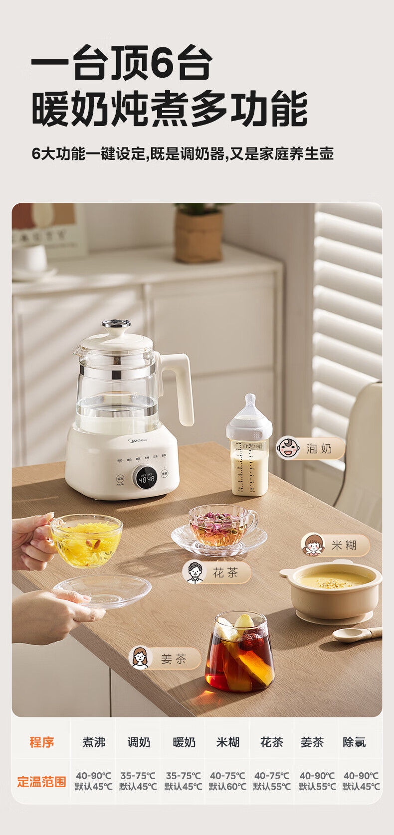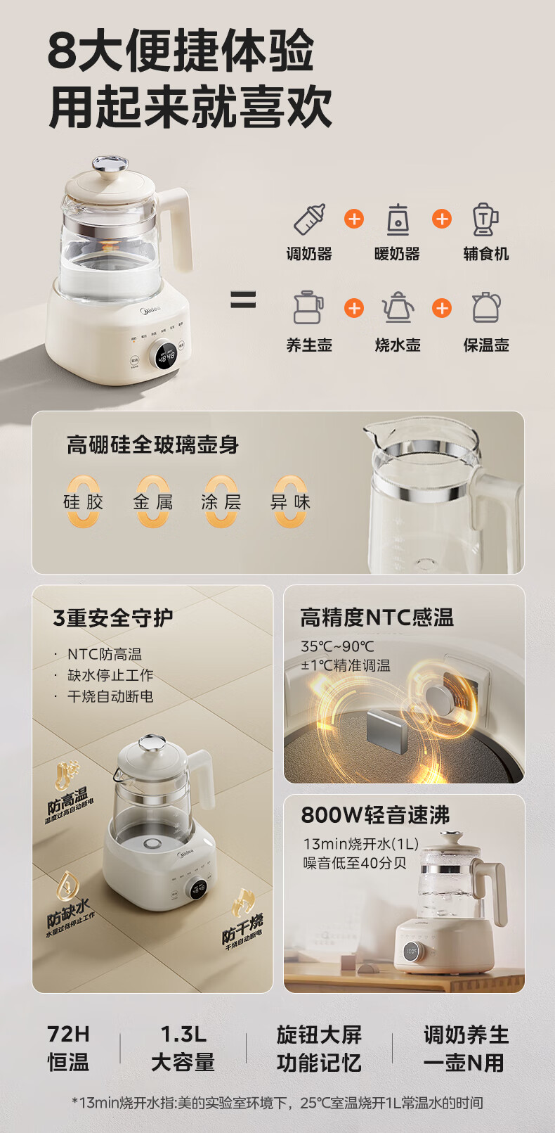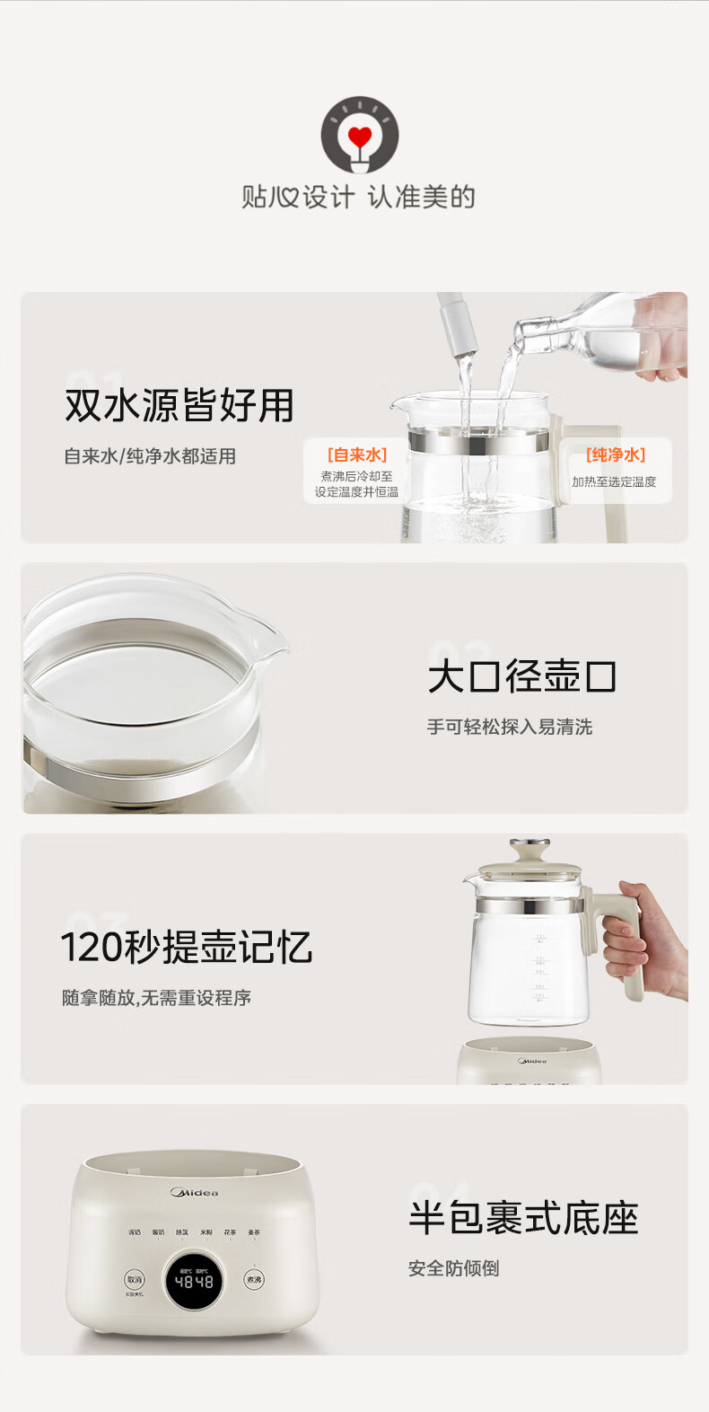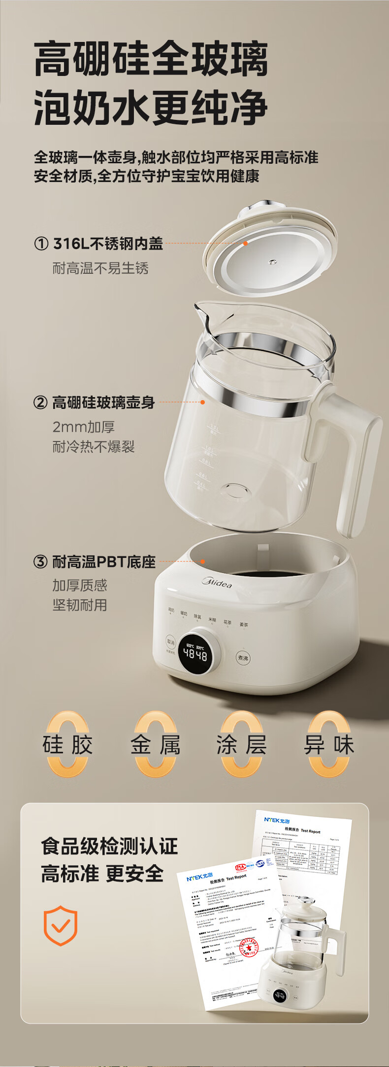 美的(Midea)全玻璃恒温水壶 恒温壶婴儿冲奶 电热水壶烧水壶养生壶 小皇冠