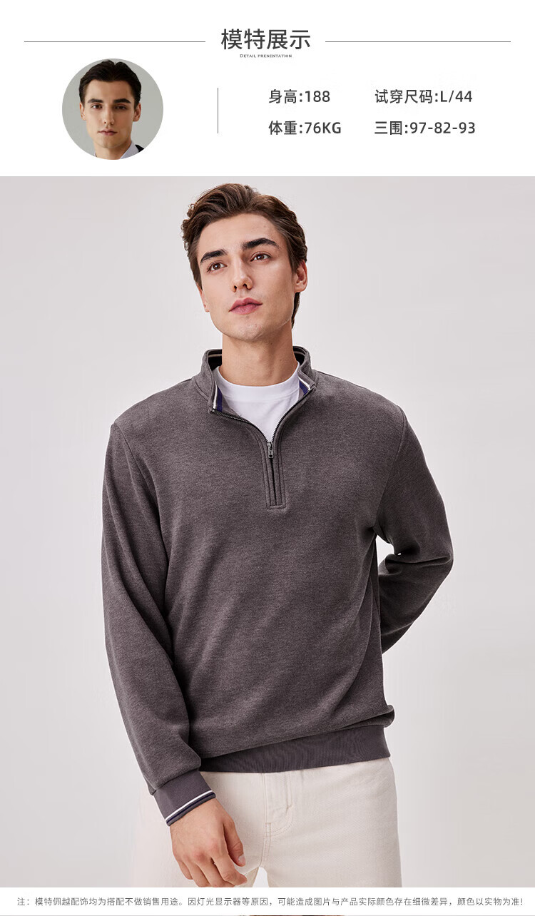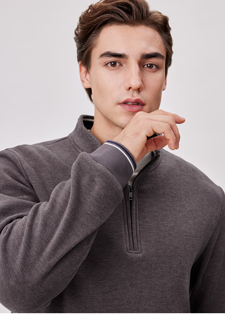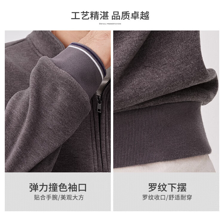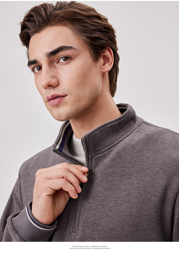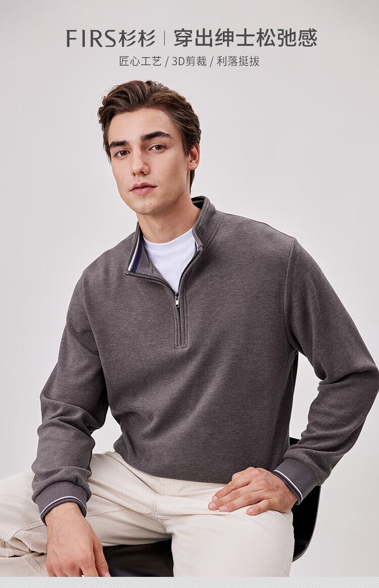杉杉(FIRS)【双面纳米绒】卫衣男秋冬款加厚保暖柔软弹力休闲半开襟撞色上衣 卡其 M 170/88A