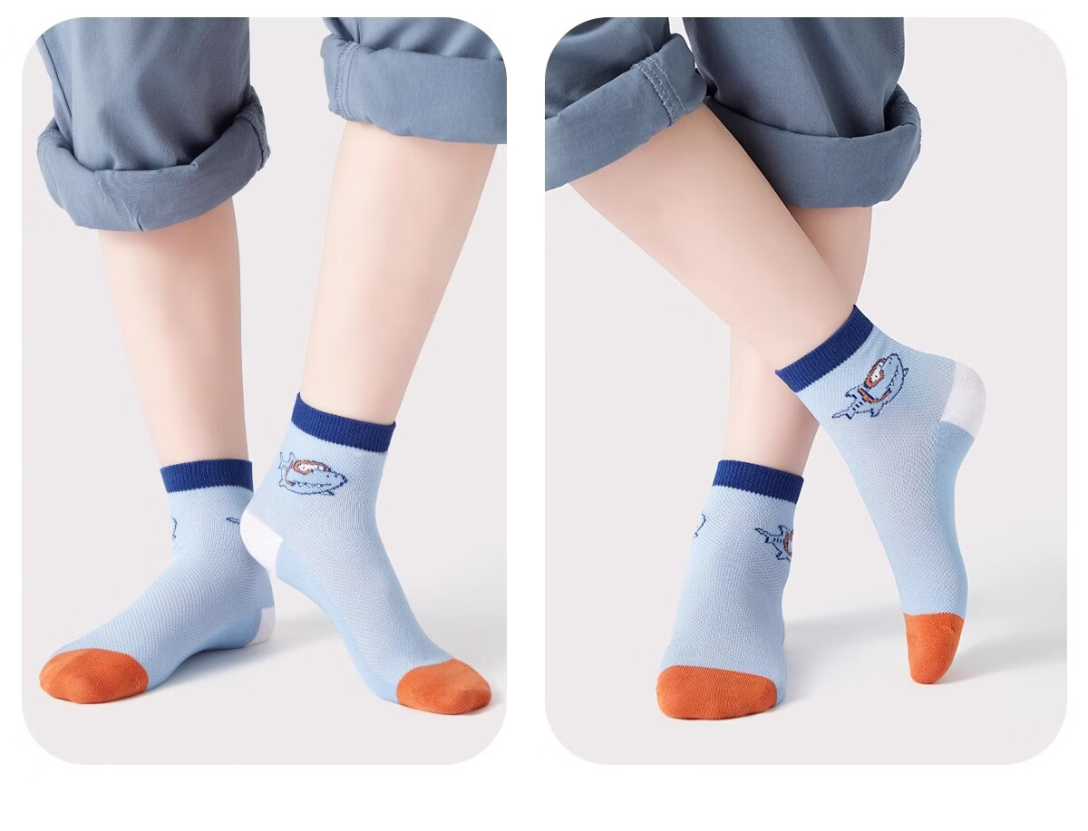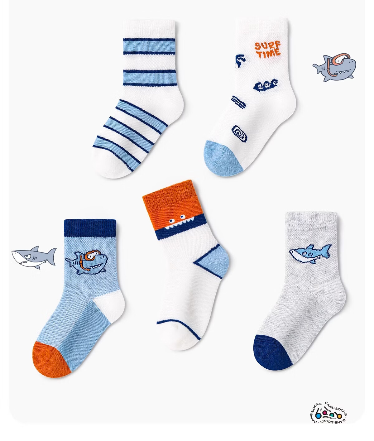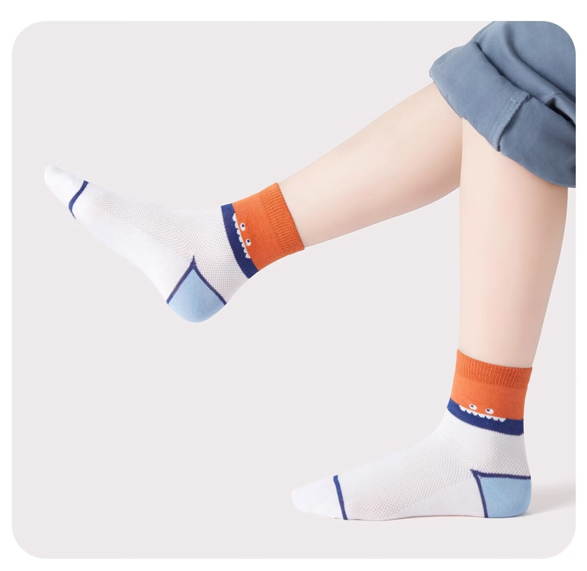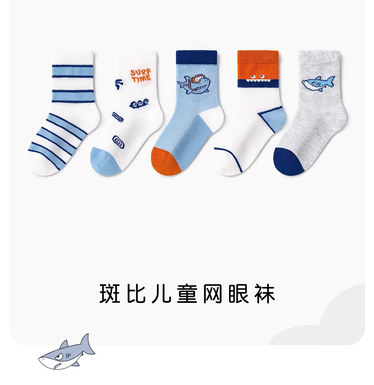 斑比男童袜子春夏款网眼透气棉袜中大童宝宝夏季无骨可爱儿童袜子 BB2524 春夏款儿童网眼袜 5双 3-5岁 建议脚码21-26码【16-18】