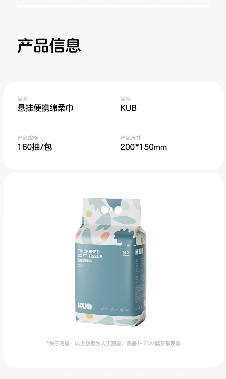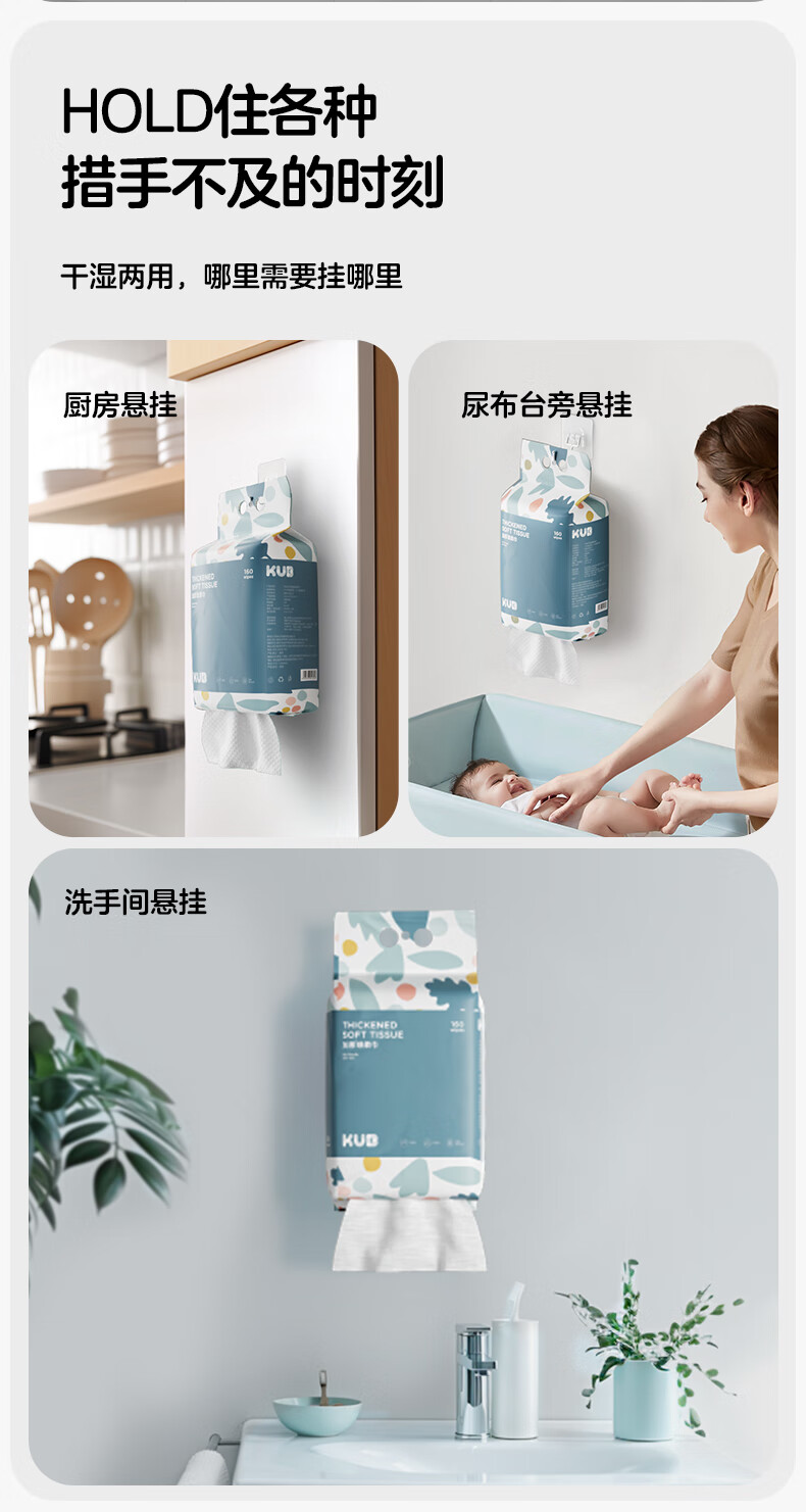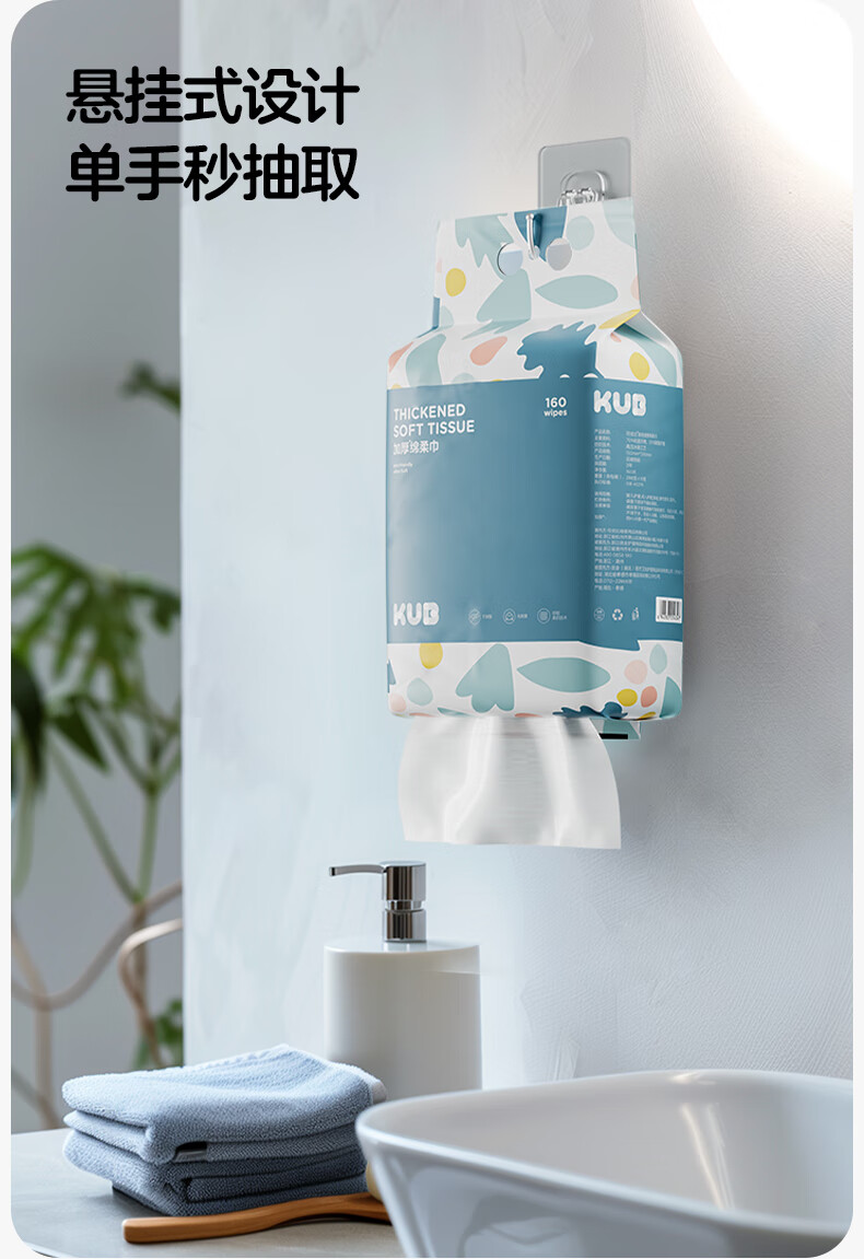 可优比KUB可优比洗脸巾婴儿绵柔巾悬挂式抽取宝宝新生儿专用量贩装160抽 160抽 1包 【悬挂式绵柔巾】