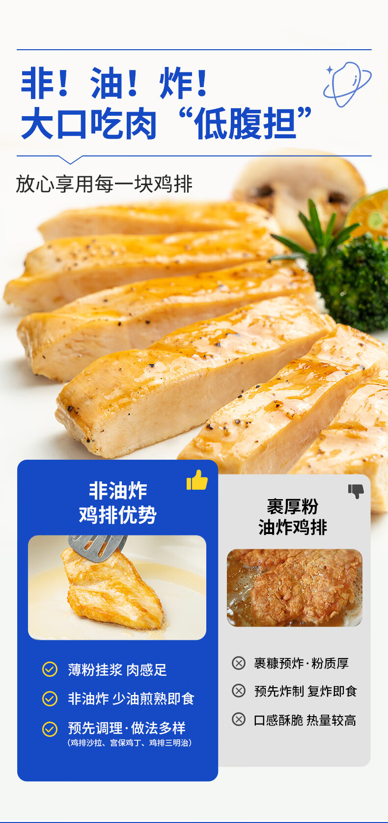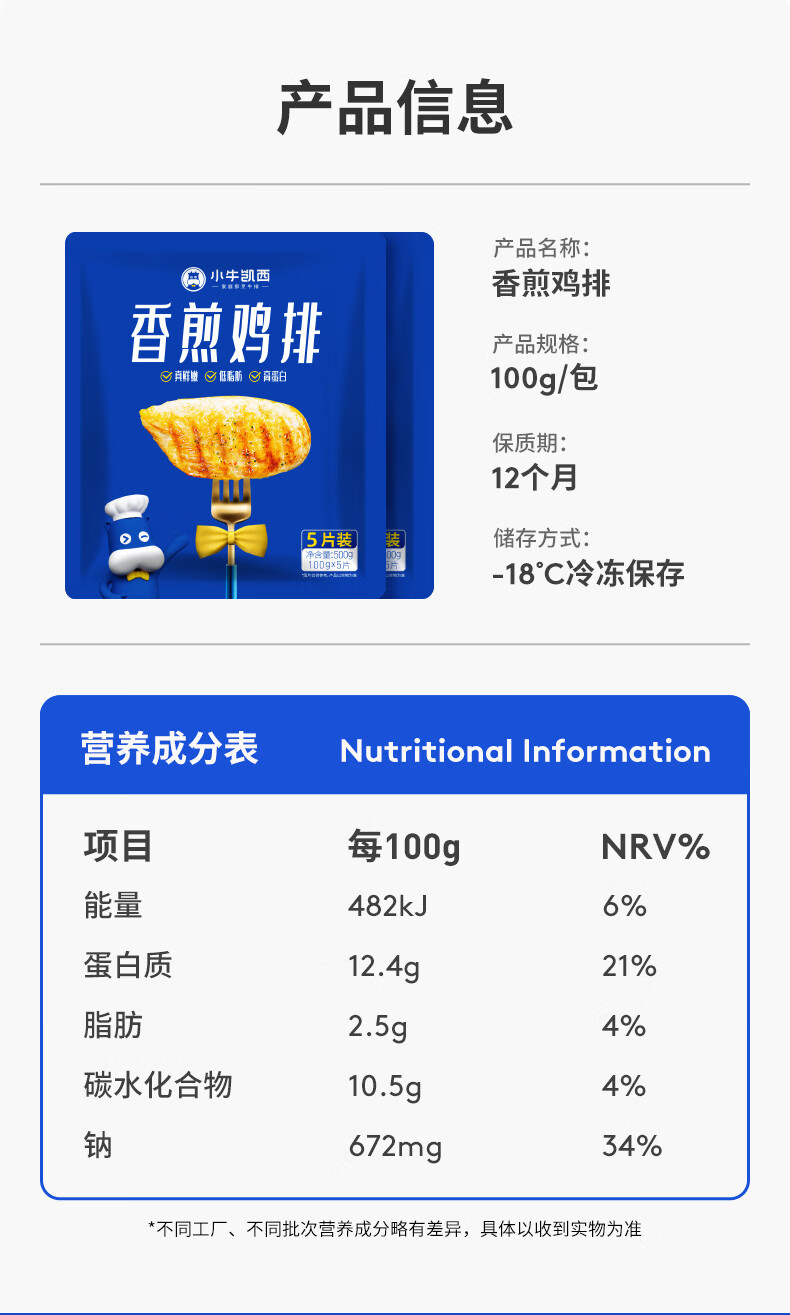 小牛凯西 香煎鸡排100g*5片 健身早餐轻食鸡胸肉 冷冻半成品空气炸锅食材