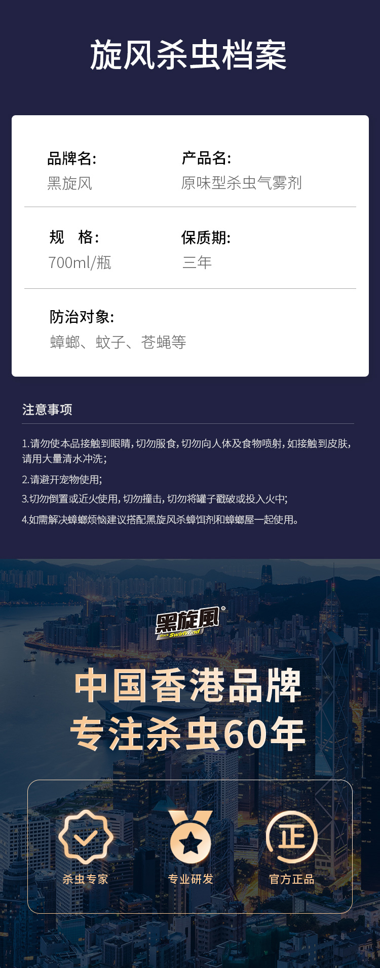 黑旋风热门商品杀虫气雾剂700ml原味基孔肯雅热蟑螂药家用杀虫喷雾蚊蝇