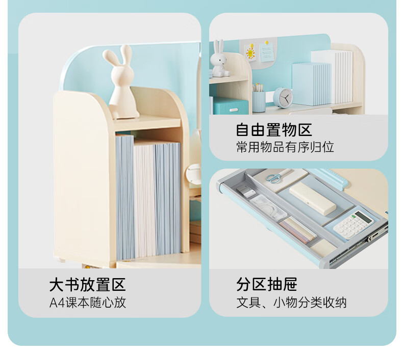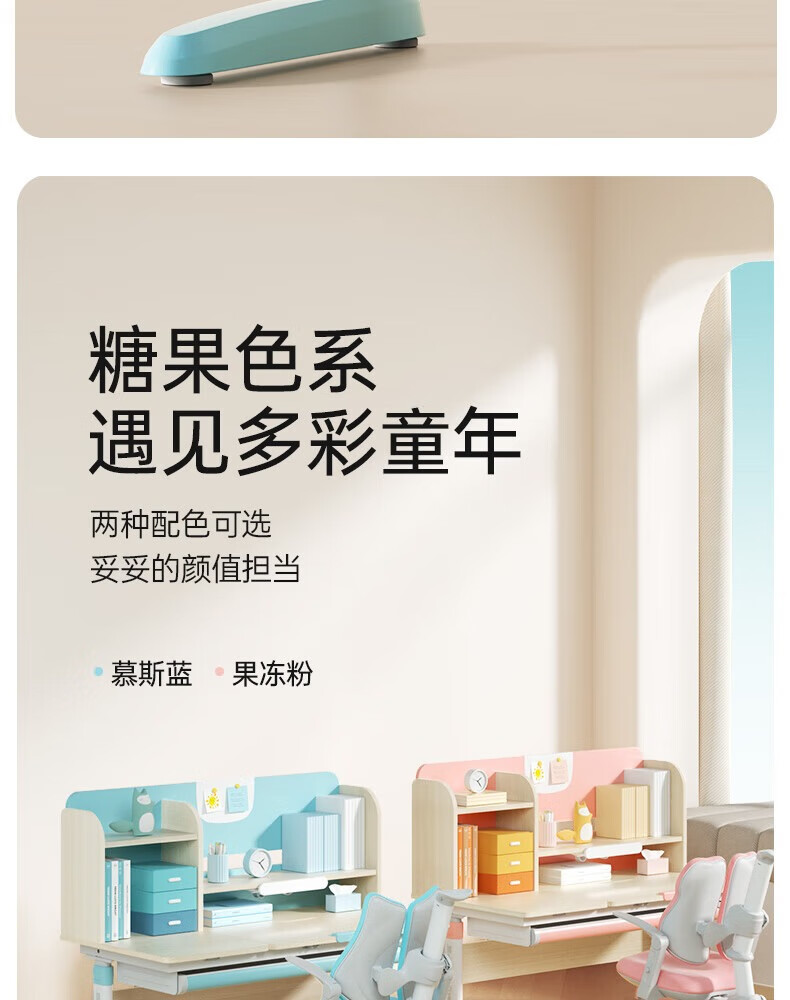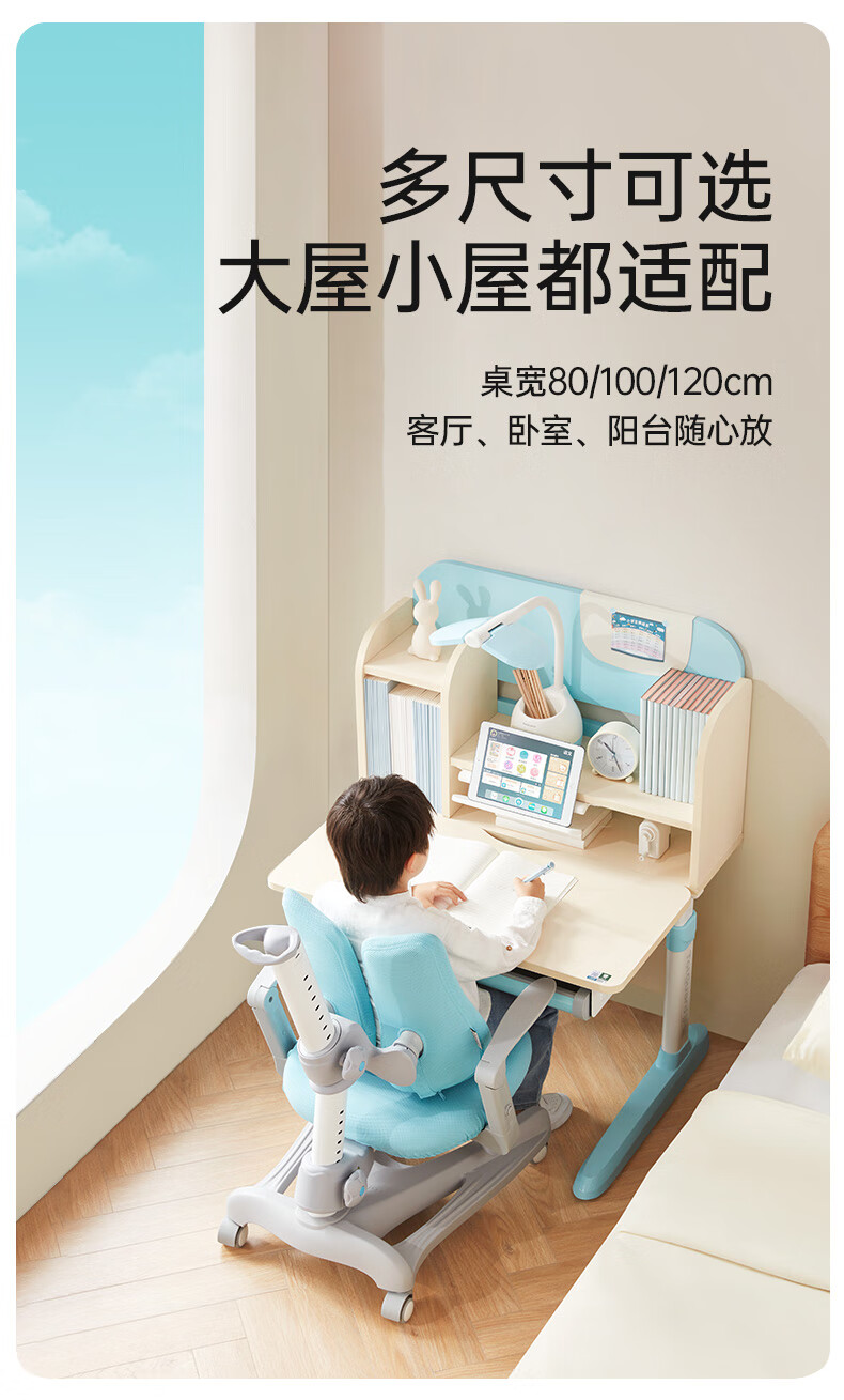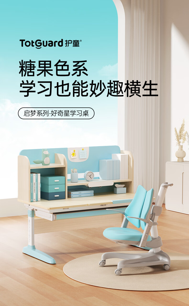 护童儿童学习桌椅小学生写字桌可调节升降课桌椅套装小户型带书架DD 好奇星80cm+正姿器DD