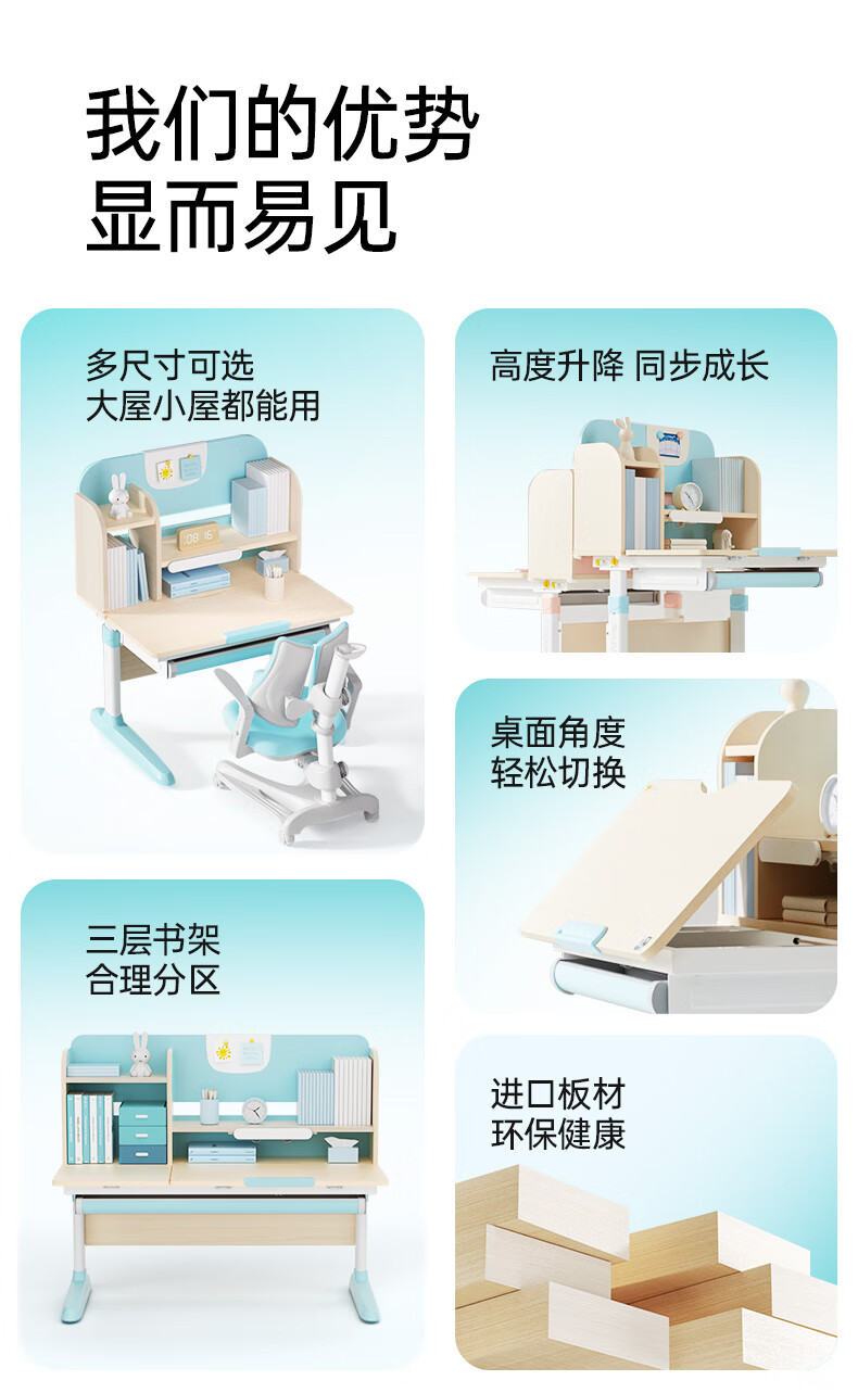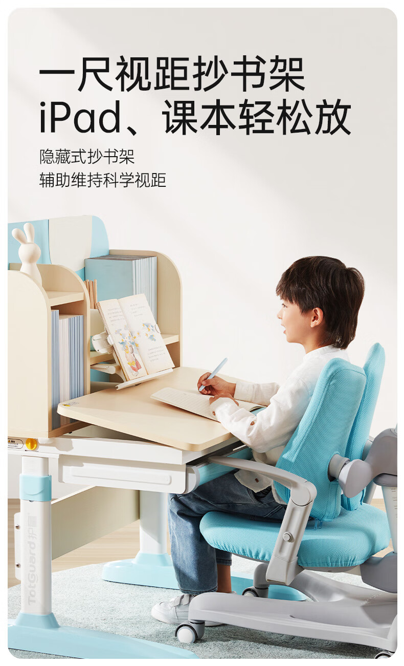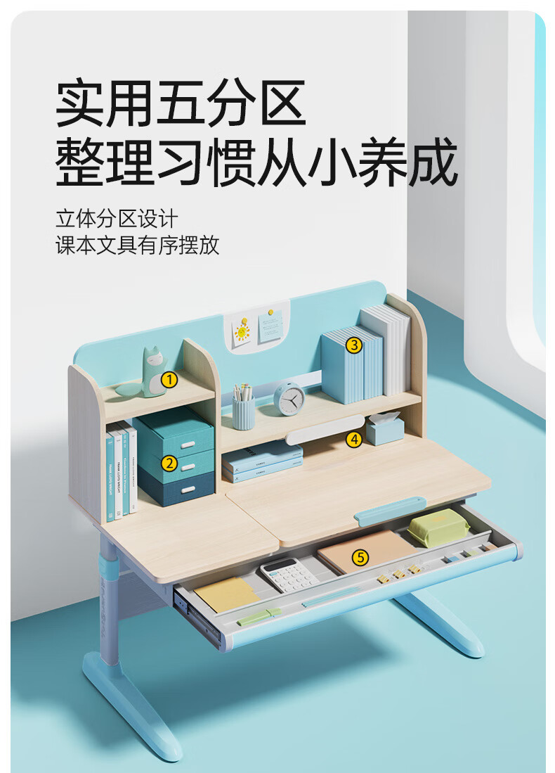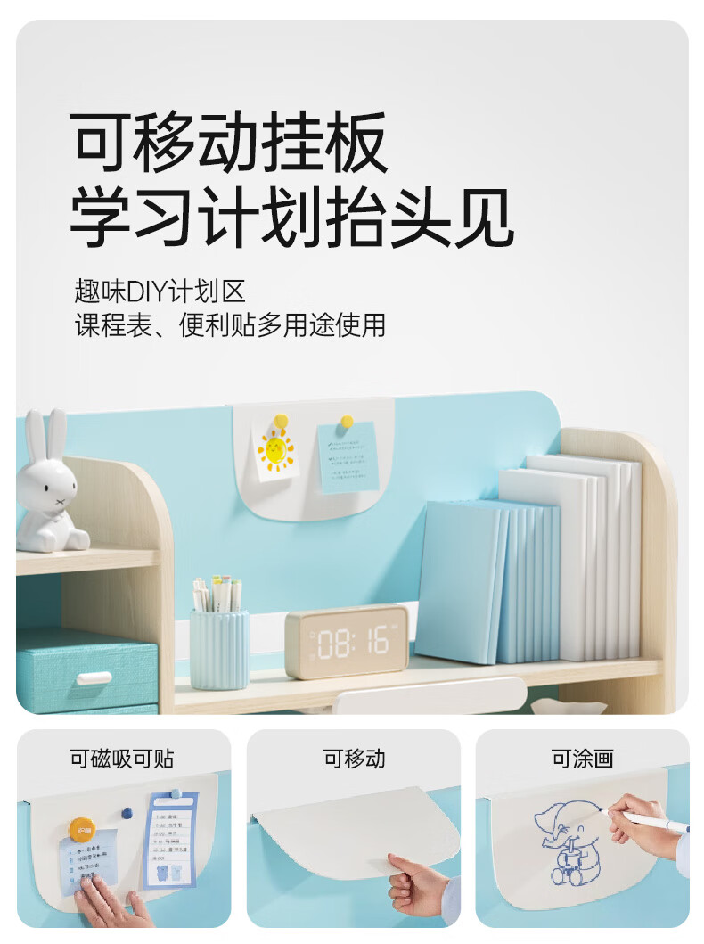 护童儿童学习桌椅小学生写字桌可调节升降课桌椅套装小户型带书架DD 好奇星80cm+正姿器DD