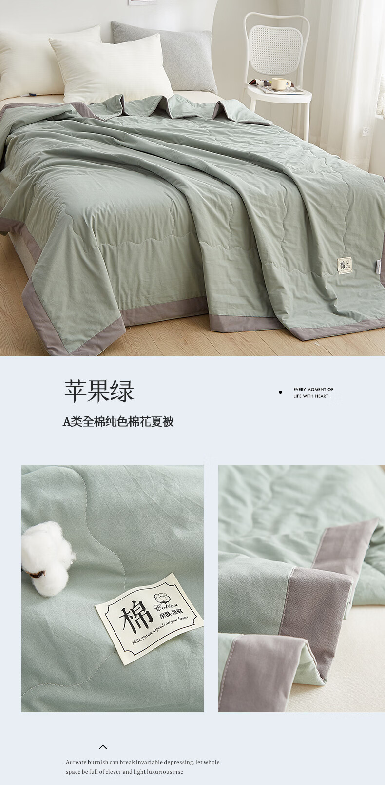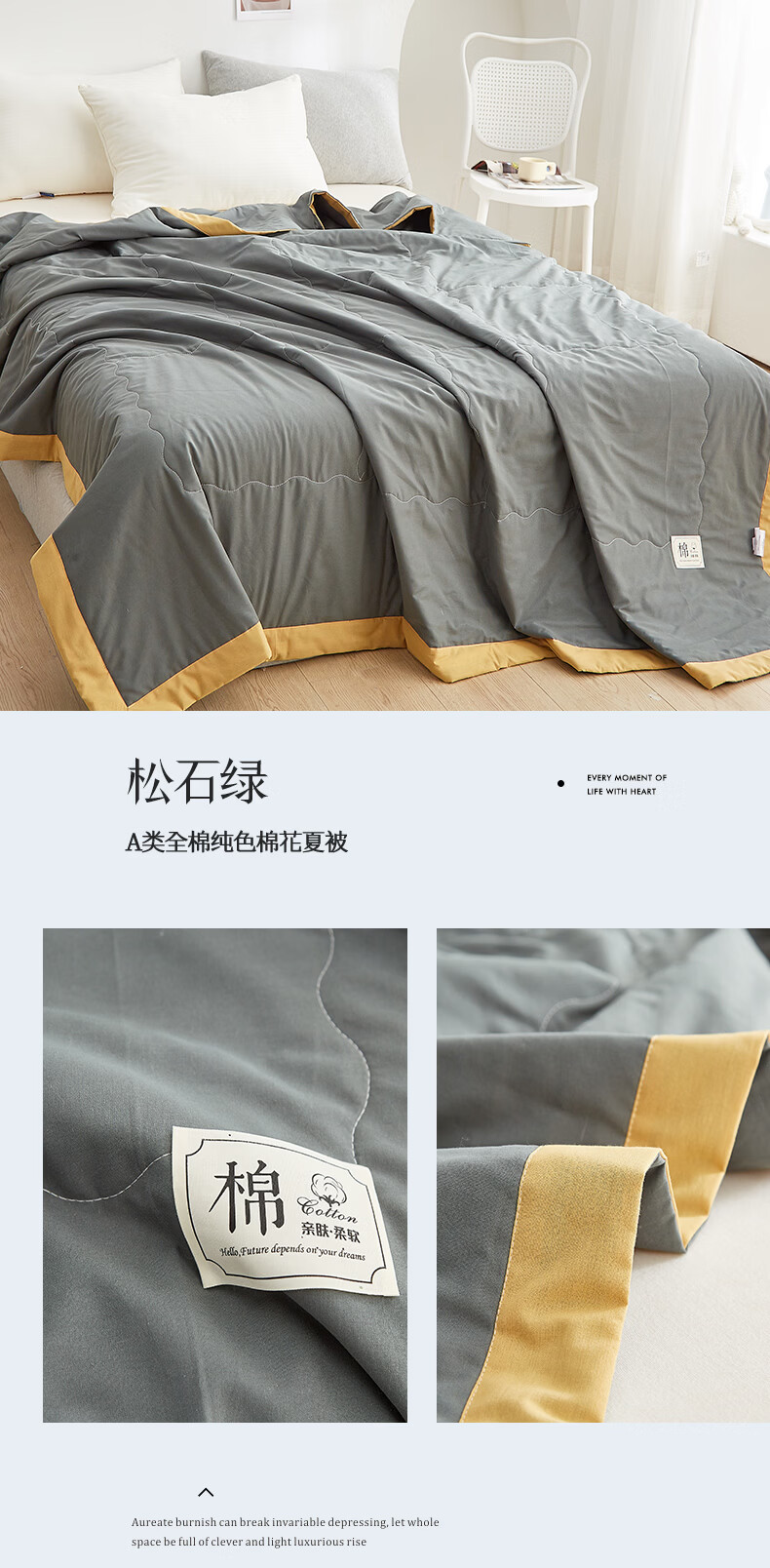 苏萱2026新款热卖水洗冰丝夏被四件套夏季夏凉被空调被可机水洗单双人 亚丁绿+冰川灰 单人夏被-150*200cm