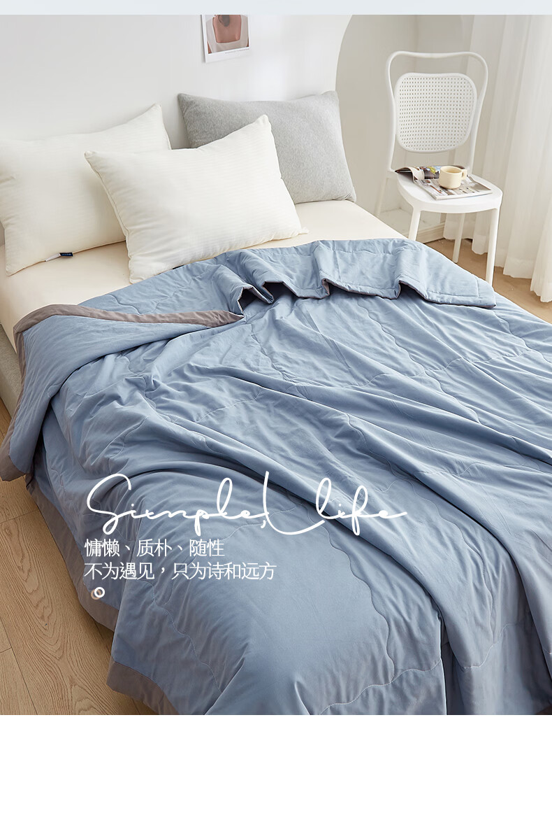 苏萱2026新款全棉纯棉华夫格夏被四件套夏季夏凉被空调被可机洗单双人 简森兰 单人夏被-150*200cm