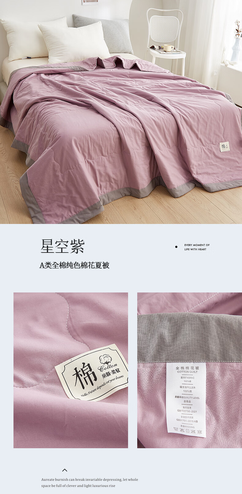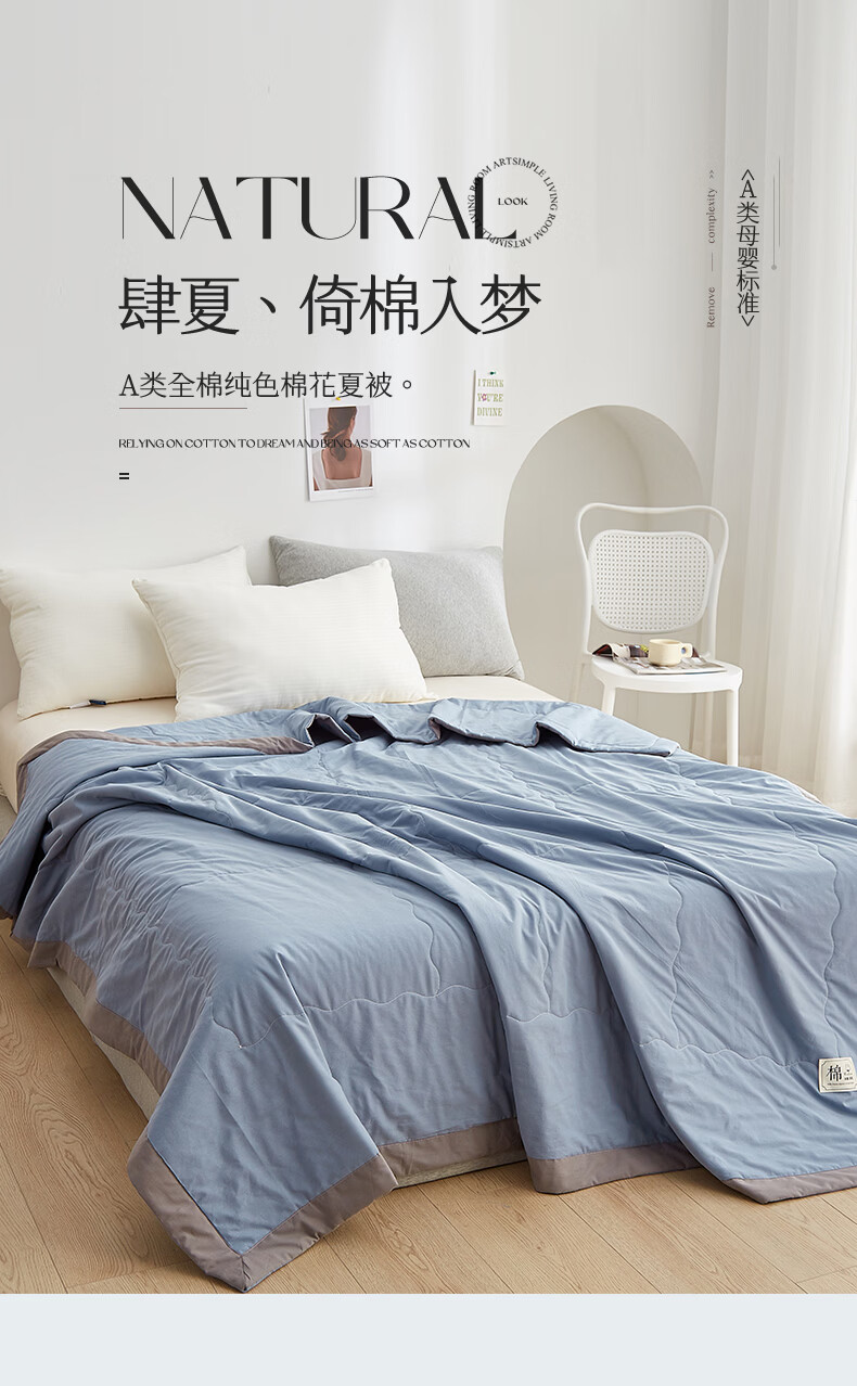 无印良品A类纯棉空调被1.5x2米夏凉被单人可机洗裸睡全棉花薄被子夏季薄被 星空紫【里外全棉 支持机洗】 110cmx150cm 单夏被