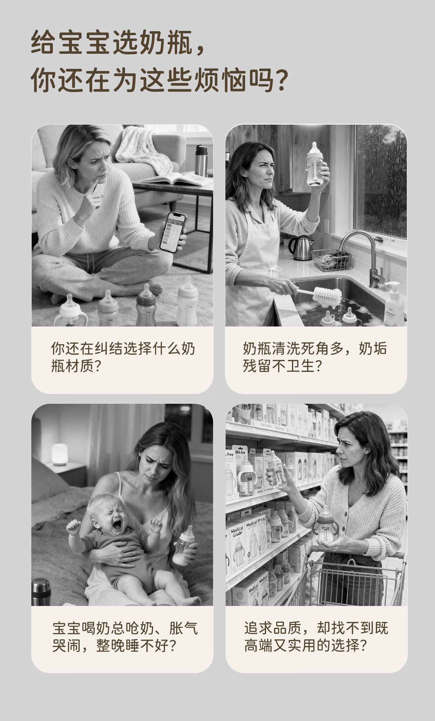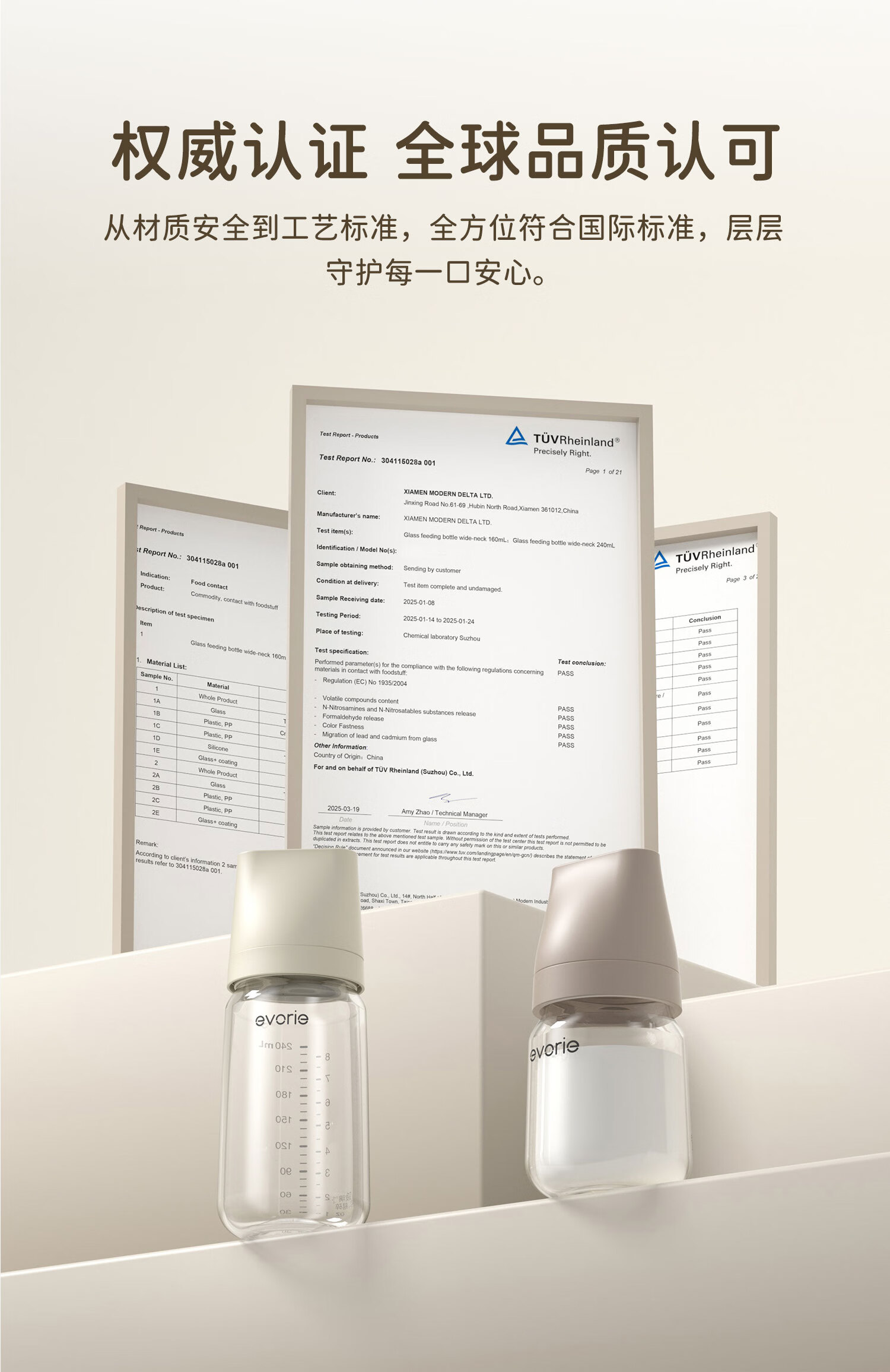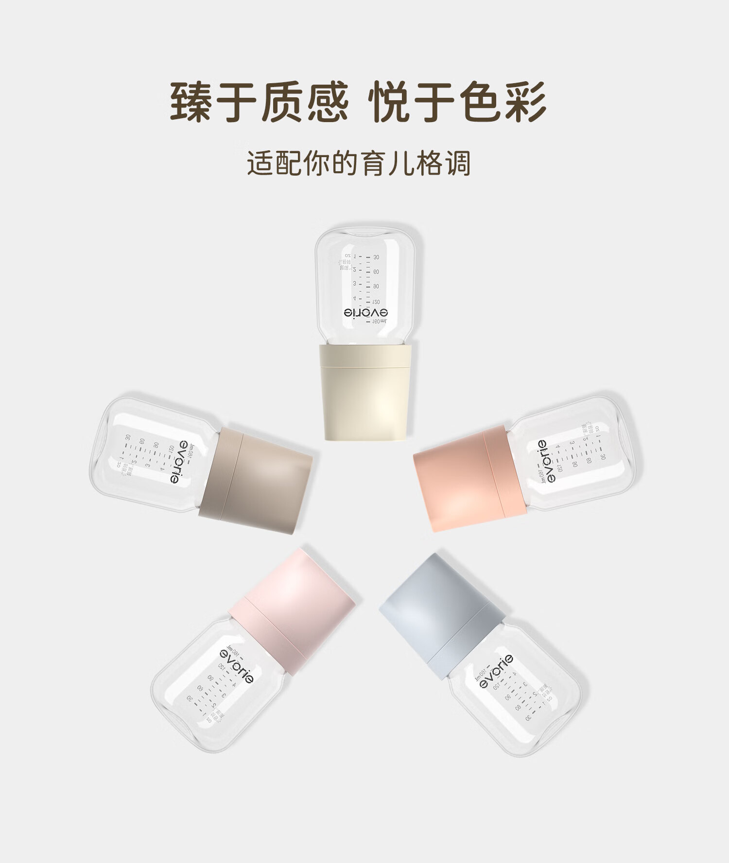 爱得利(evorie)臻致系列 玻璃奶瓶 新生儿奶瓶防胀气宽口径婴儿防呛早产儿奶瓶 【0-3个月】防胀气 160ml