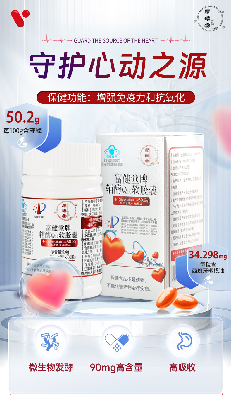 厚璞堂辅酶q10软胶囊含量高增加强免疫高品质营养品正品保证 1盒装 60粒*1盒
