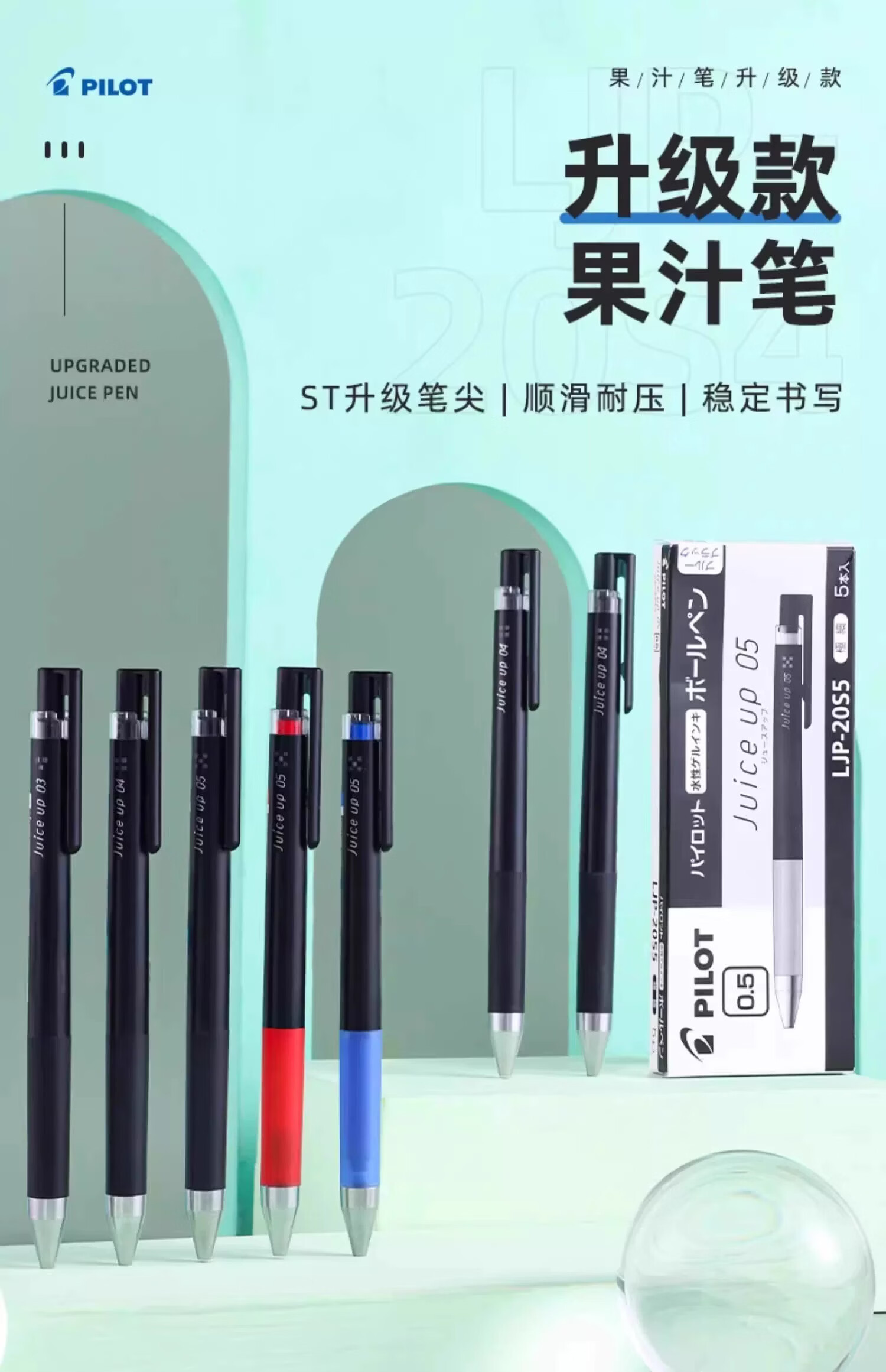 百乐(PILOT)日本百乐笔Juice up果汁笔升级版12S5.S4中性笔黑色办公水笔学生用速干大容量按动式可替换芯 【20S5】黑色1+10替芯/盒0.5mm