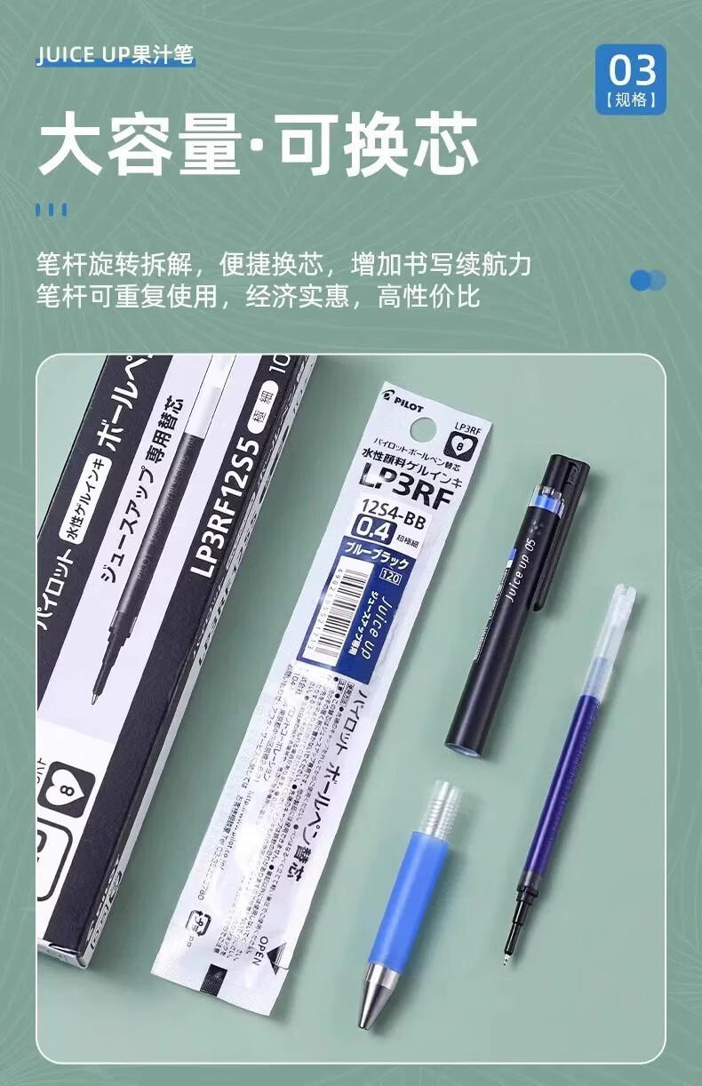 百乐(PILOT)日本百乐(PILOT) 果汁笔笔芯百乐百果乐笔替换芯LP2RF-8EF按动笔芯黑笔替芯 0.5黑色笔芯3支(袋装)