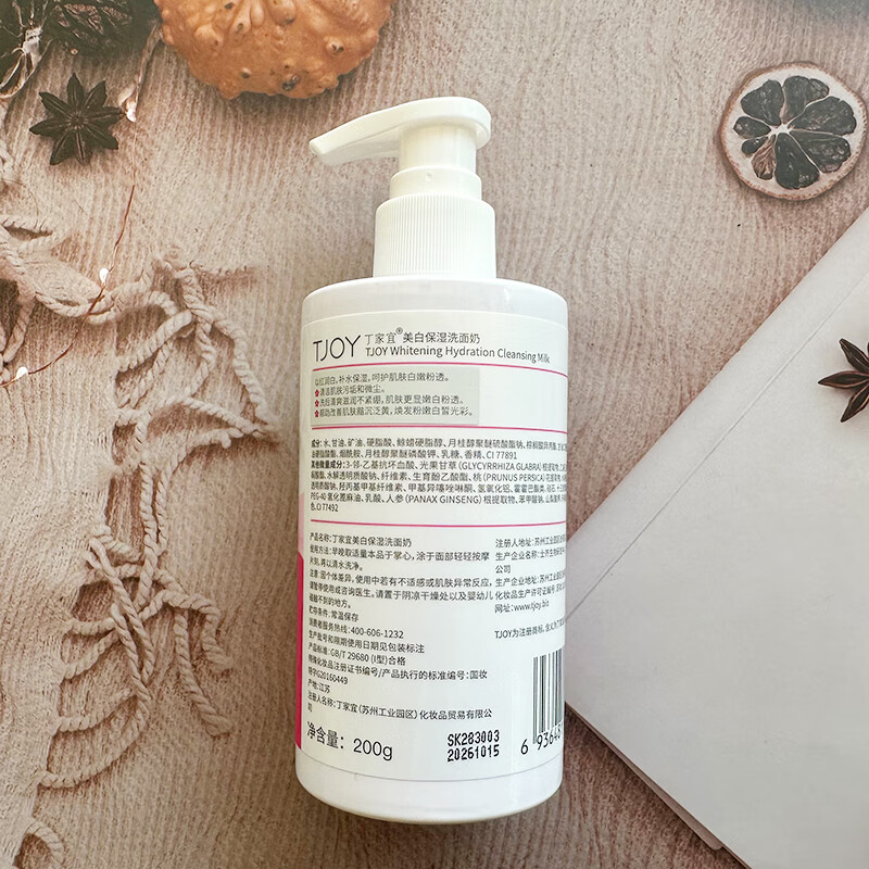 丁家宜(TJOY)肌漾白洁面乳保湿洗面奶美白女士洁面乳温和不刺激控油洗脸奶 丁家宜美白保湿洗面奶200g