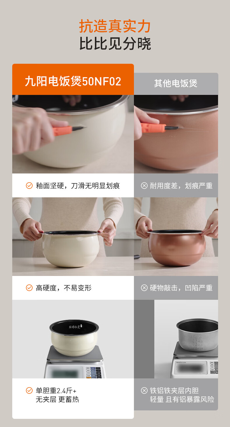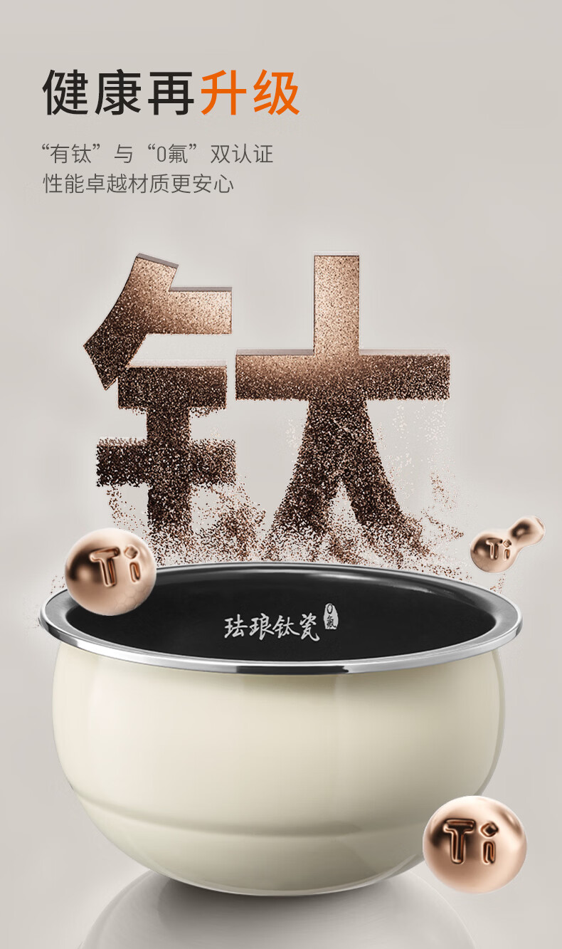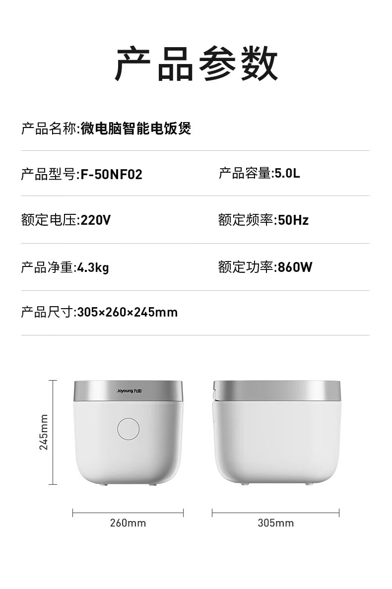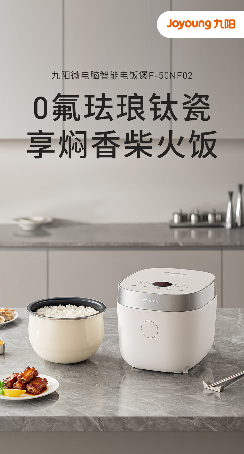 九阳(Joyoung)【升级0氟珐琅钛瓷】电饭煲5L电饭锅860W含钛内胆4-5人4A饭微压柴火饭快煮饭家用多功能 F-50NF02