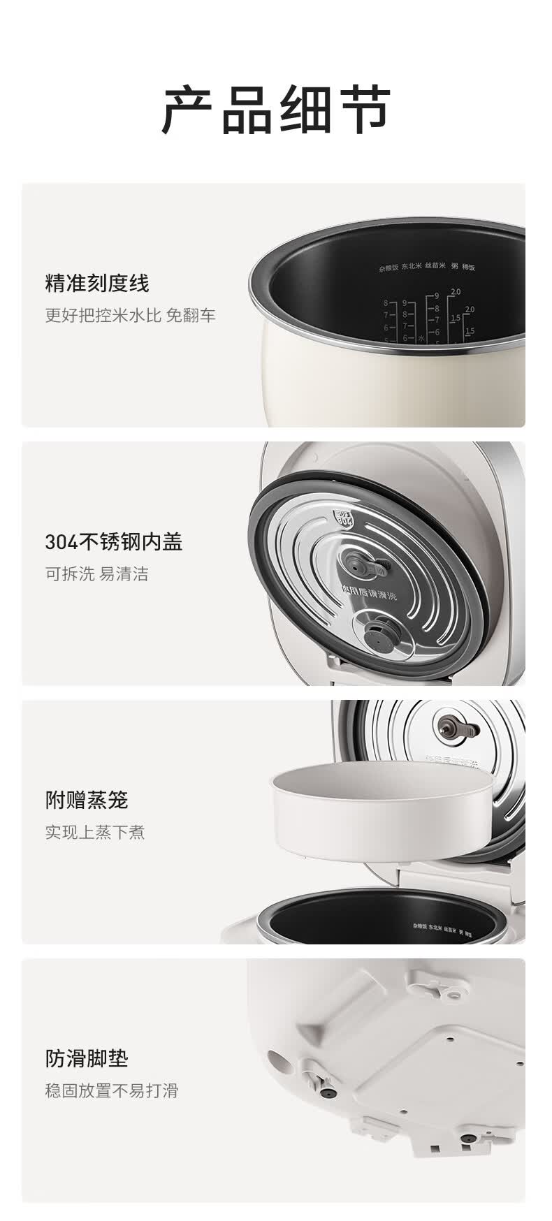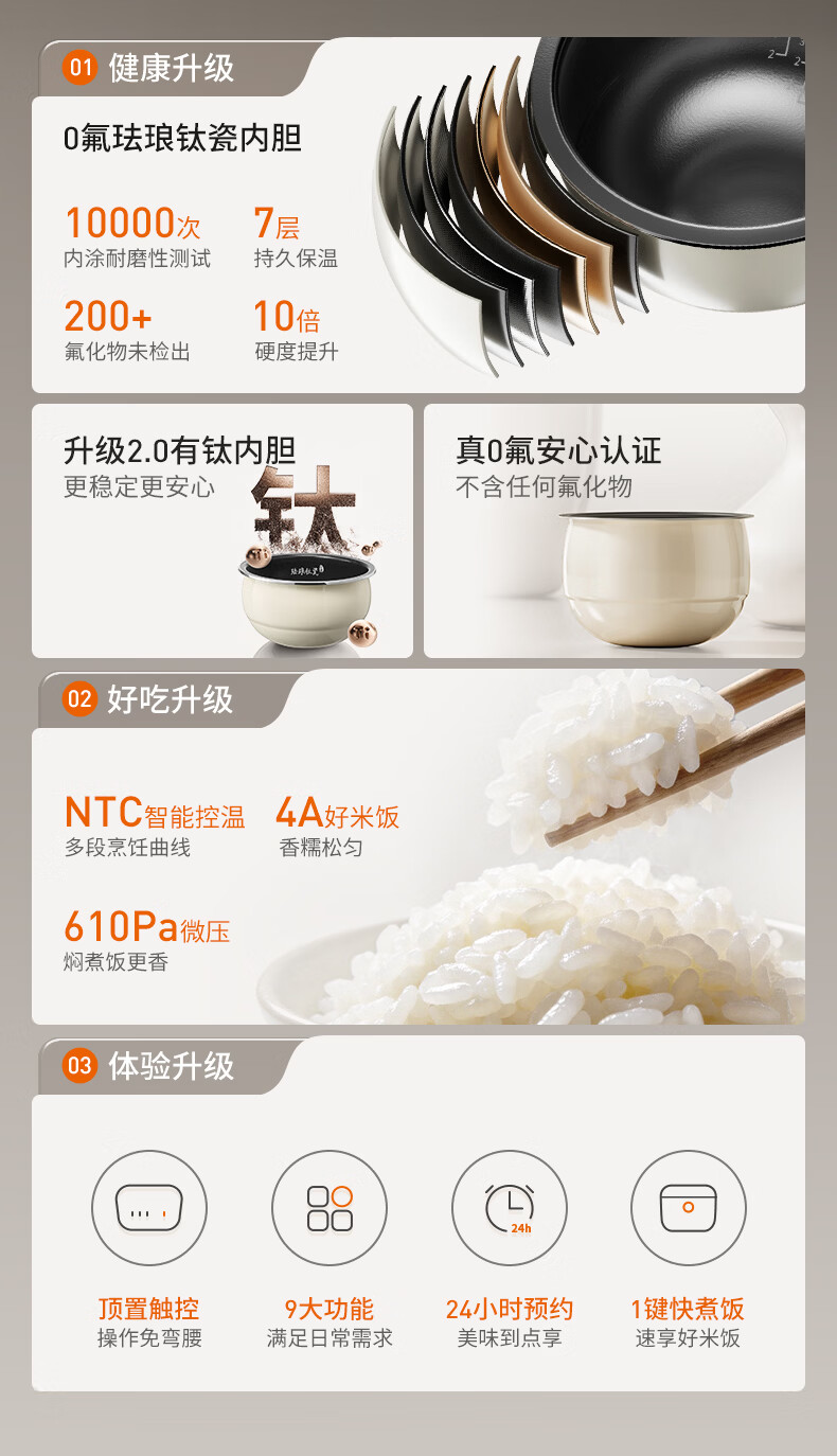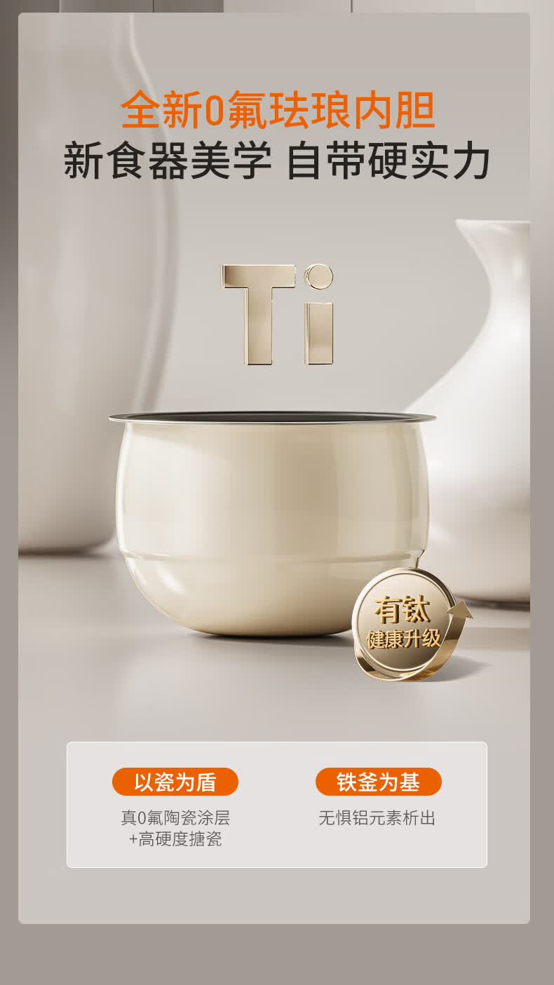 九阳(Joyoung)【升级0氟珐琅钛瓷】电饭煲5L电饭锅860W含钛内胆4-5人4A饭微压柴火饭快煮饭家用多功能 F-50NF02