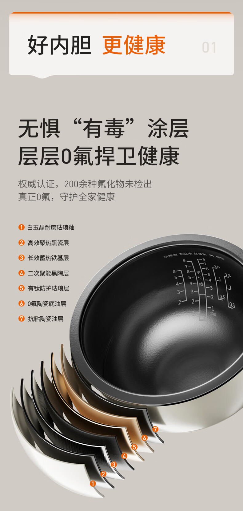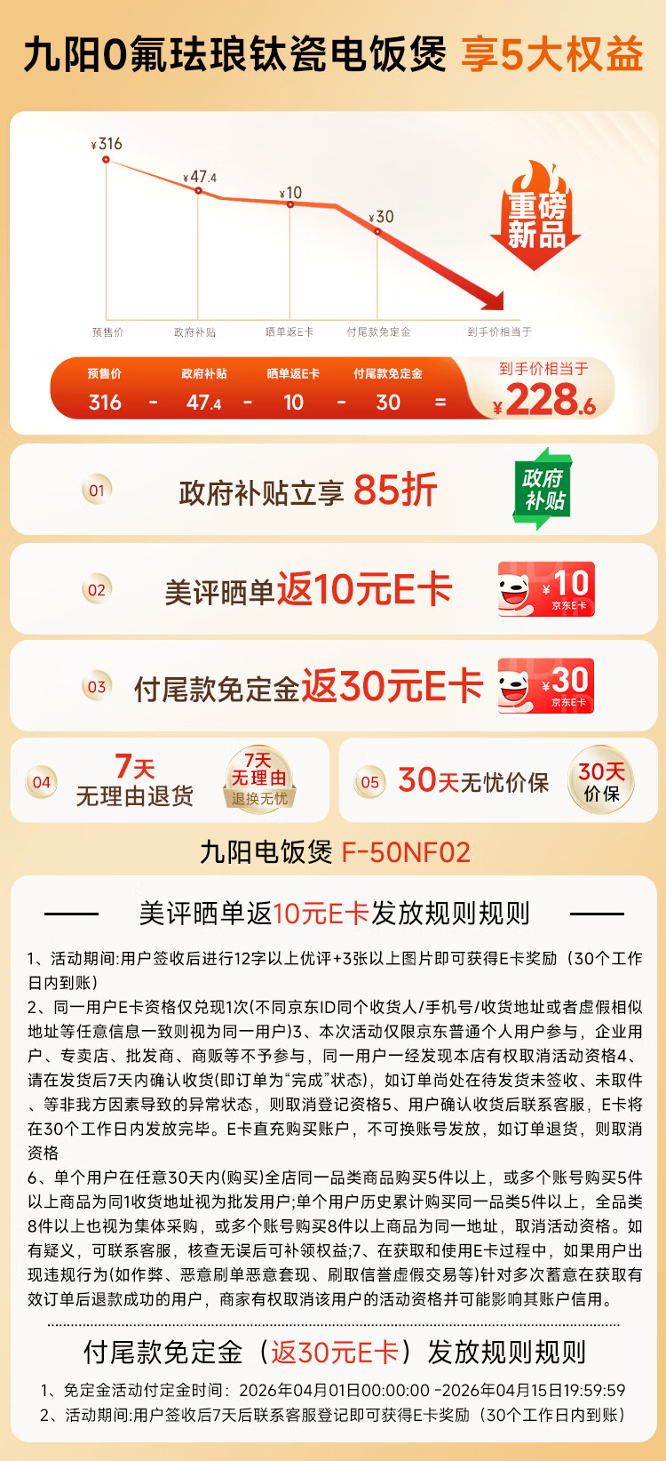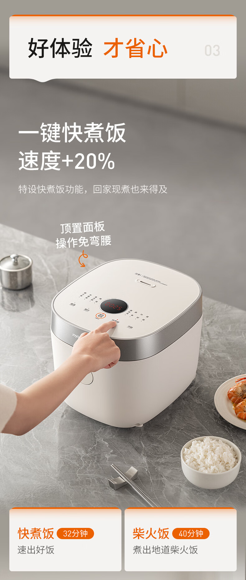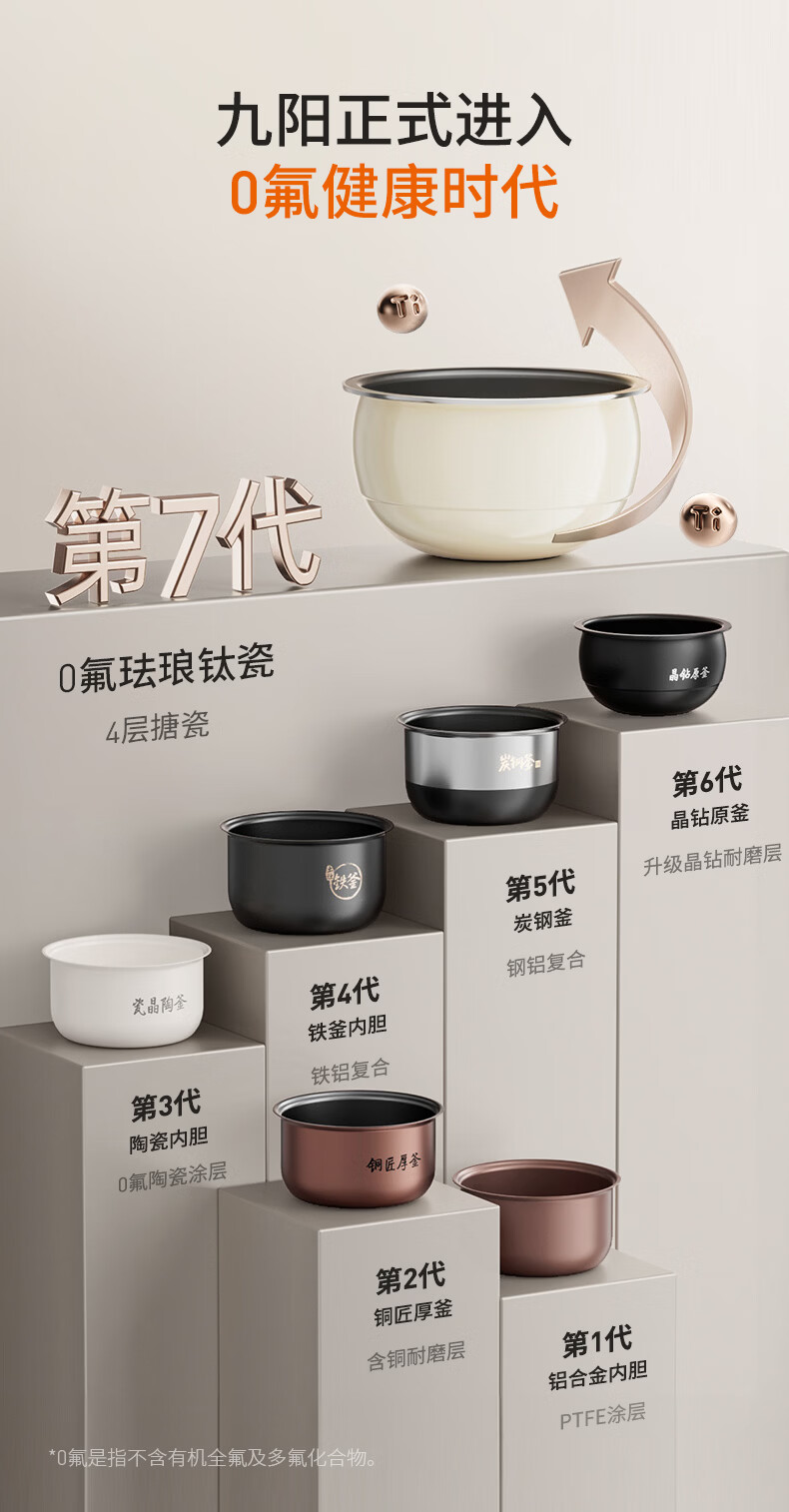 九阳(Joyoung)【升级0氟珐琅钛瓷】电饭煲5L电饭锅860W含钛内胆4-5人4A饭微压柴火饭快煮饭家用多功能 F-50NF02
