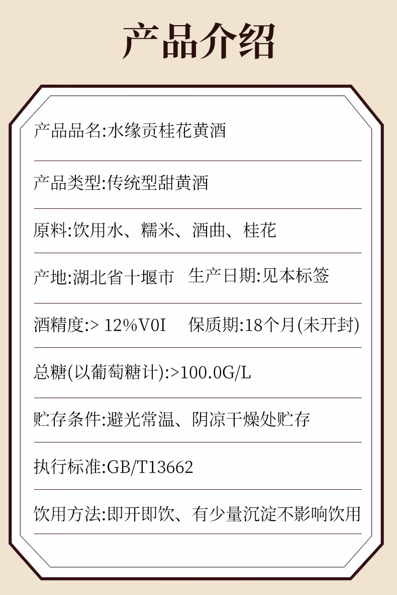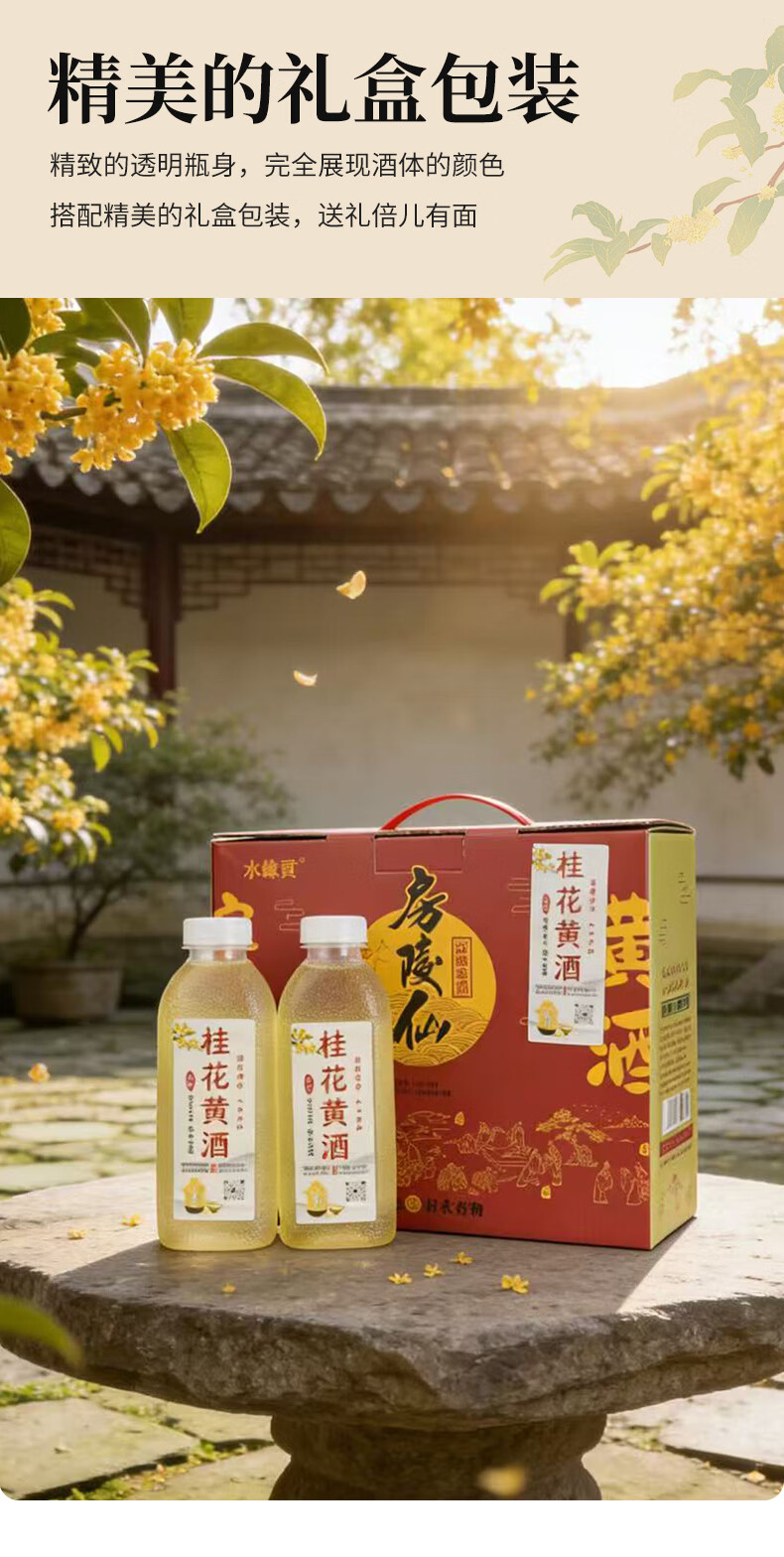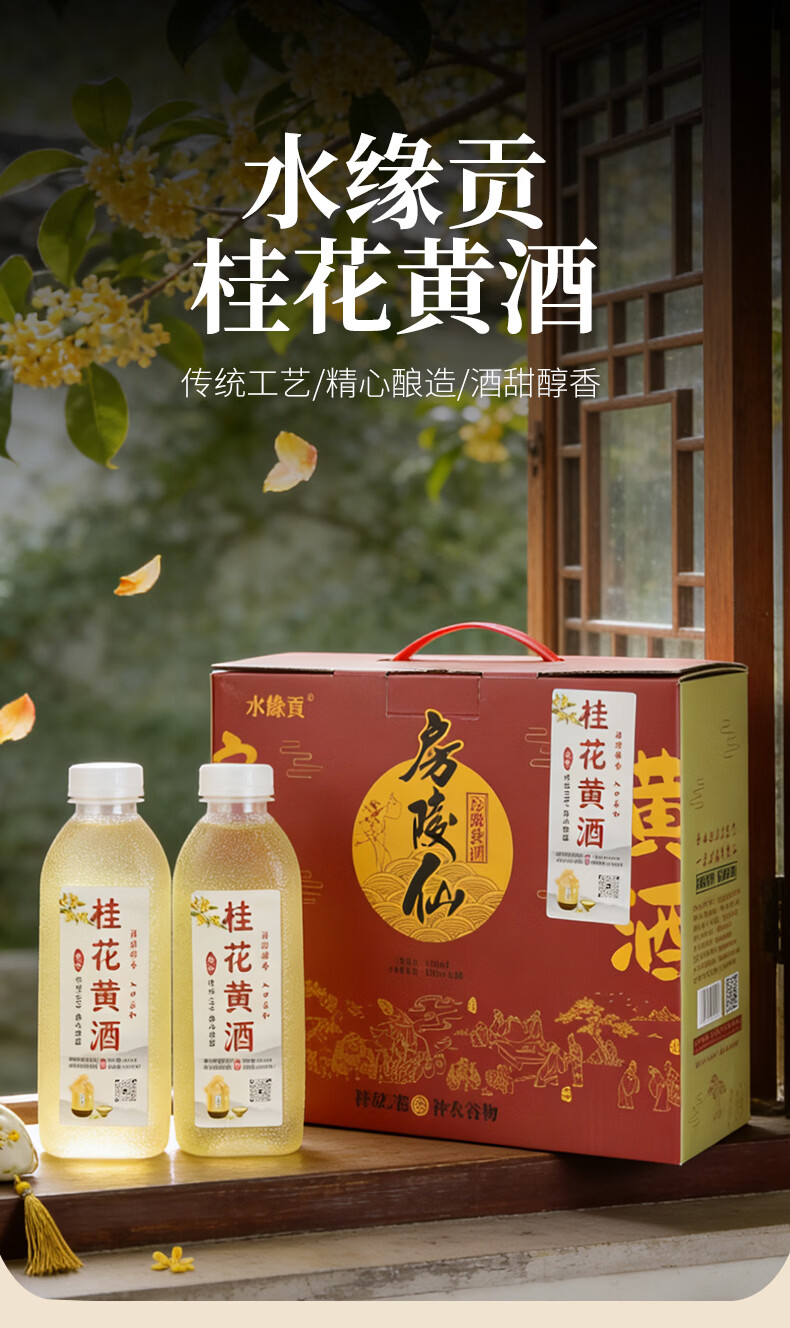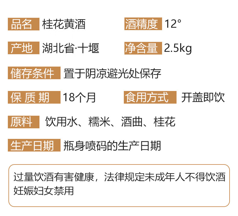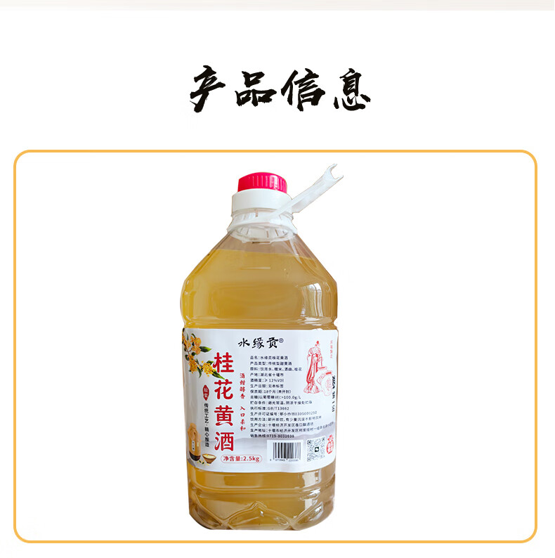 水缘贡房县黄酒桑葚酒桂花酒湖北特产自酿12度果酒微醺甜酒年货送礼 2.5L*1桶桂花黄酒