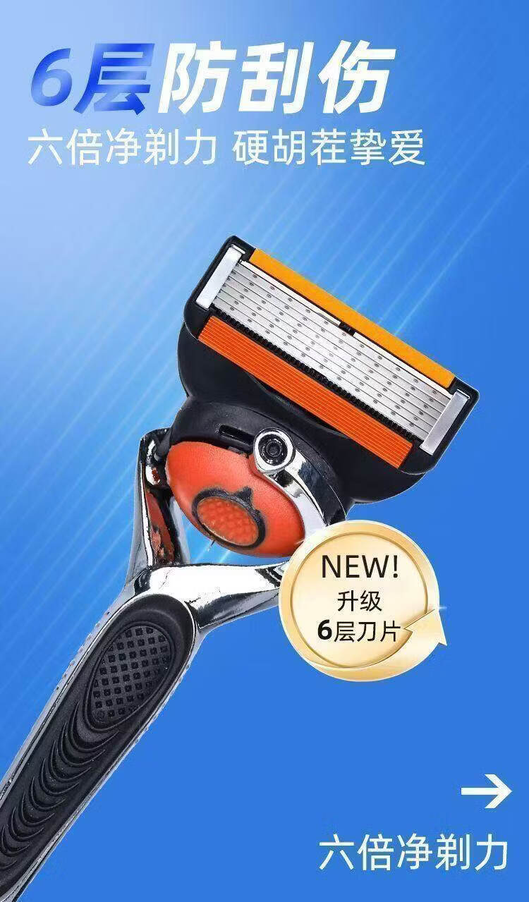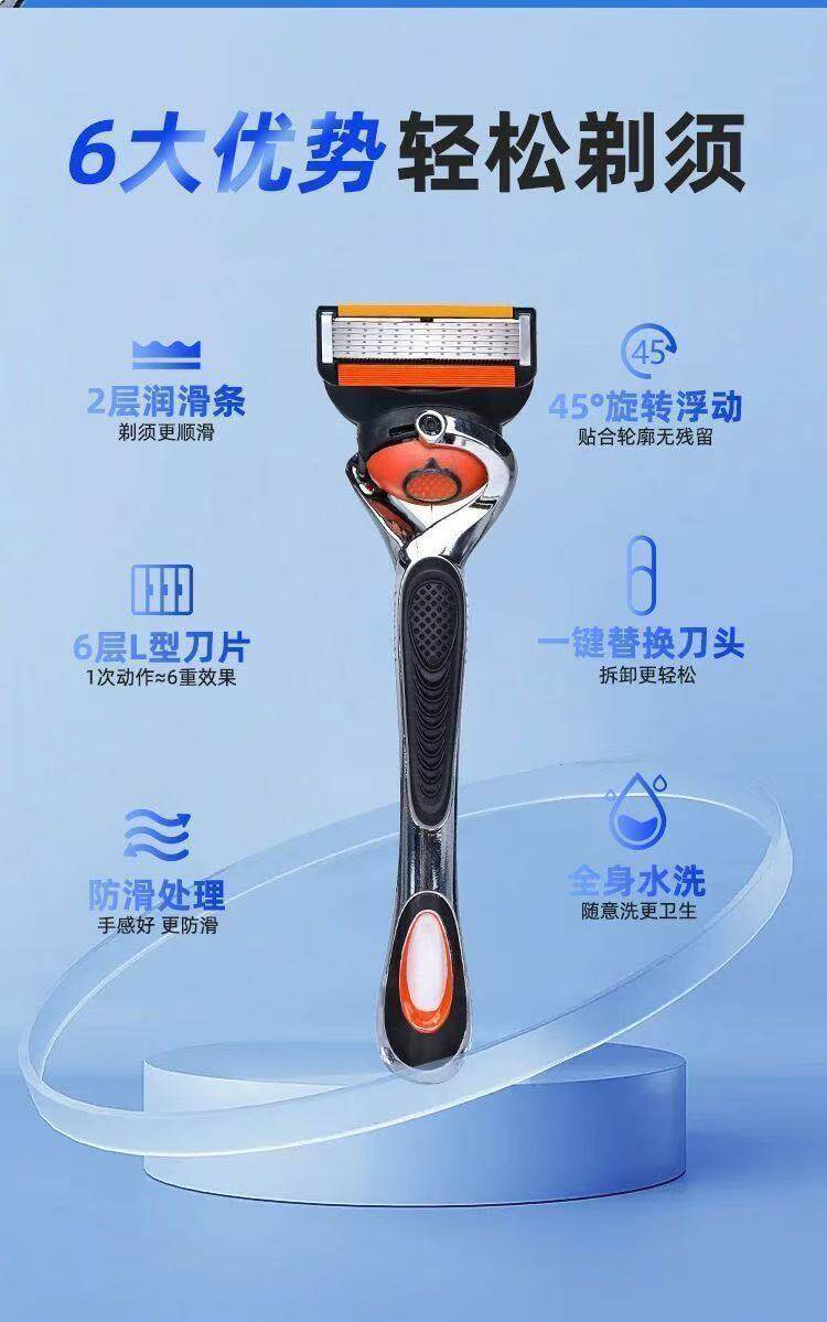 吉利剃须刀同款德国剃须刀手动刮胡刀男士刮胡子刀通用刀架5层刀片进口五层刀头 16刀片
