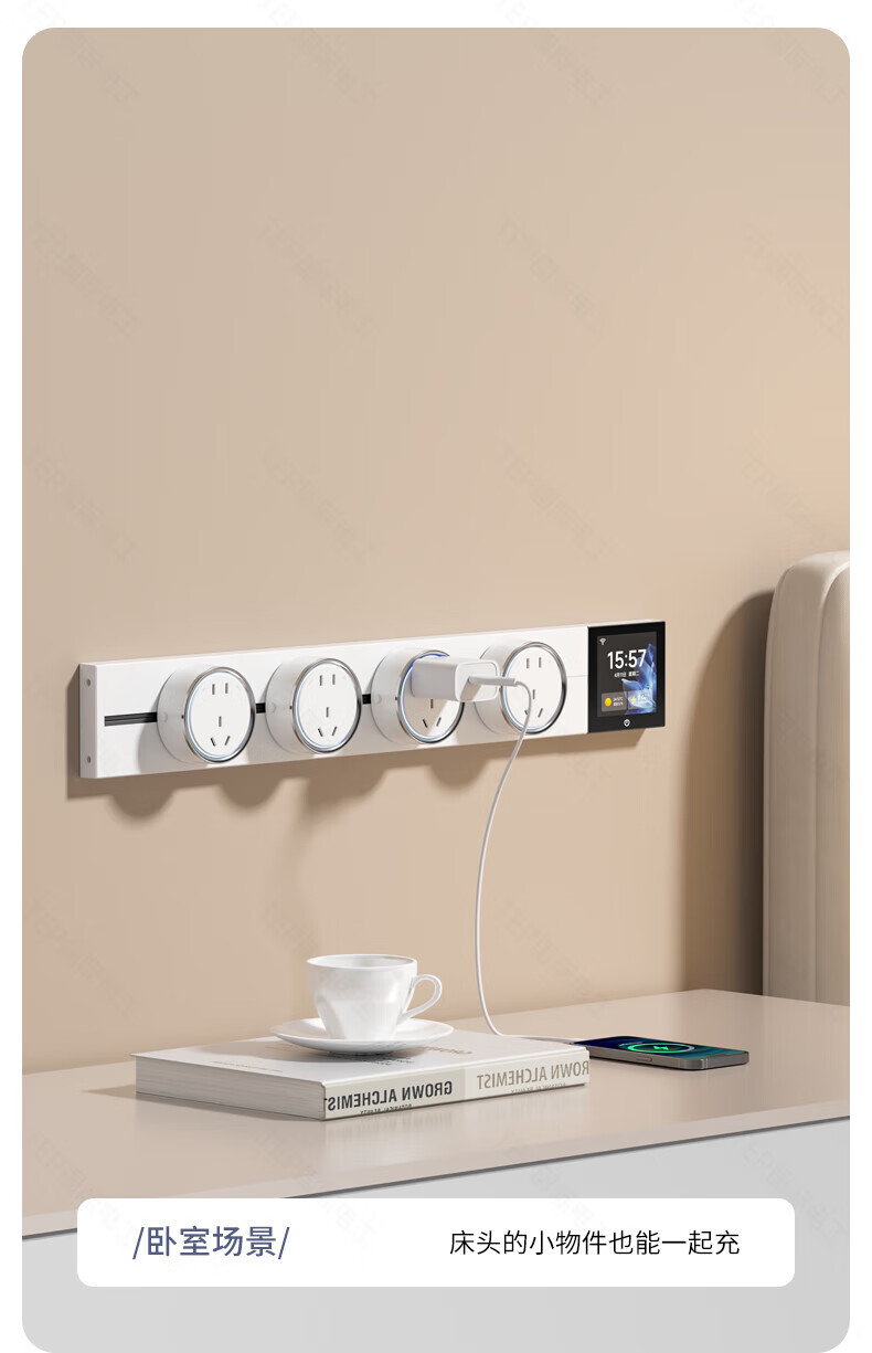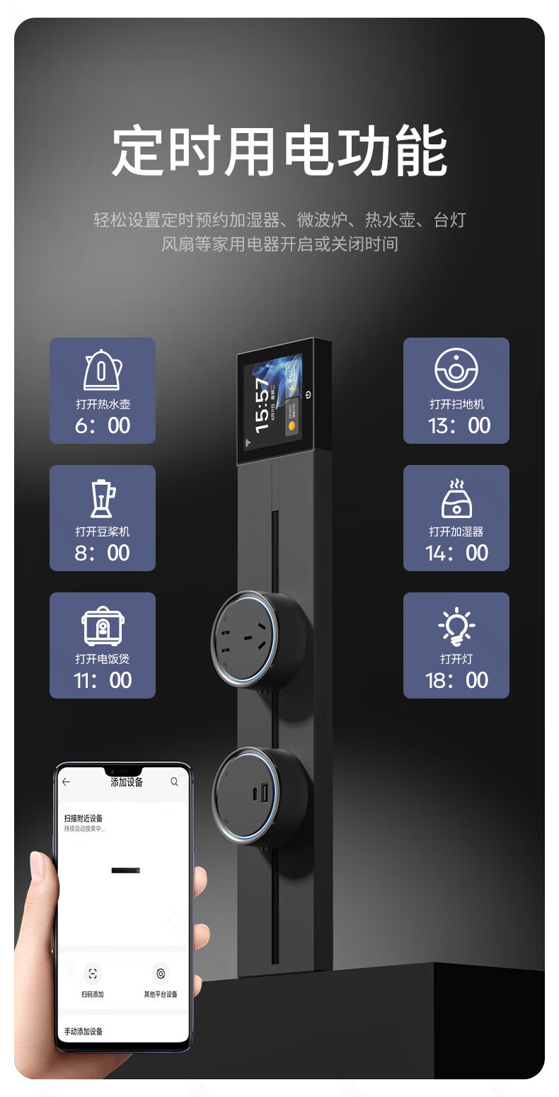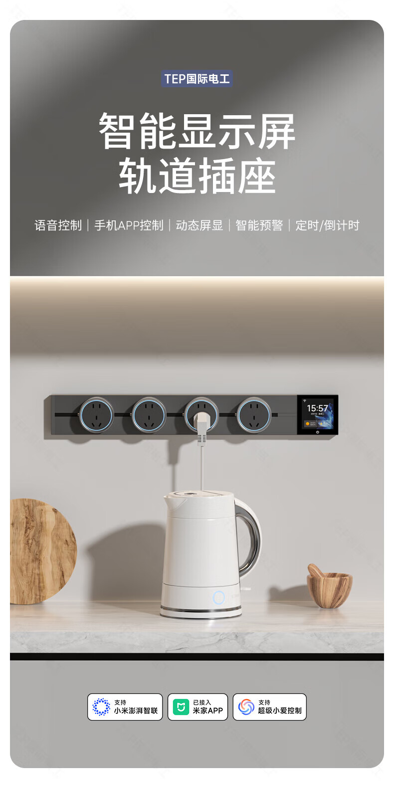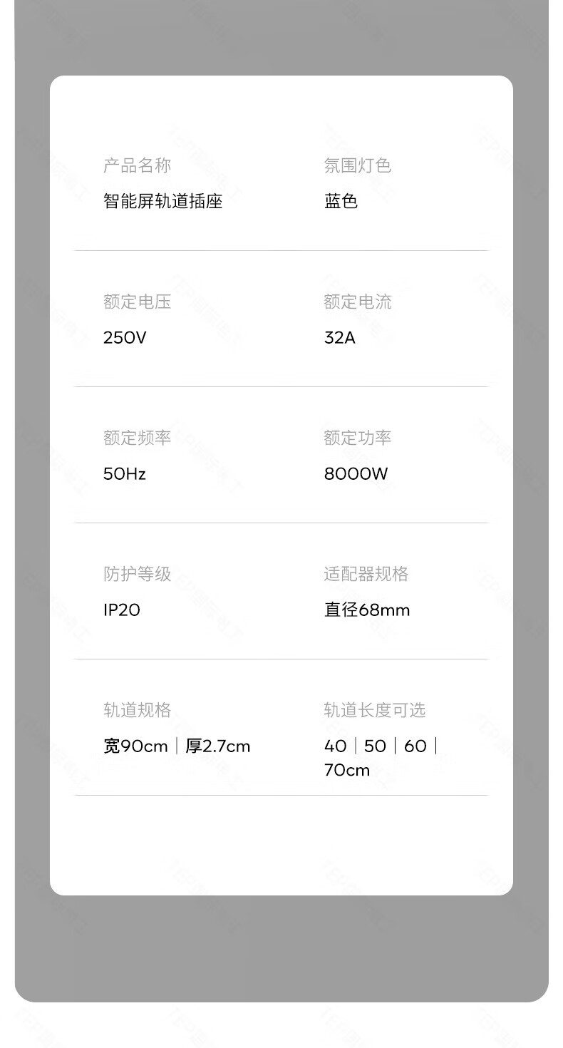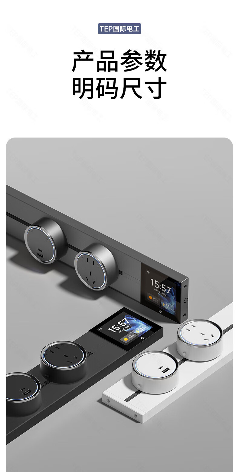 国际电工TEP电工智能屏轨道插座屏显大功率过载保护可移动墙壁挂式支持语 【智能屏】黑100厘米 语音/远程