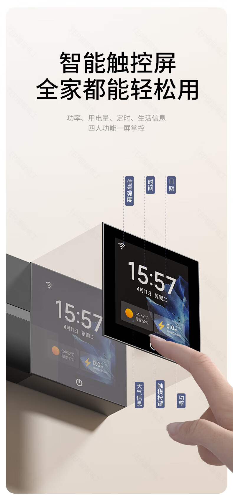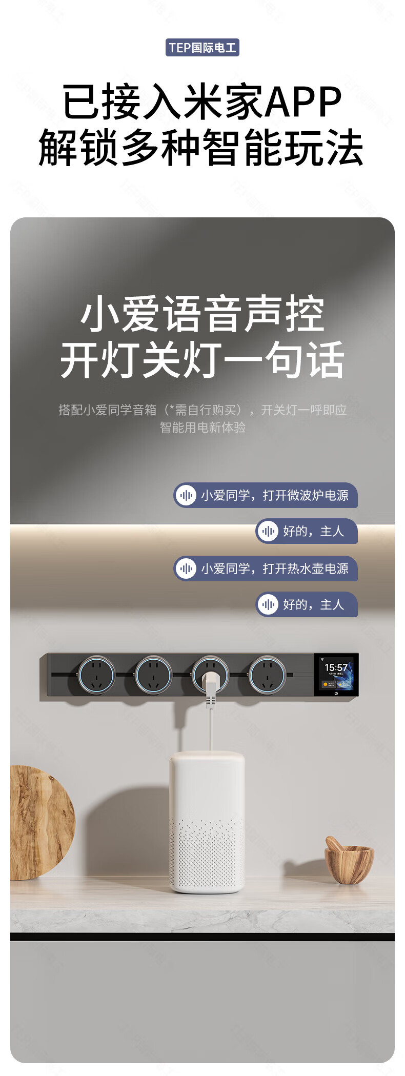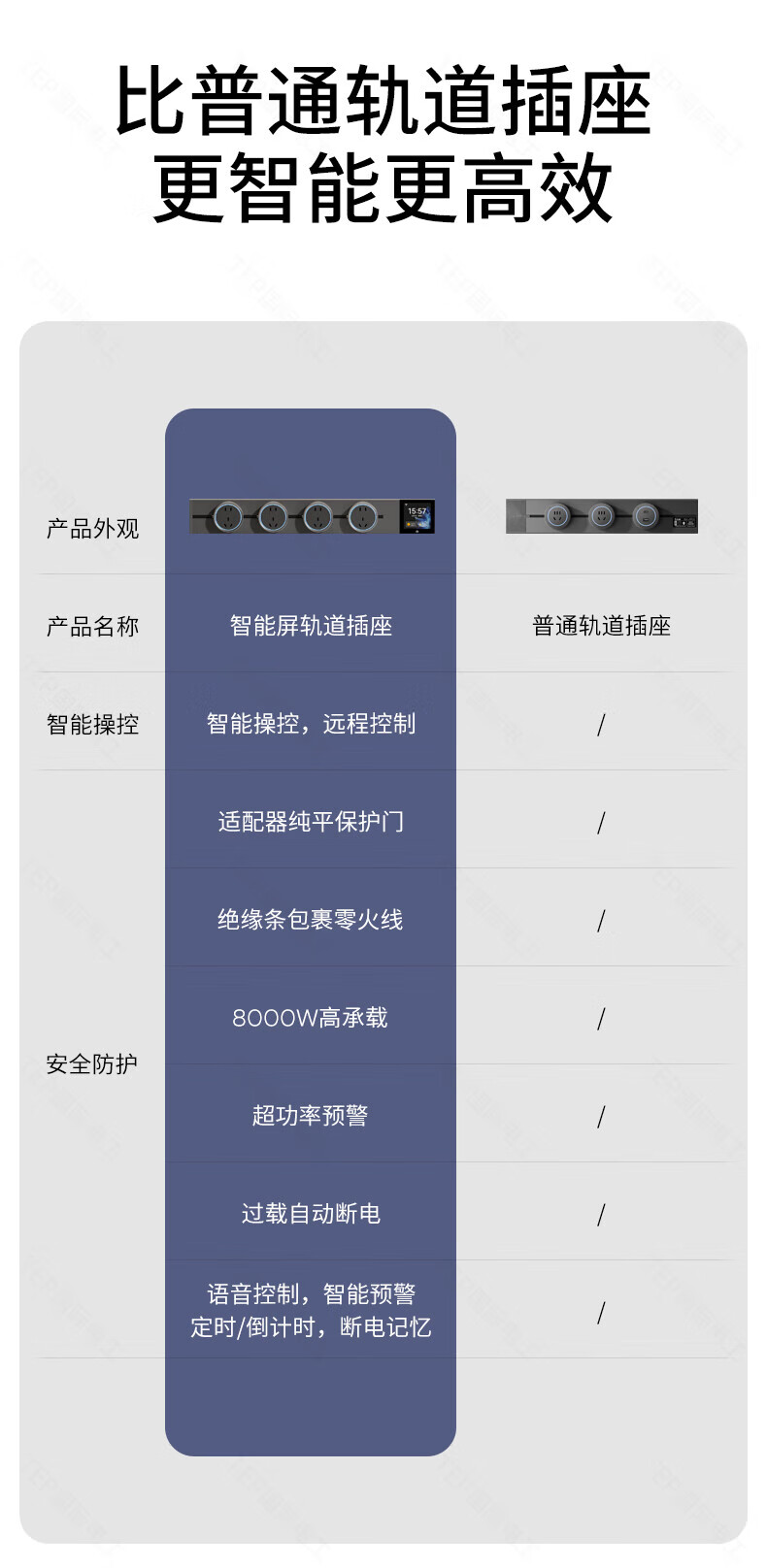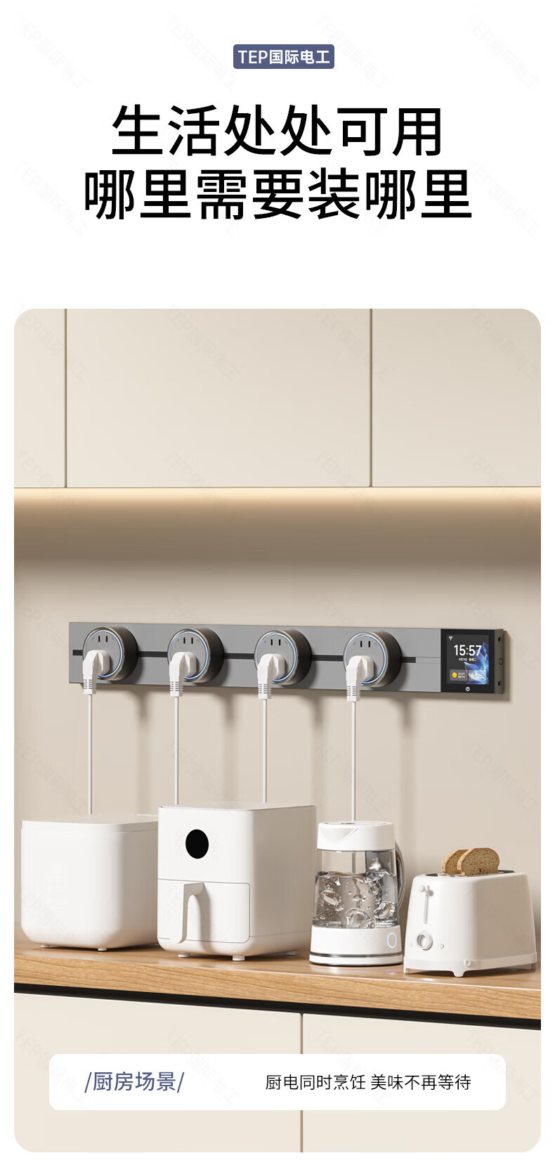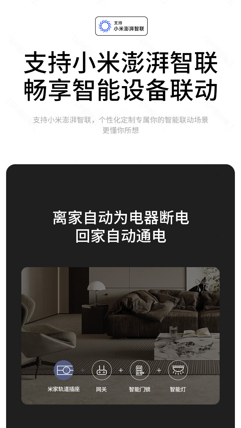 国际电工TEP电工智能屏轨道插座屏显大功率过载保护可移动墙壁挂式支持语 【智能屏】黑100厘米 语音/远程