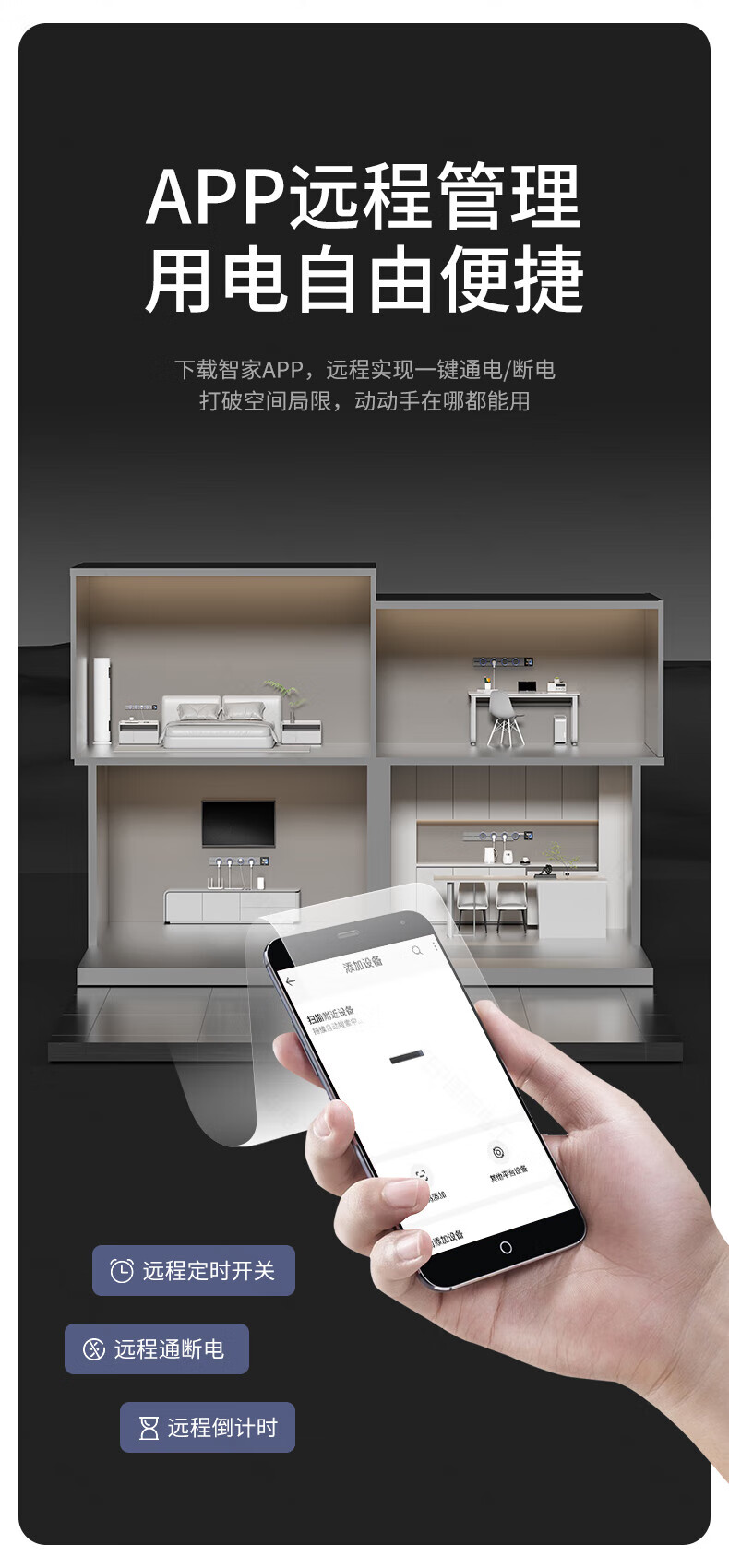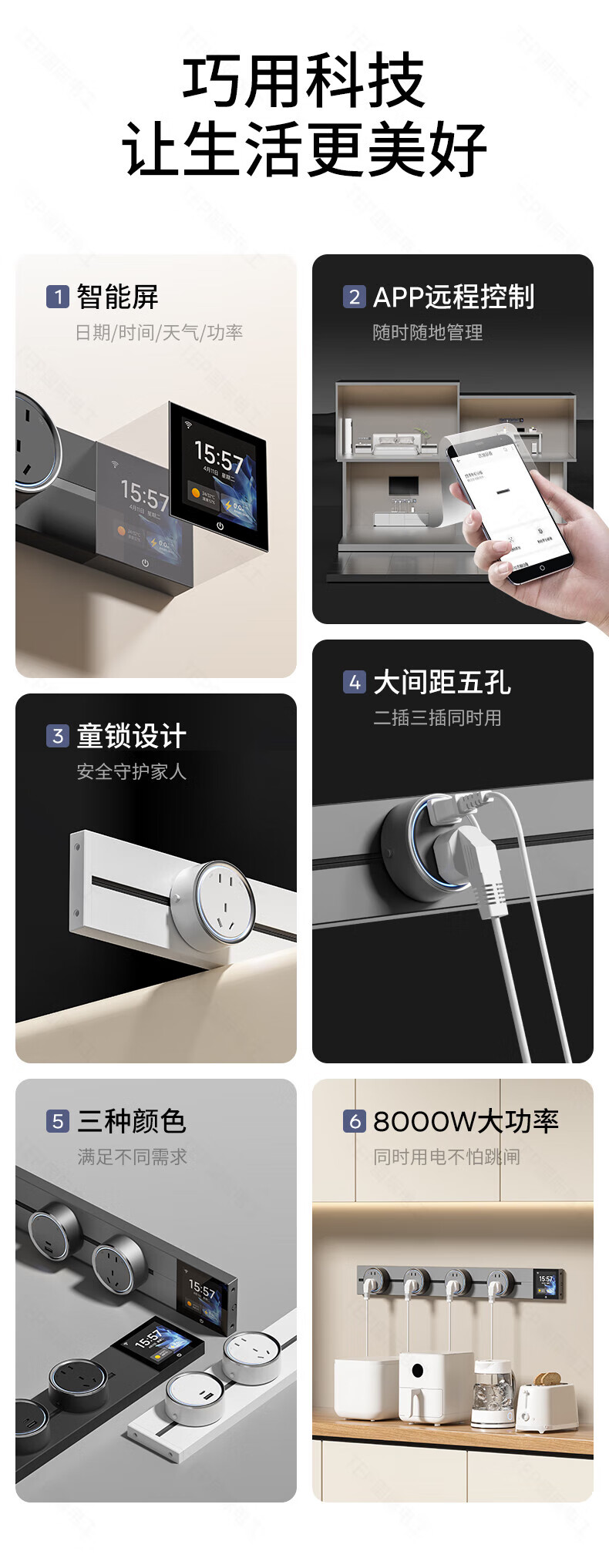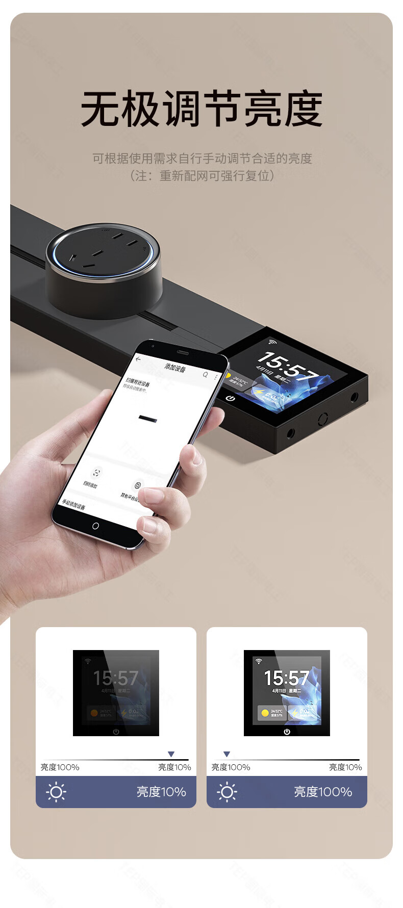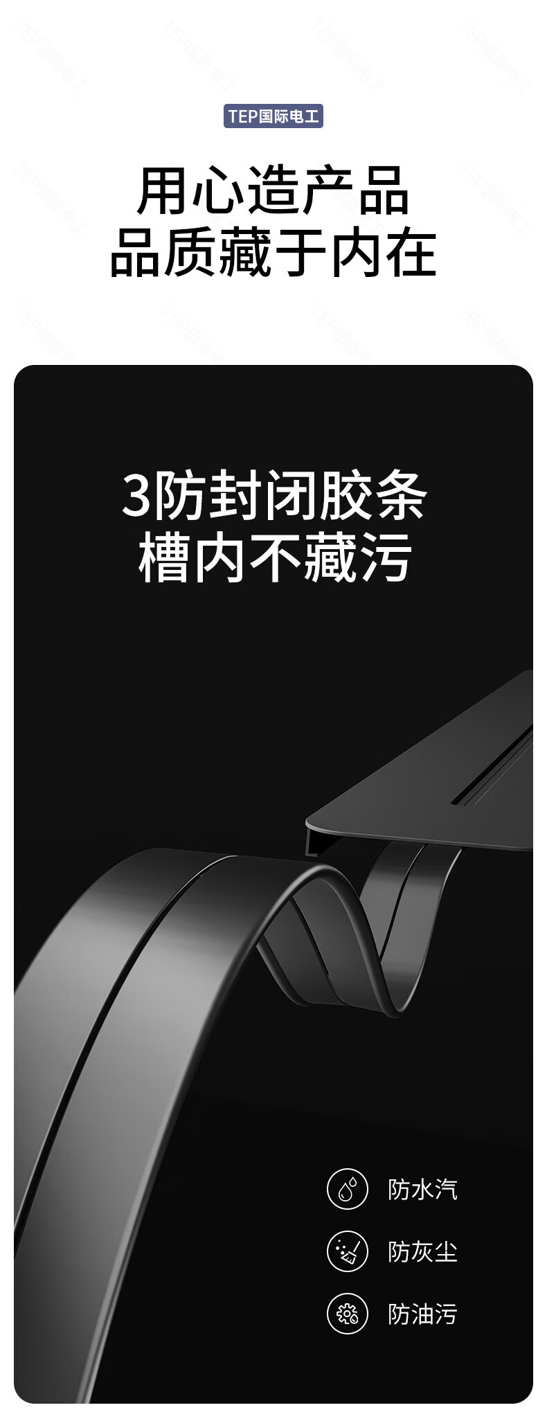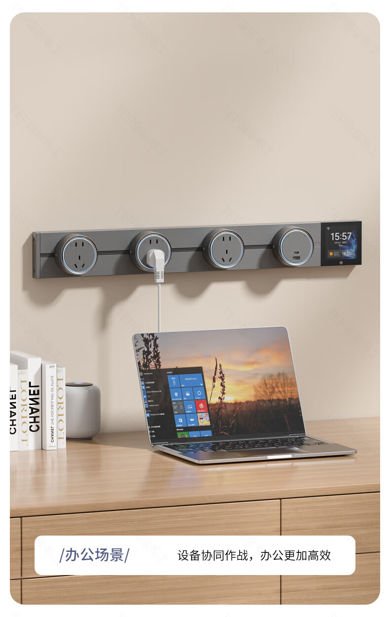 国际电工TEP电工智能屏轨道插座屏显大功率过载保护可移动墙壁挂式支持语 【智能屏】黑100厘米 语音/远程