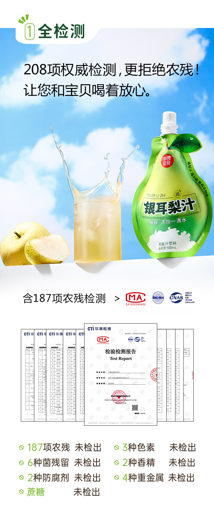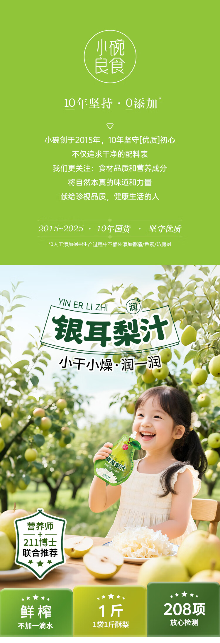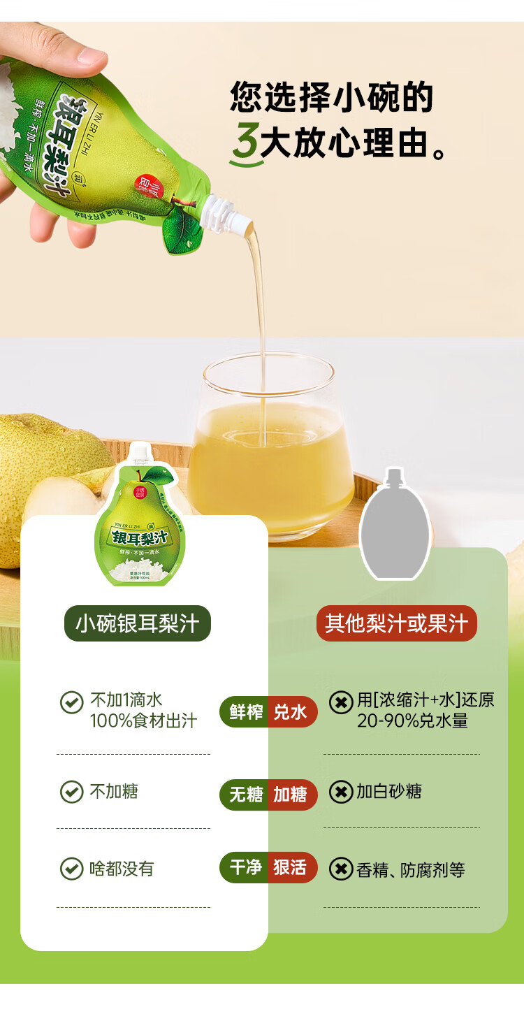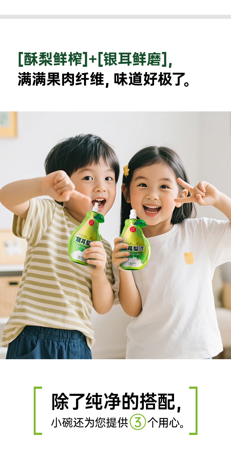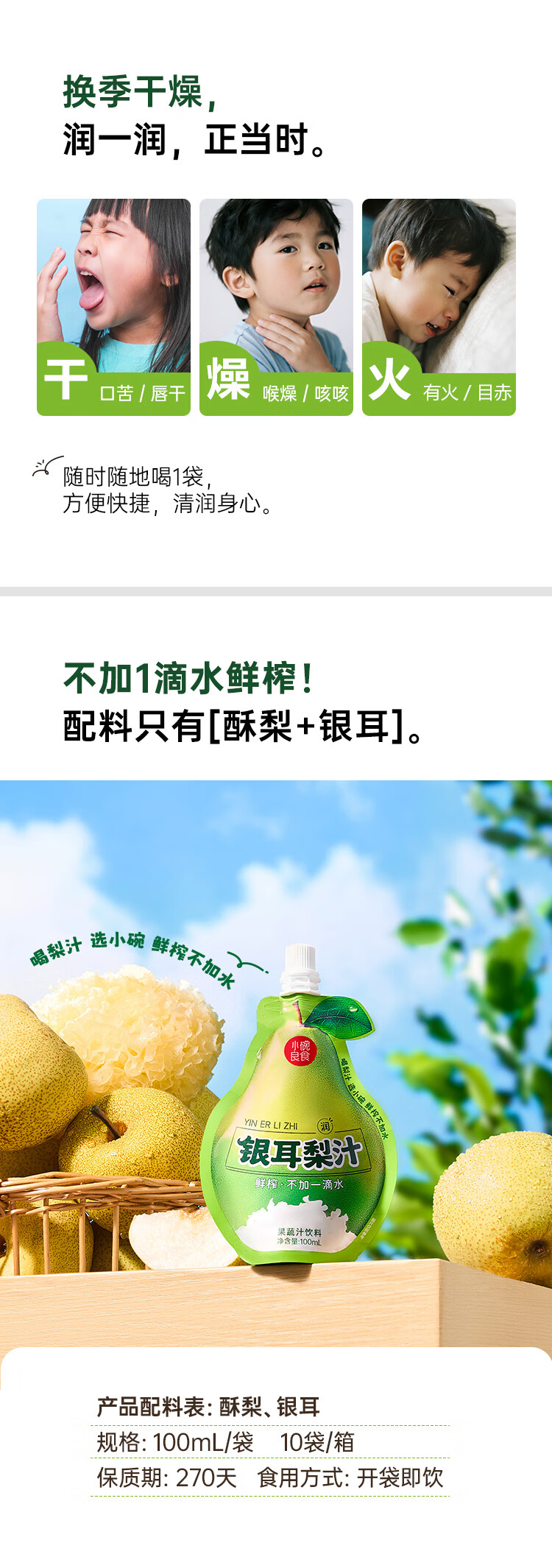 小碗良食果汁饮料果蔬汁银耳梨汁无添加鲜榨婴儿宝宝儿童成人整箱礼盒装 2箱(100ml*10袋/箱)