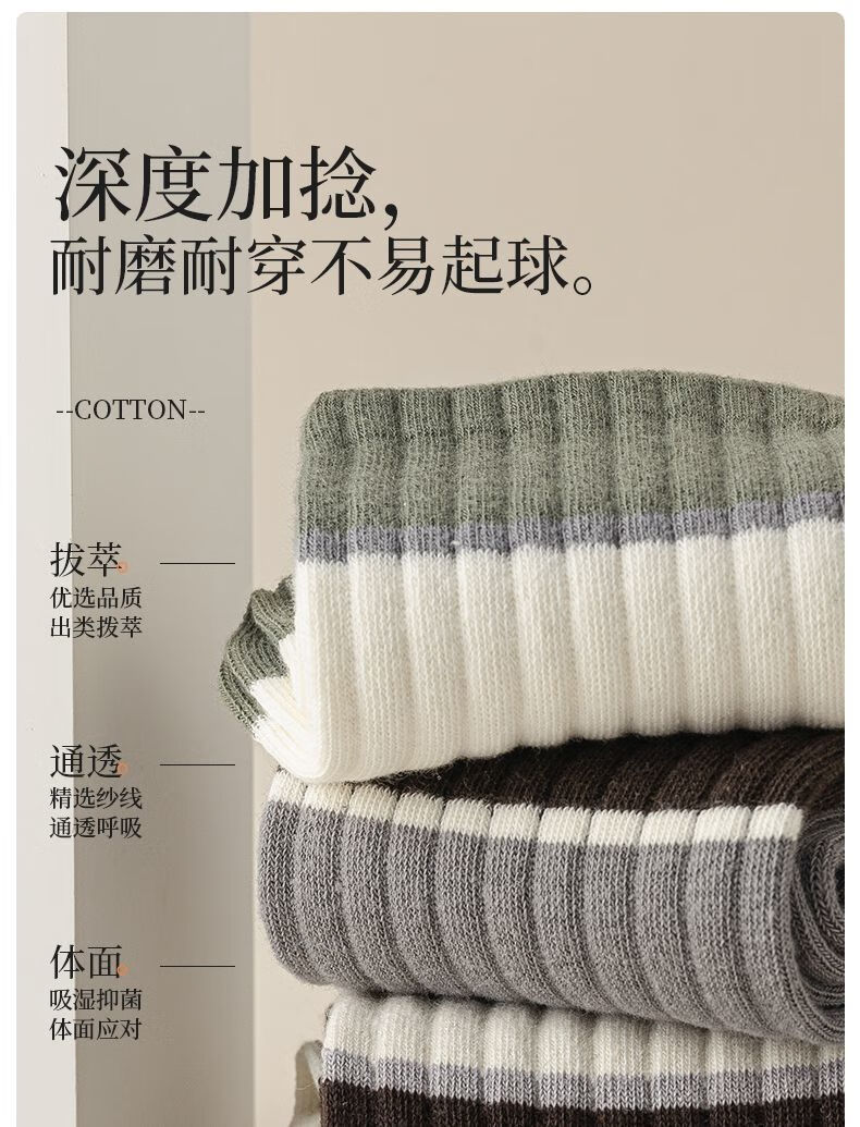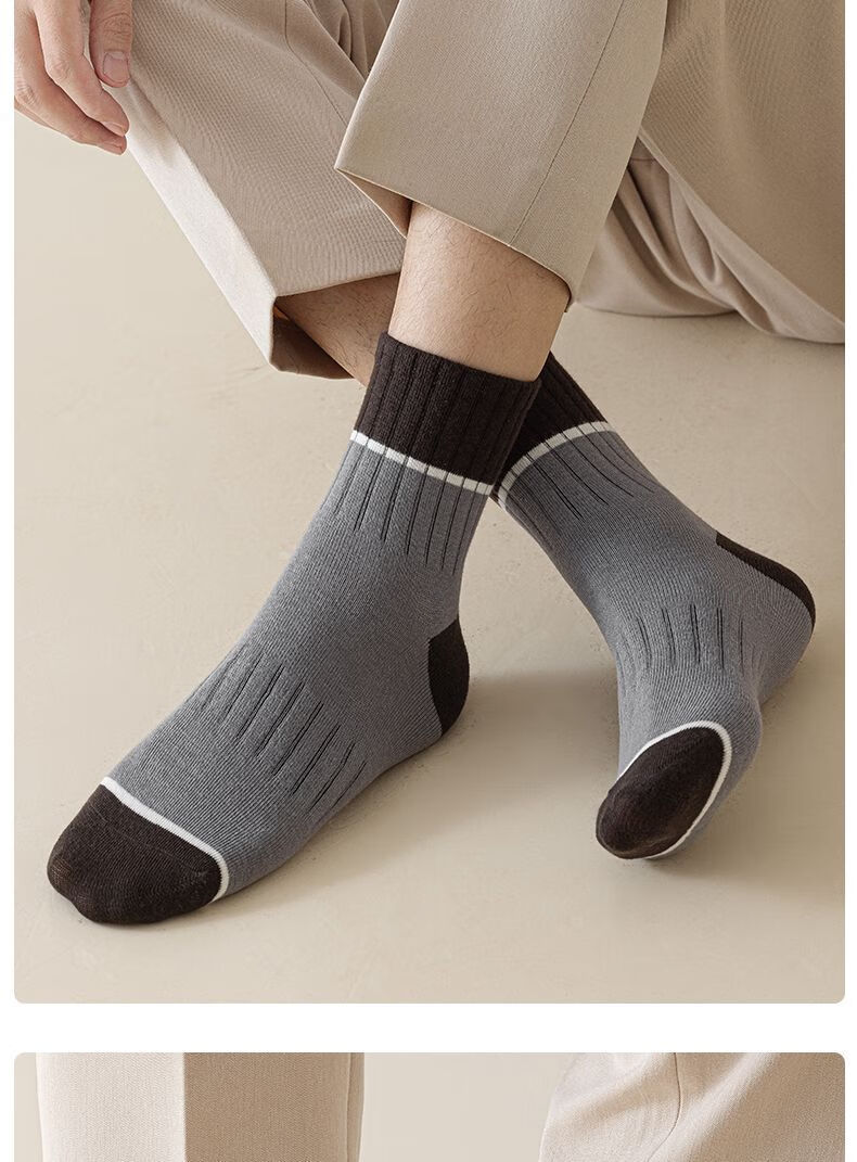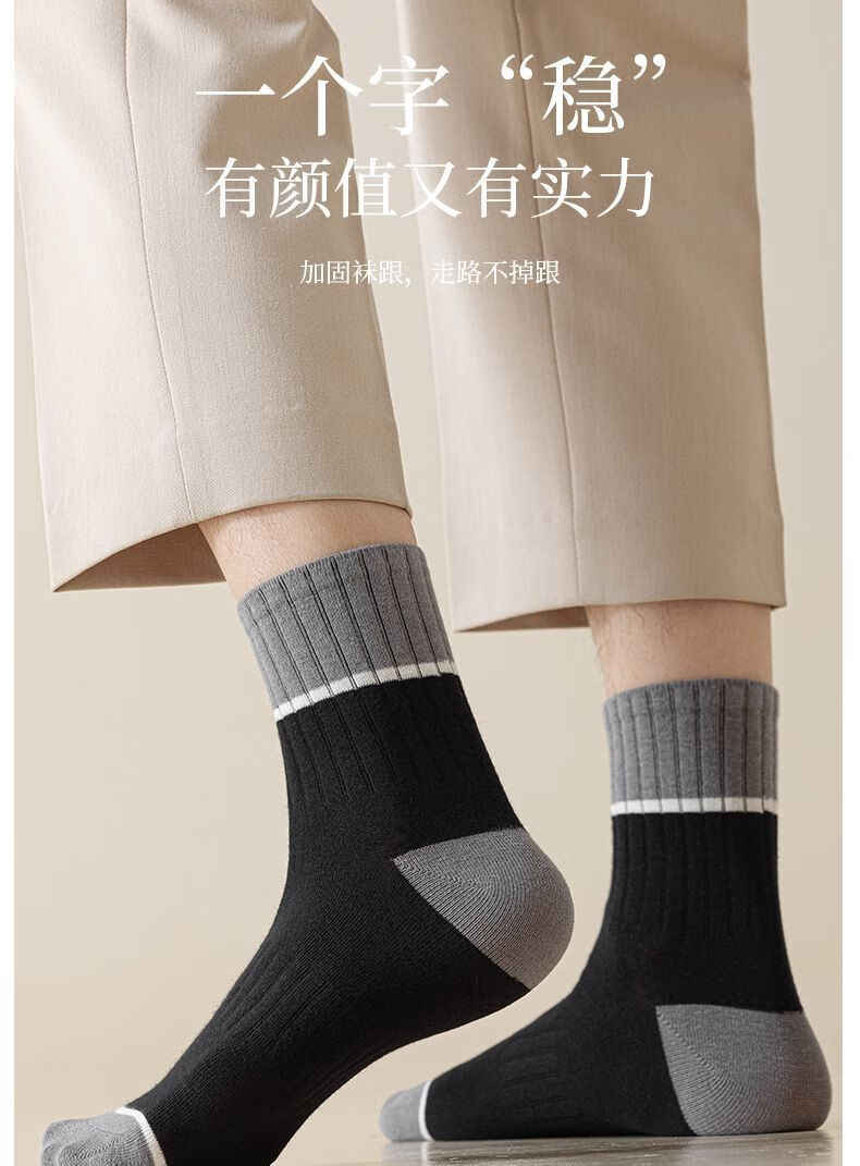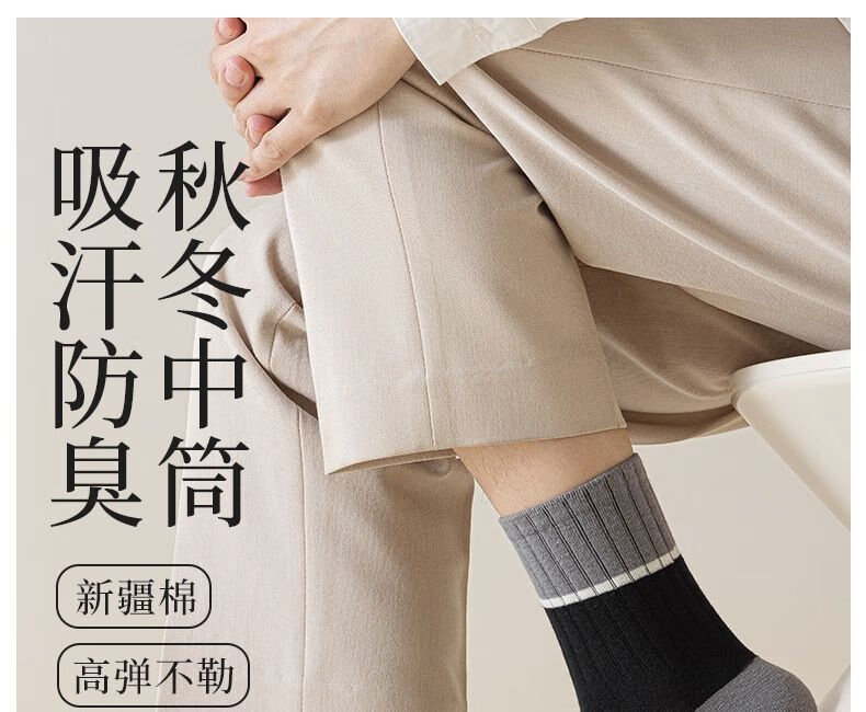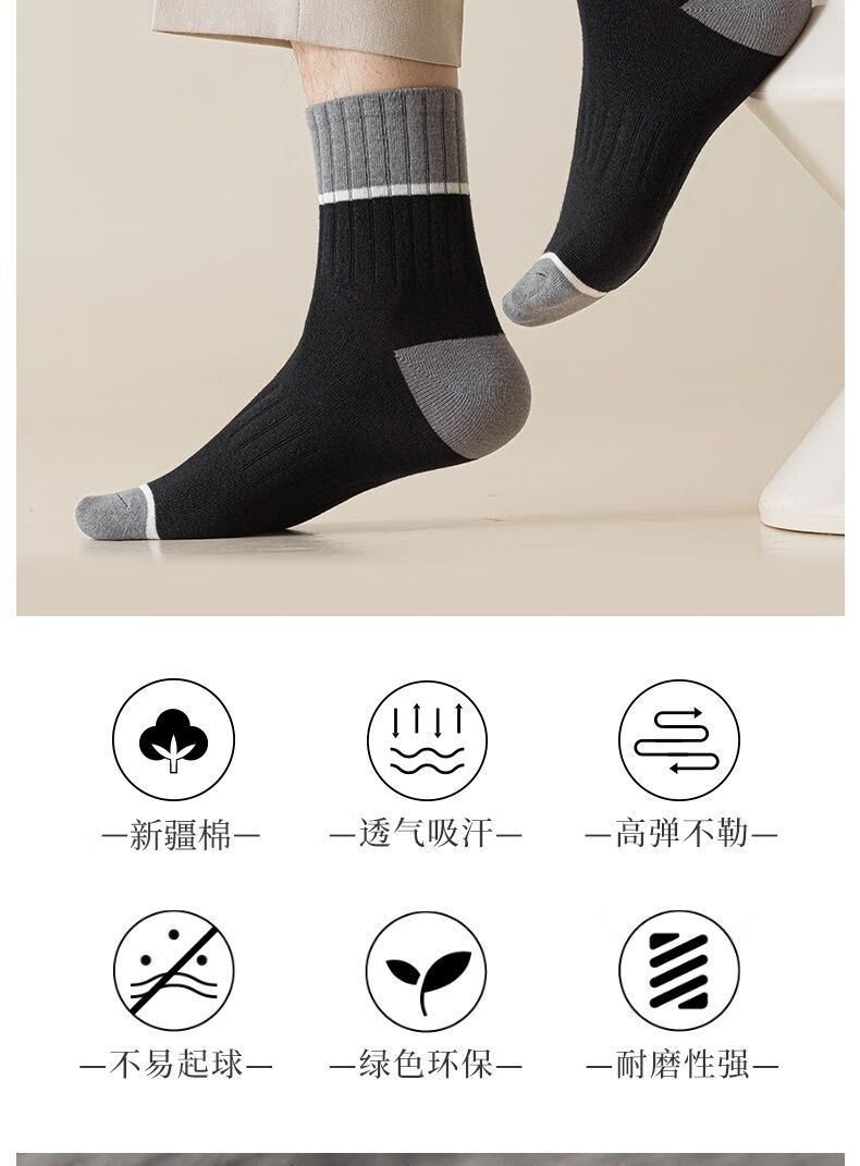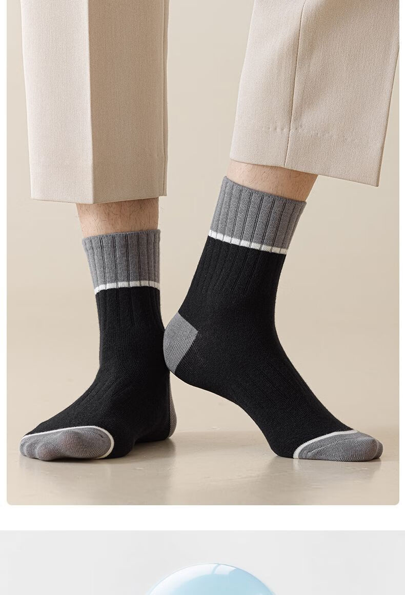 雅鹿新疆长绒棉毛圈袜子男士秋冬加厚棉防臭吸汗透气运动中筒袜 加厚棉袜【驱寒升温】 均码 秋冬厚款:【十双装】混色