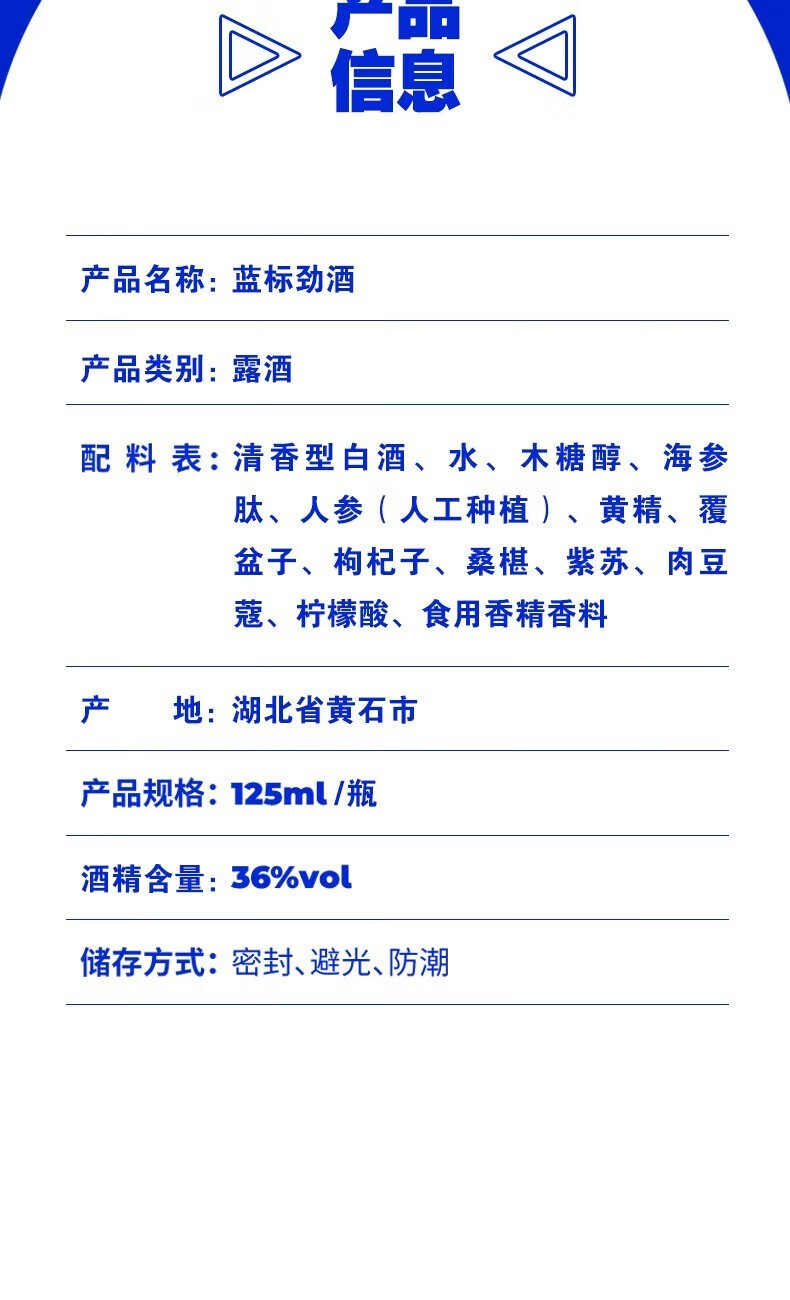 劲牌 中国劲酒 蓝标劲酒36度125ml小瓶装 整箱装 居家聚会 送长辈 36度 125mL 6瓶
