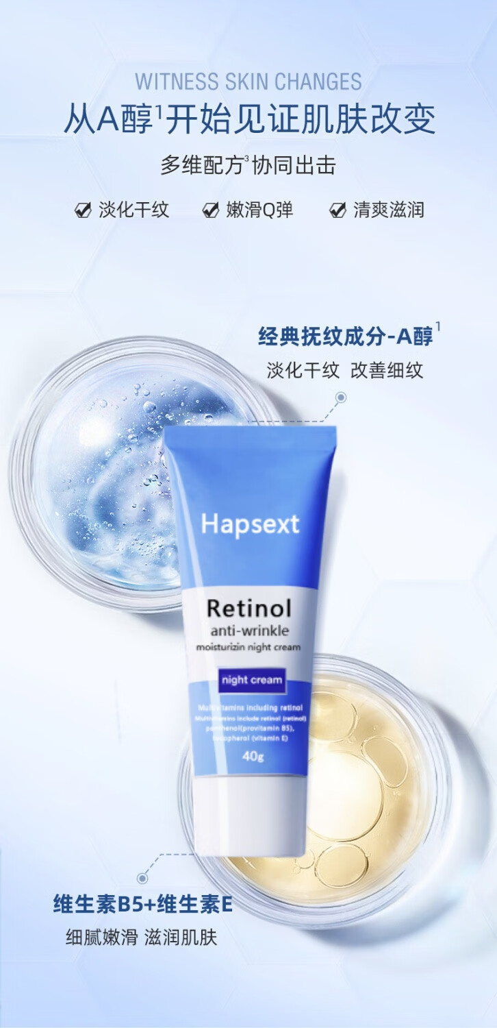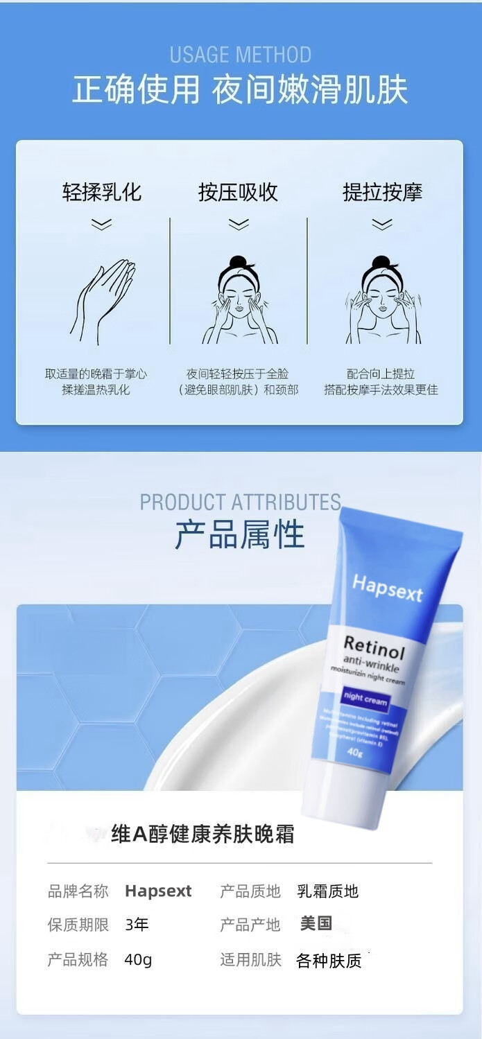 Hapsext视黄醇保湿抗皱面霜视黄醇晚霜抗皱纹紧致舒缓提亮抗老淡化细纹 天蓝色