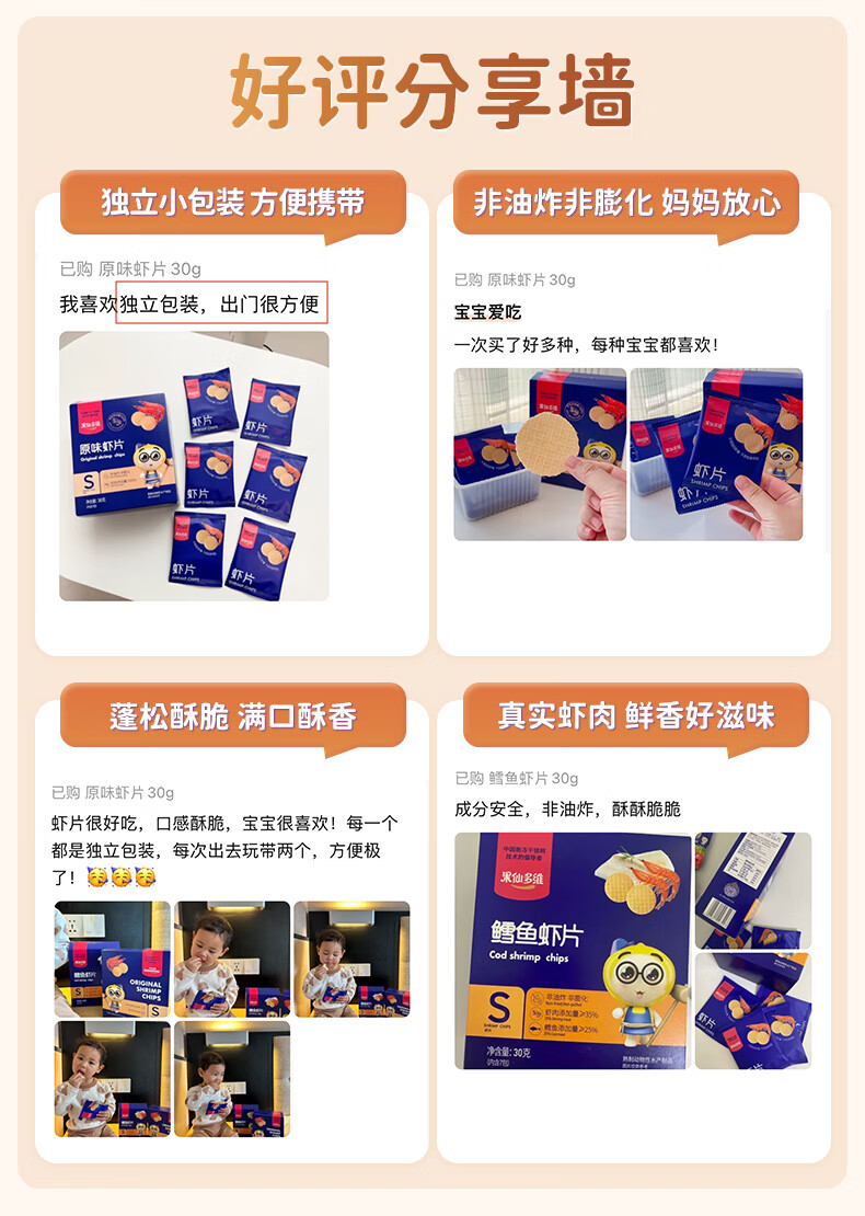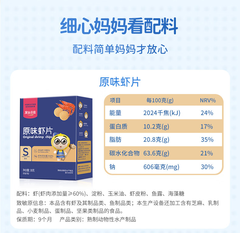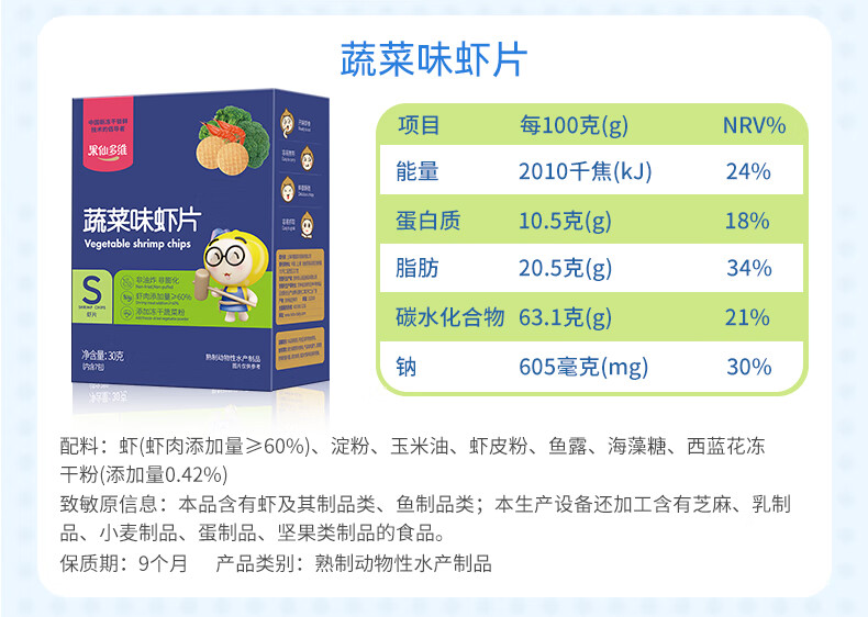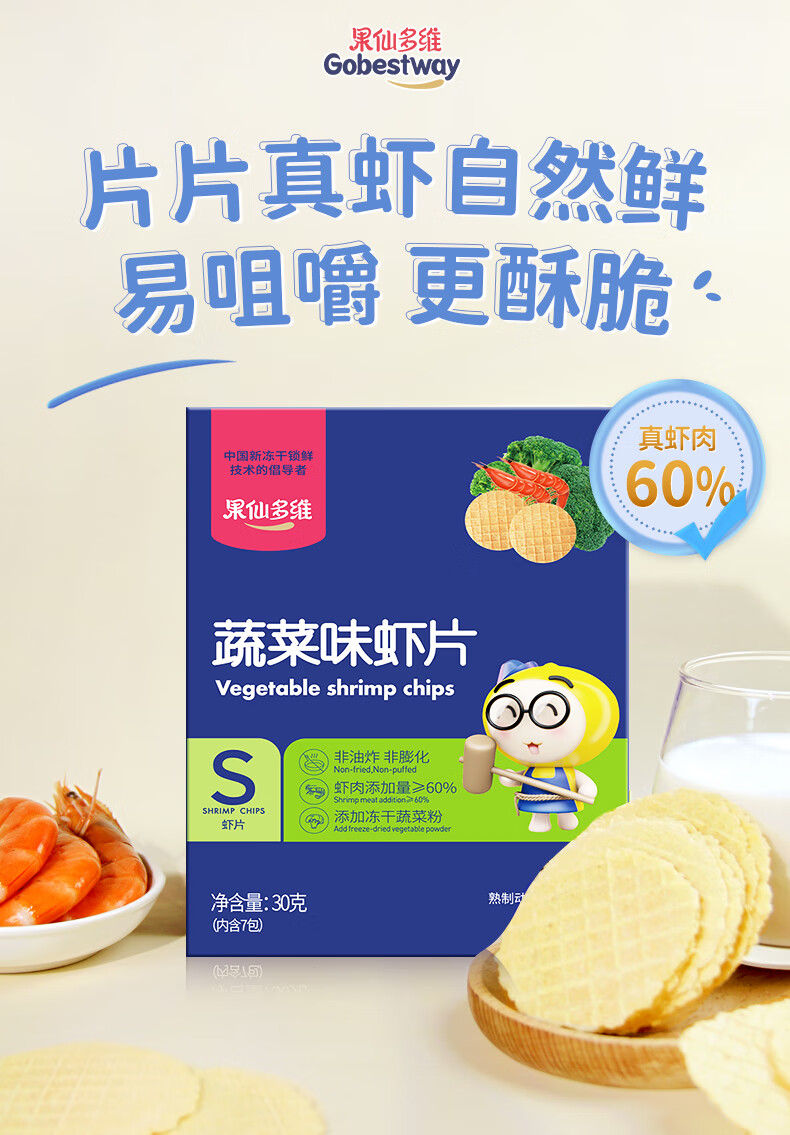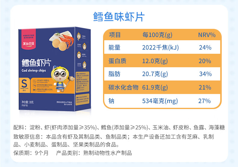果仙多维 鲜虾片 儿童零食虾片 磨牙脆片原味虾肉含量≥60% 非油炸非膨化 【鳕鱼含量≥25%】鳕鱼味30g