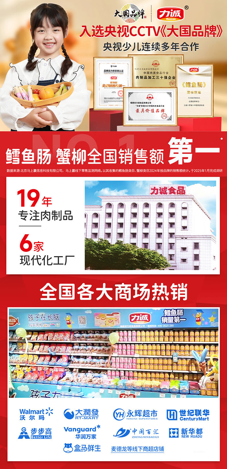 力诚海味零食深海鳕鱼肠休闲鱼片鳕鱼枣零食鱼香肠蟹柳棒 【香辣味】加钙蟹柳18g*30支