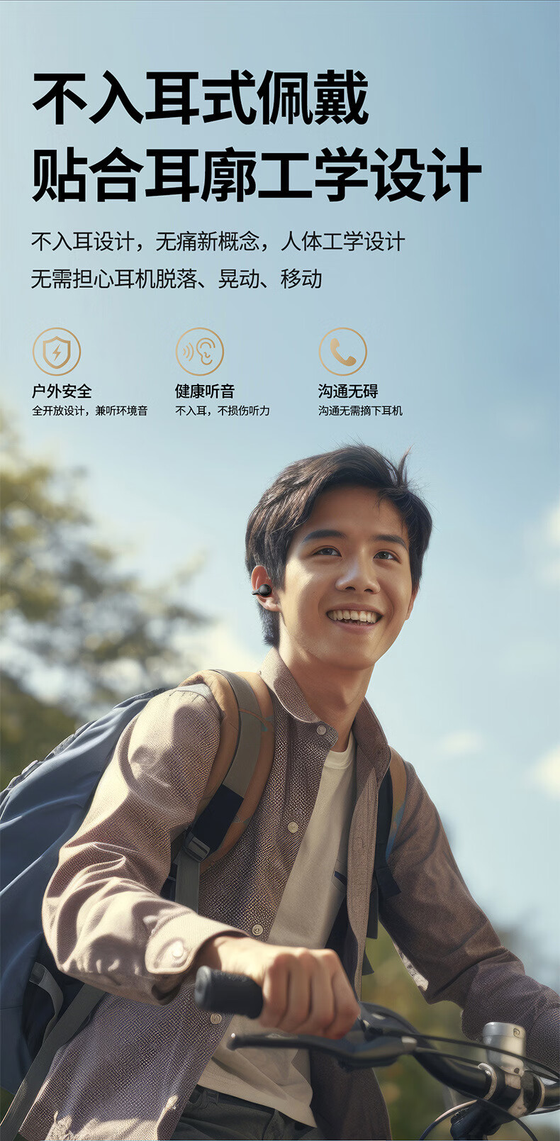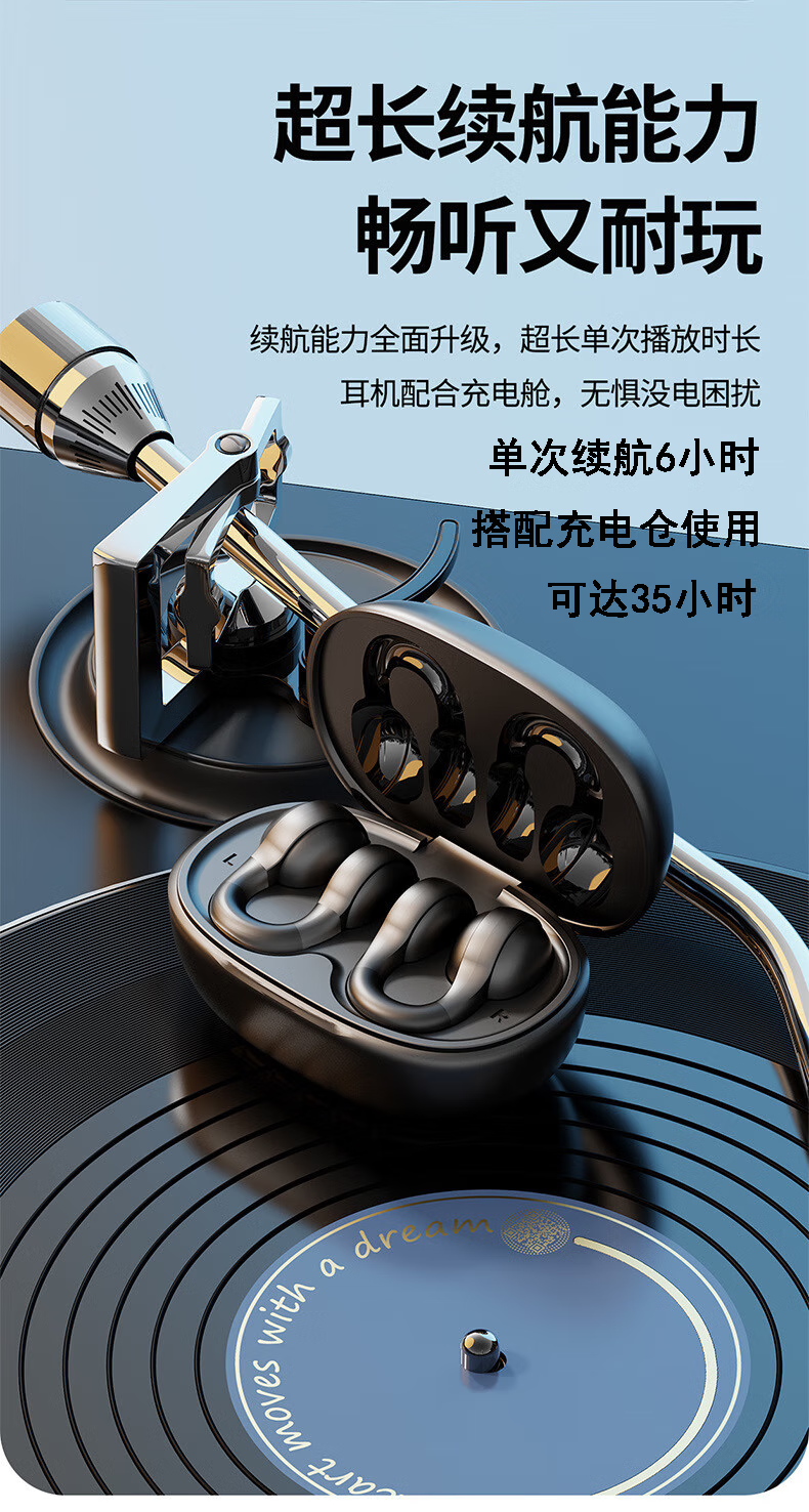 鑫羽音【精选】新款无线蓝牙耳机不入耳气骨传导耳挂式超长续航适用于vivo华为OPPO小米苹果通用 白-万元音效+超长续航+超清通话 蓝牙通用