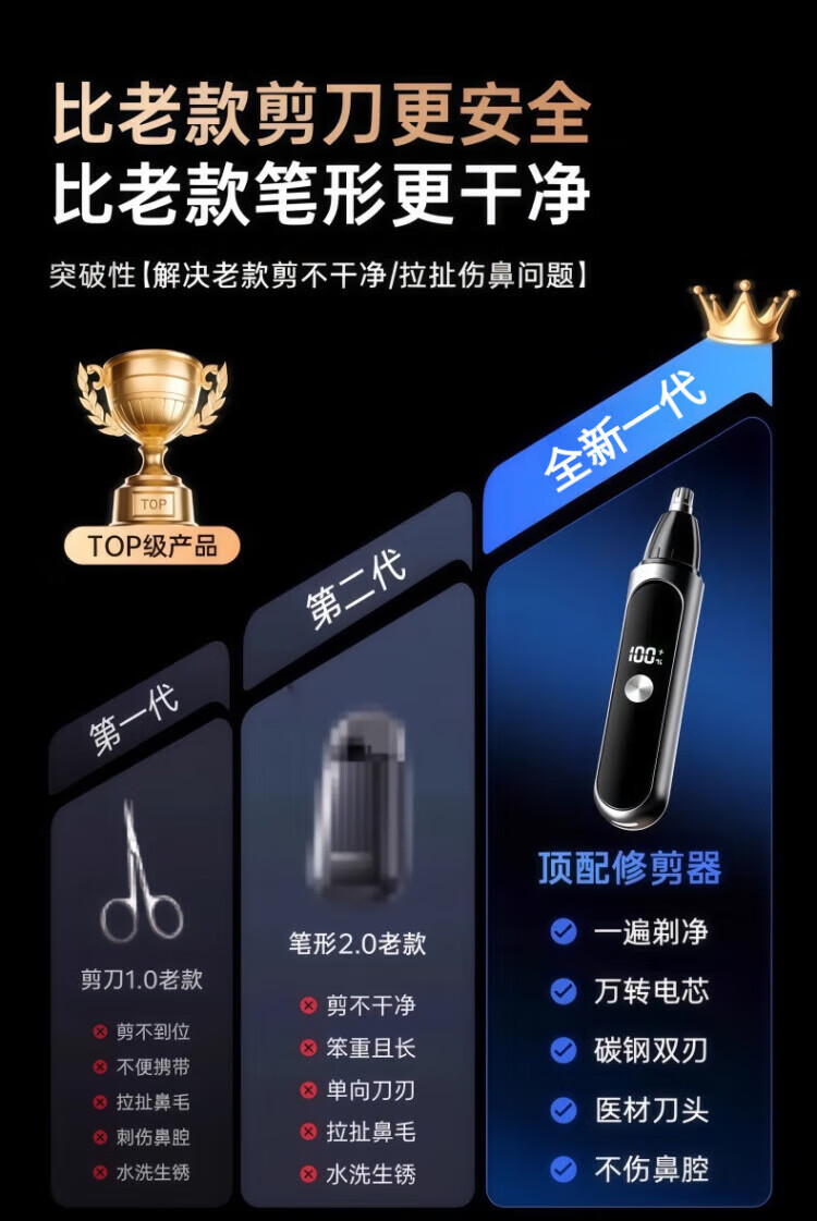 飒望德国电动鼻毛修剪器男士专用鼻孔剃毛神器充电式强劲干净不留痕迹不伤鼻腔超长续航男士生日礼物首 星空银【顶配尊享版】全身水洗 续航500天
