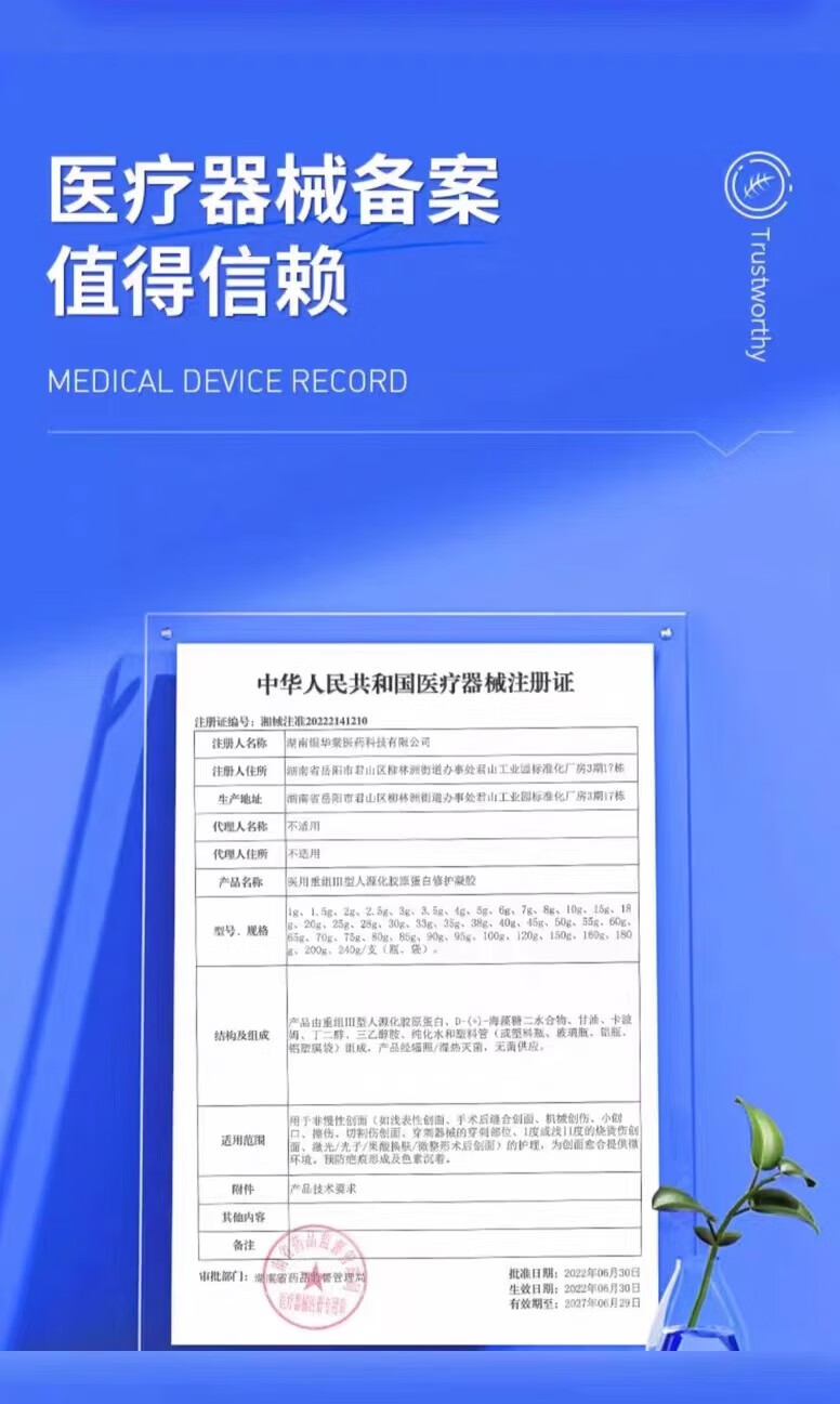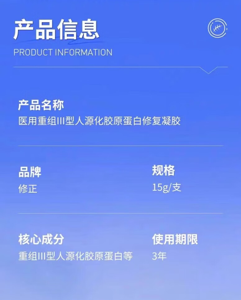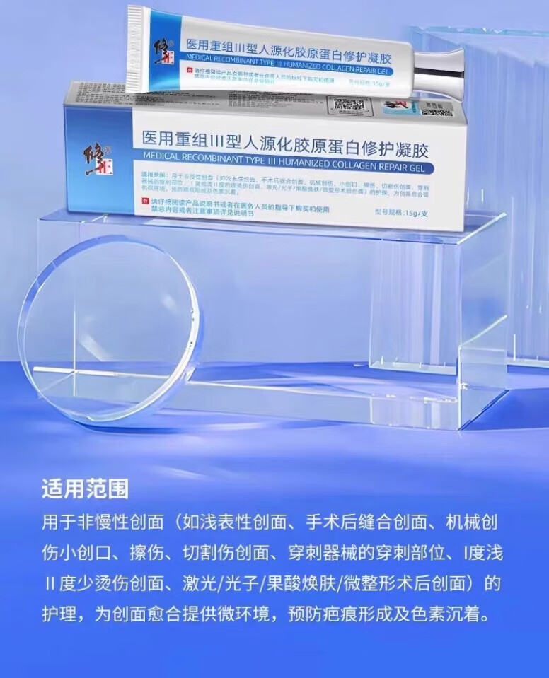 修正医用细胞重组三型人源化胶原蛋白凝胶创面修复促进愈合皮肤屏障 单盒【体验装】