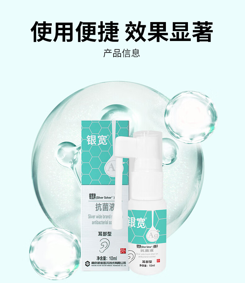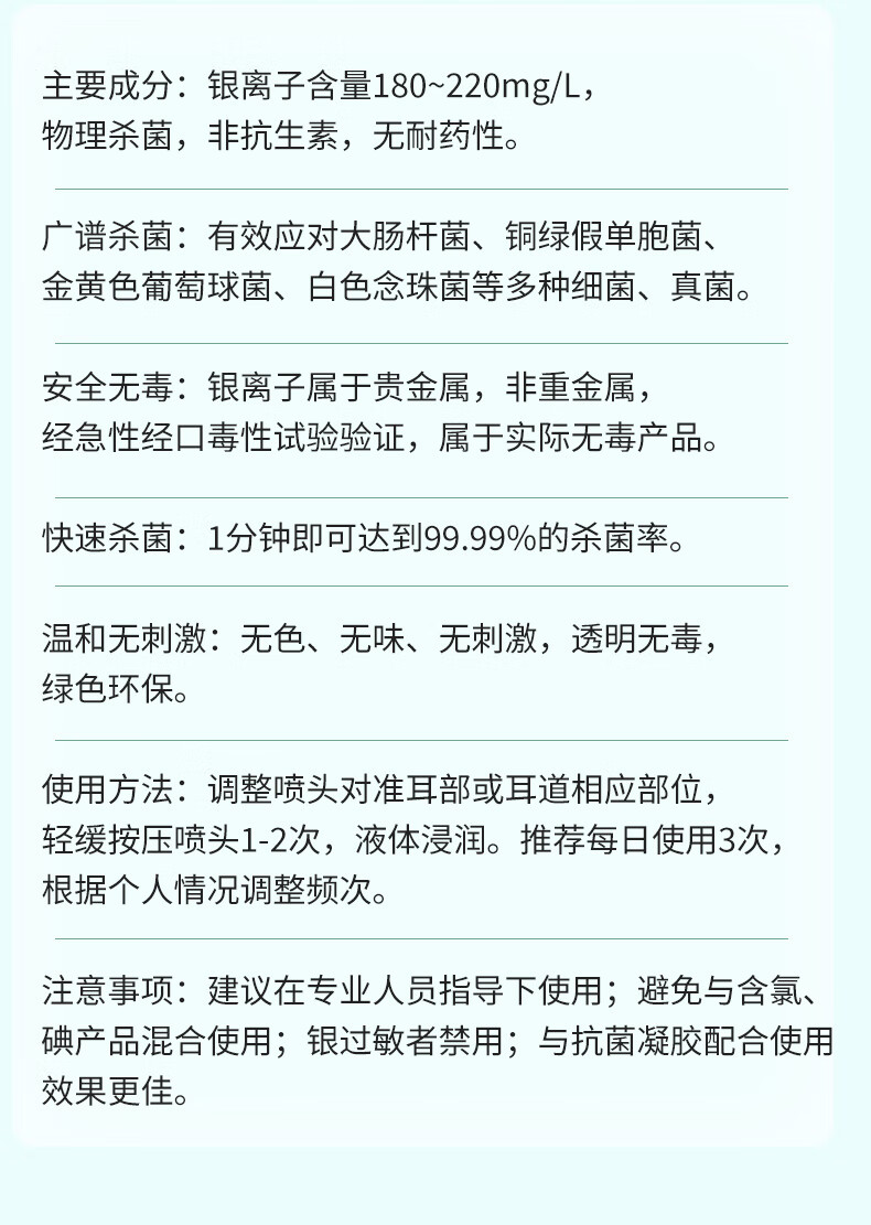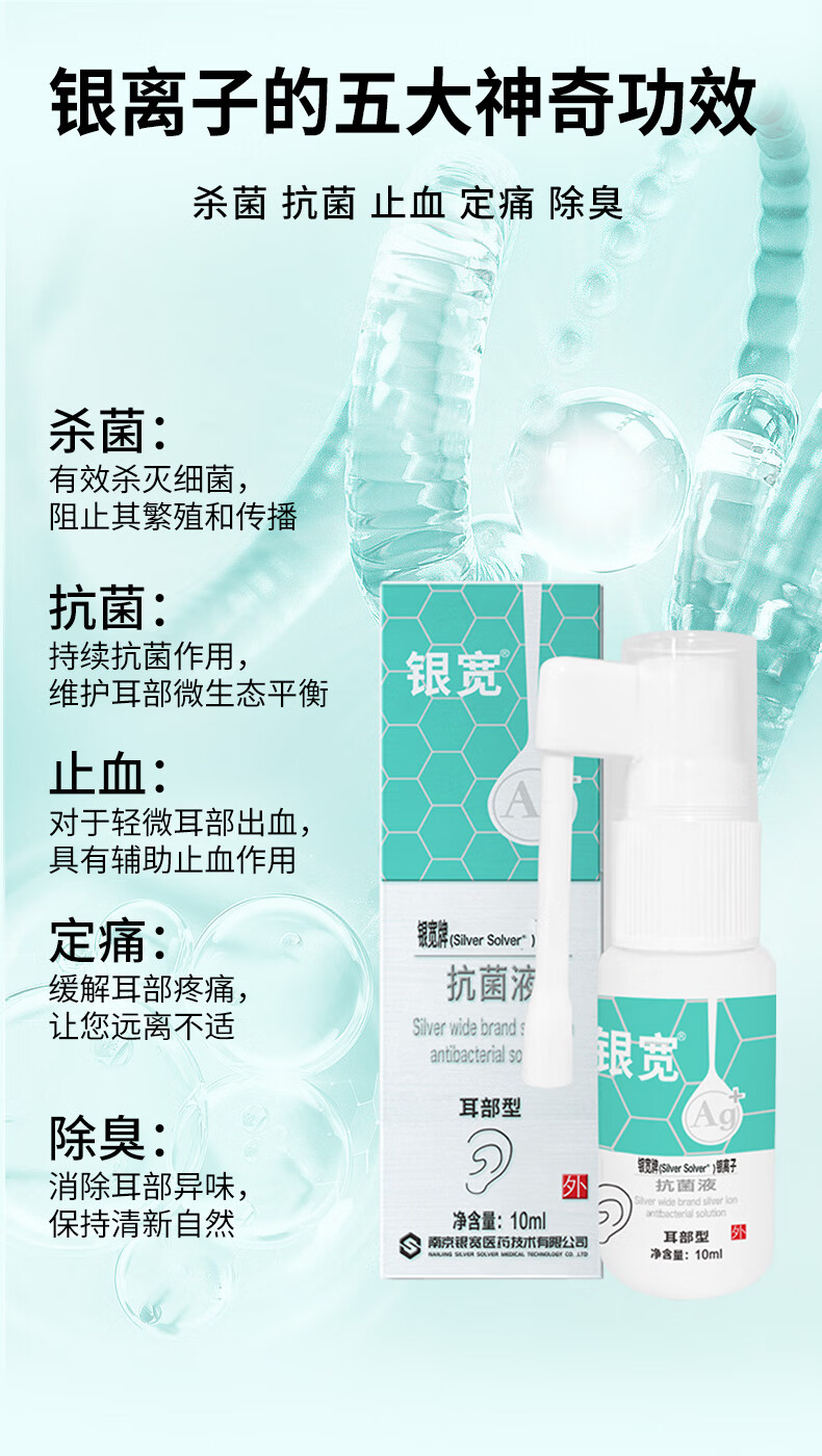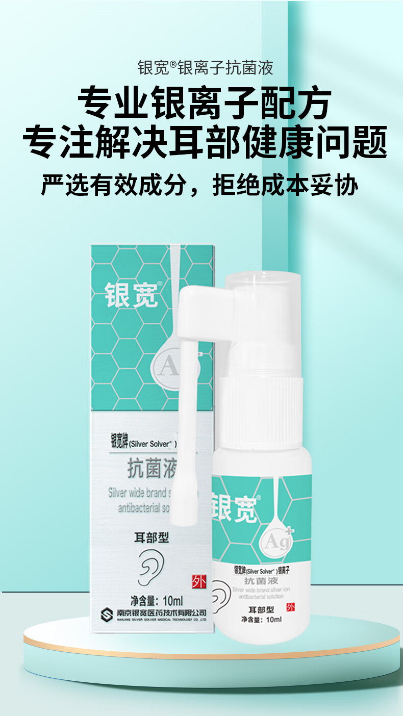 银宽银离子抗菌液耳部型10ml/瓶 真菌感染中耳鸣喷雾杀菌抗菌耳洞止痒 10ml/瓶(耳部型)