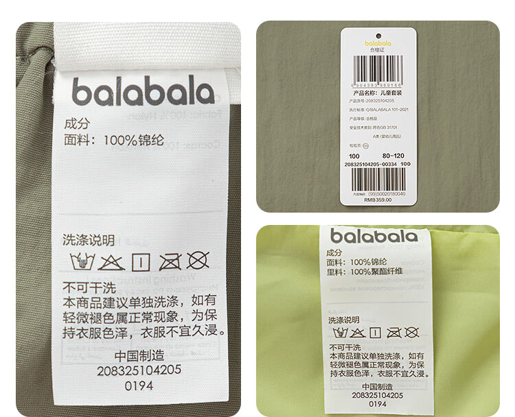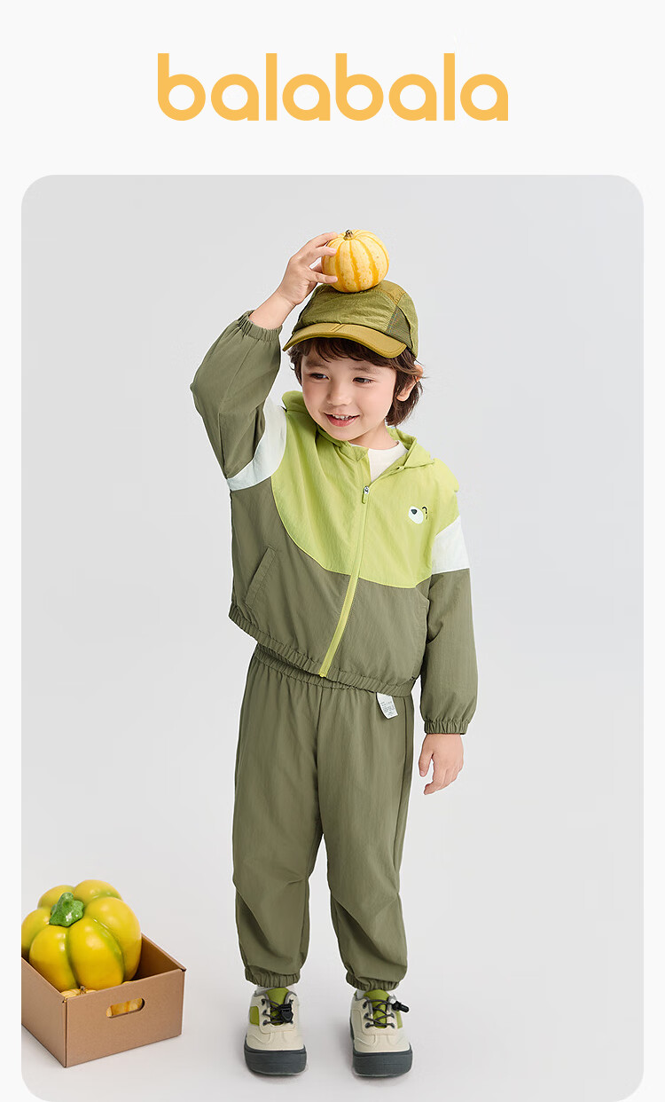 巴拉巴拉balaOne宝宝套装儿童长袖2件套男童女童2025新款秋装户外 黄绿色调00334 100