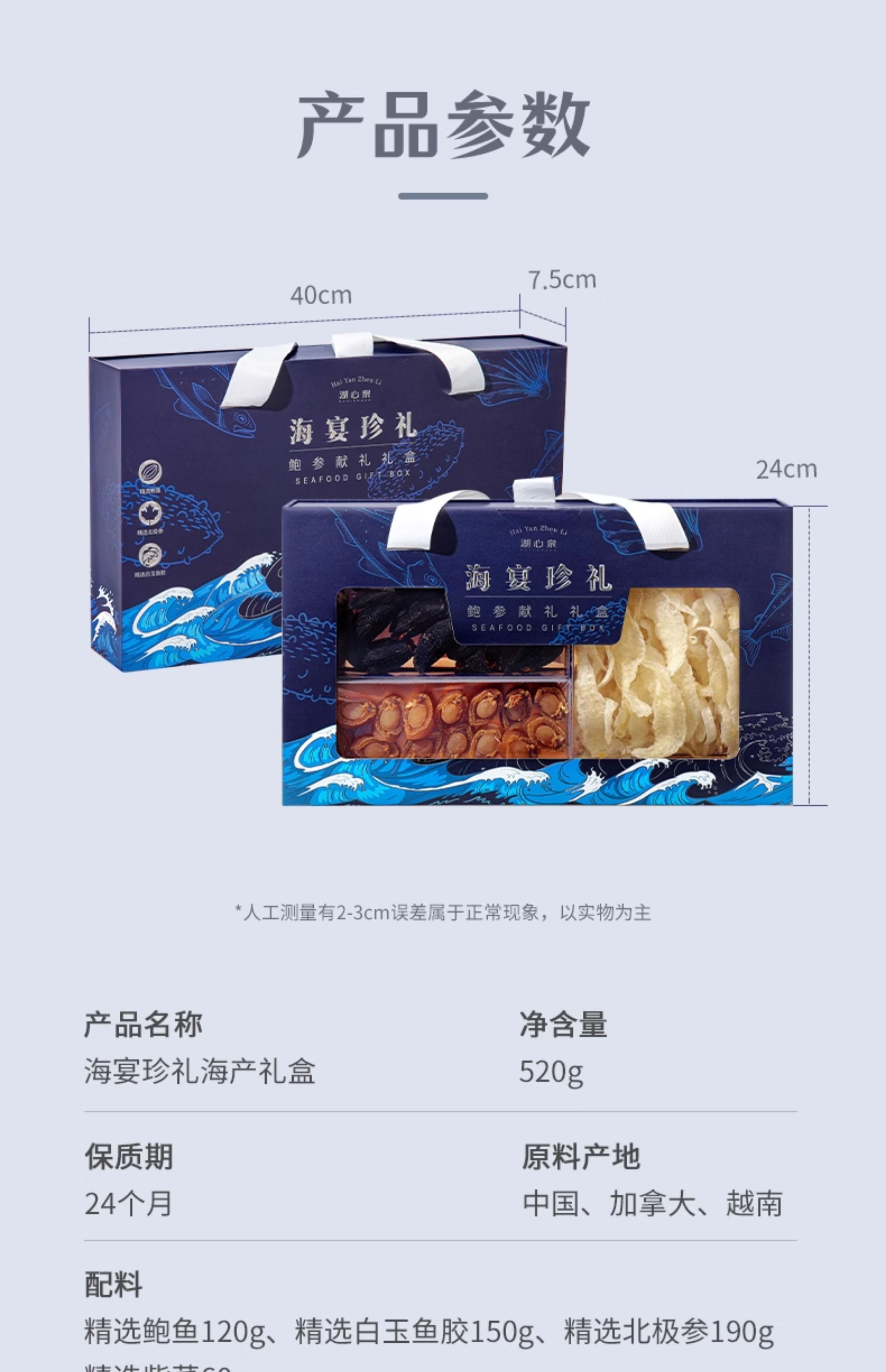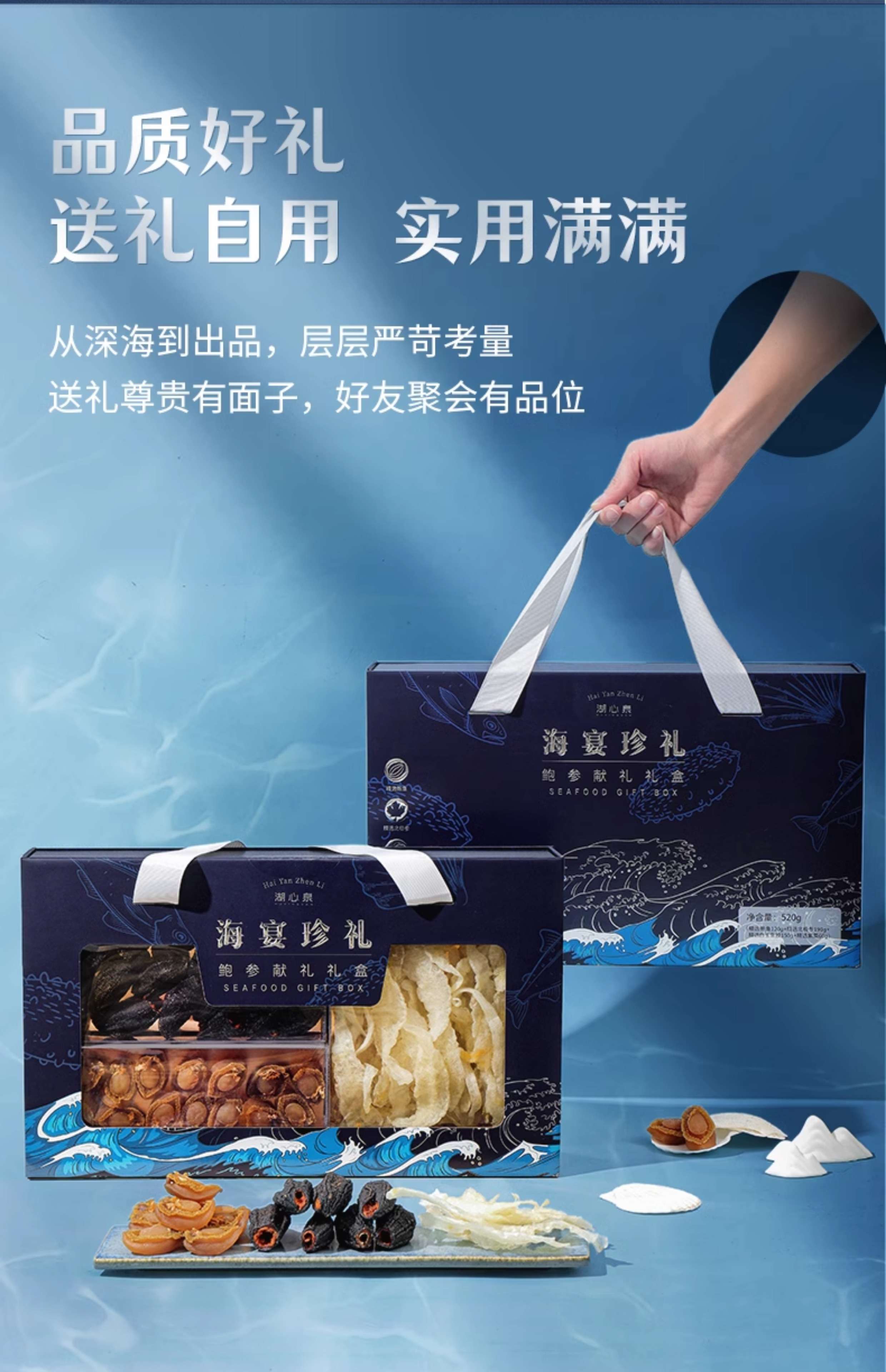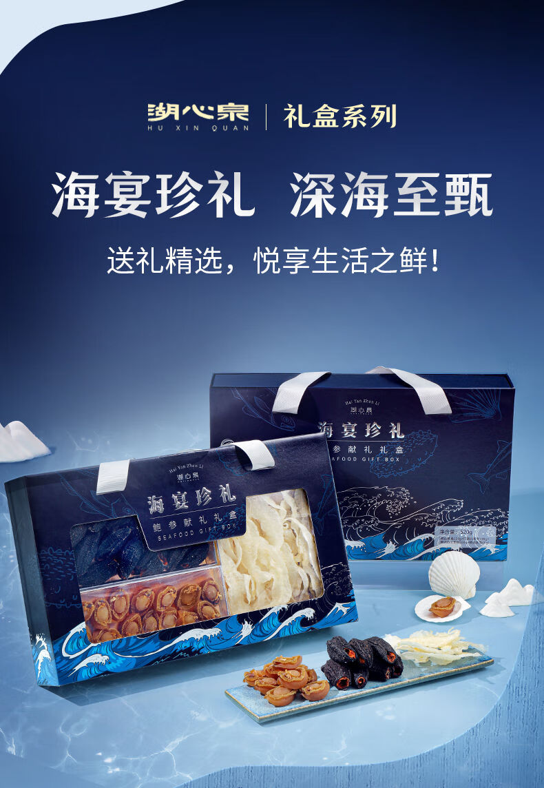 湖心泉海产海鲜礼盒干货礼盒北极参特产礼盒520g海参鲍鱼送礼送领导 海产礼盒520g