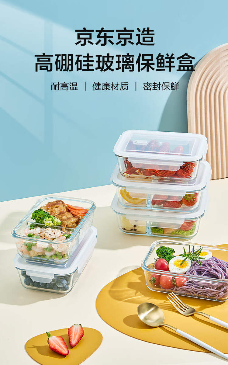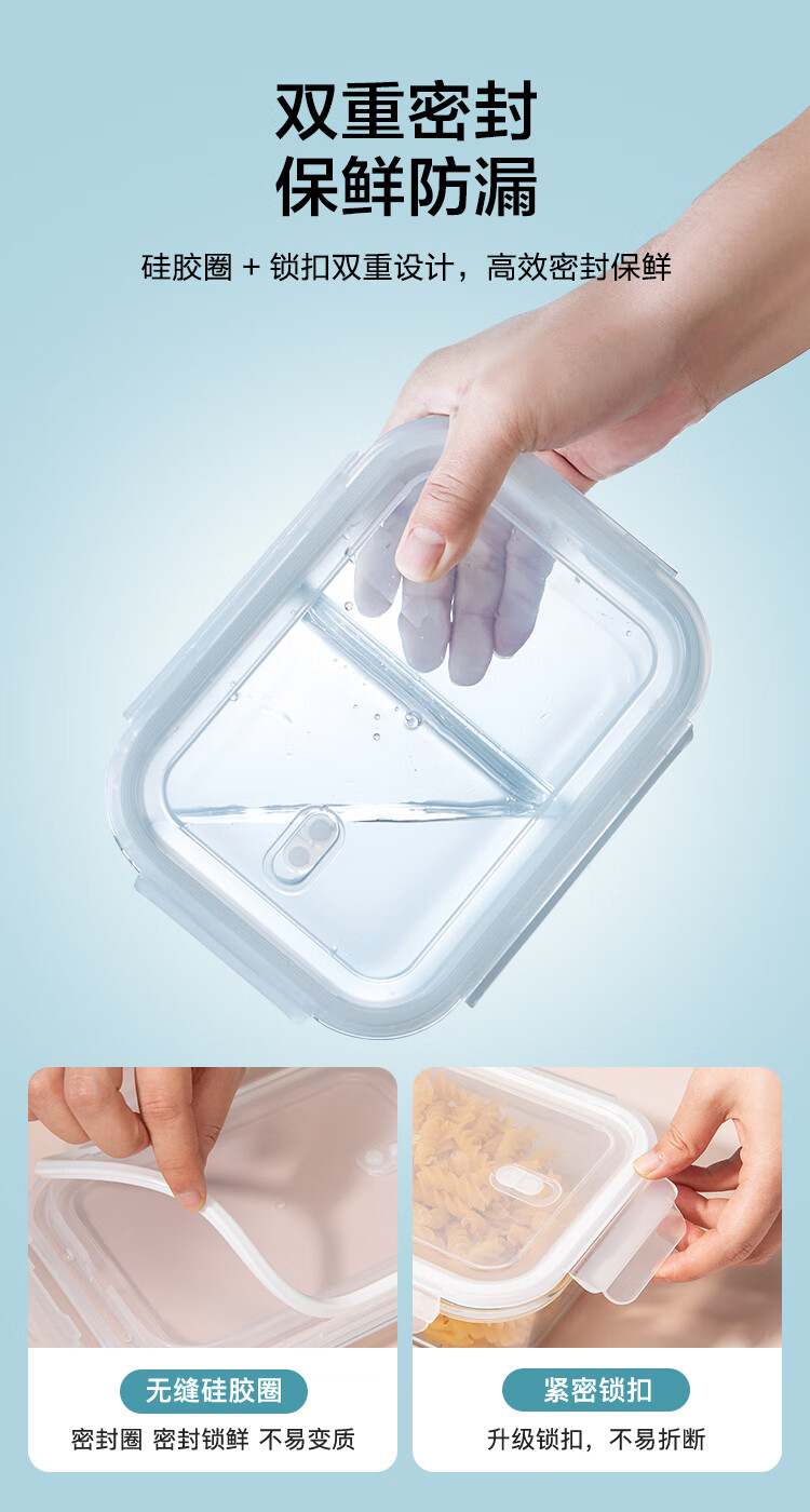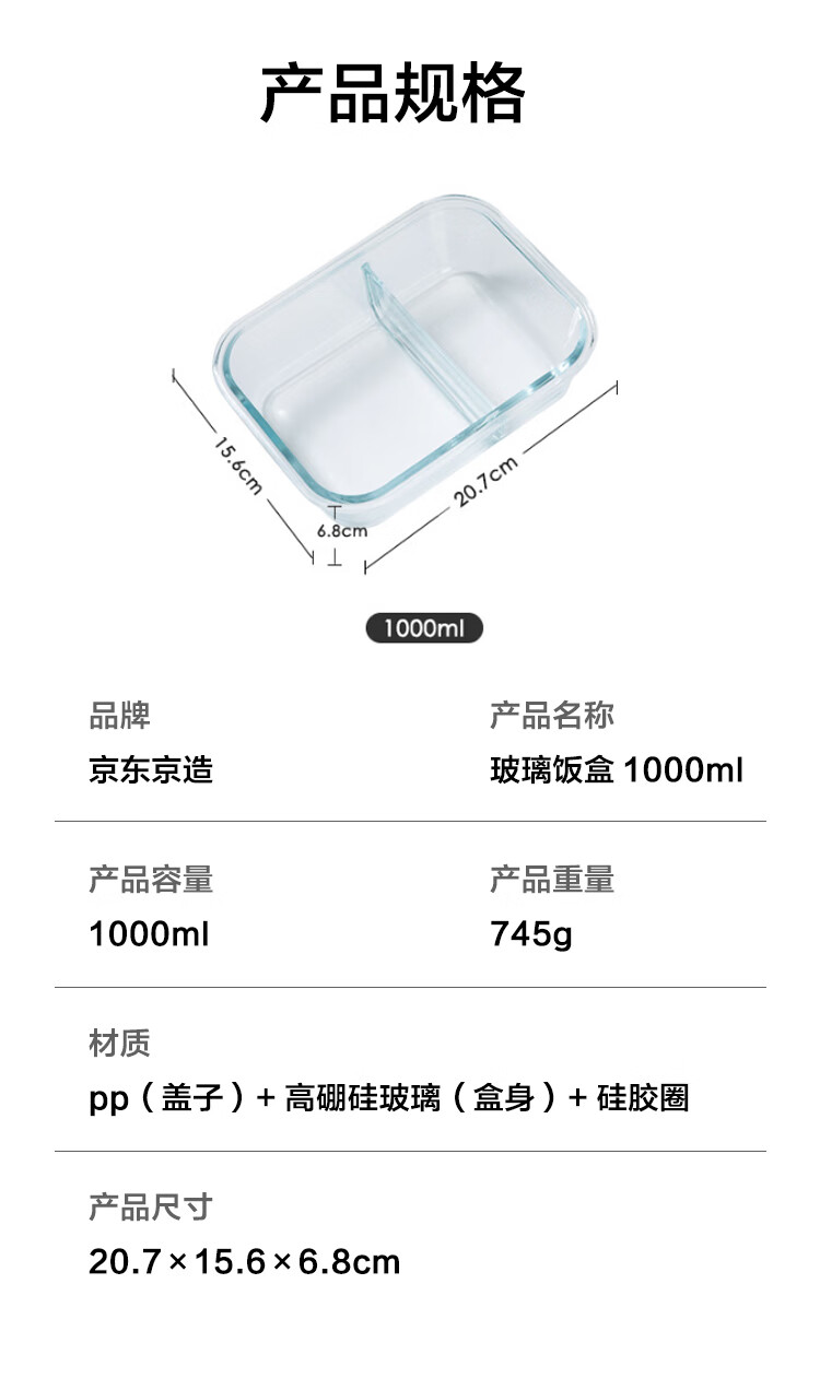 京东京造高硼硅耐热可微波分格保鲜盒学生上班族便当盒两分格1040mL