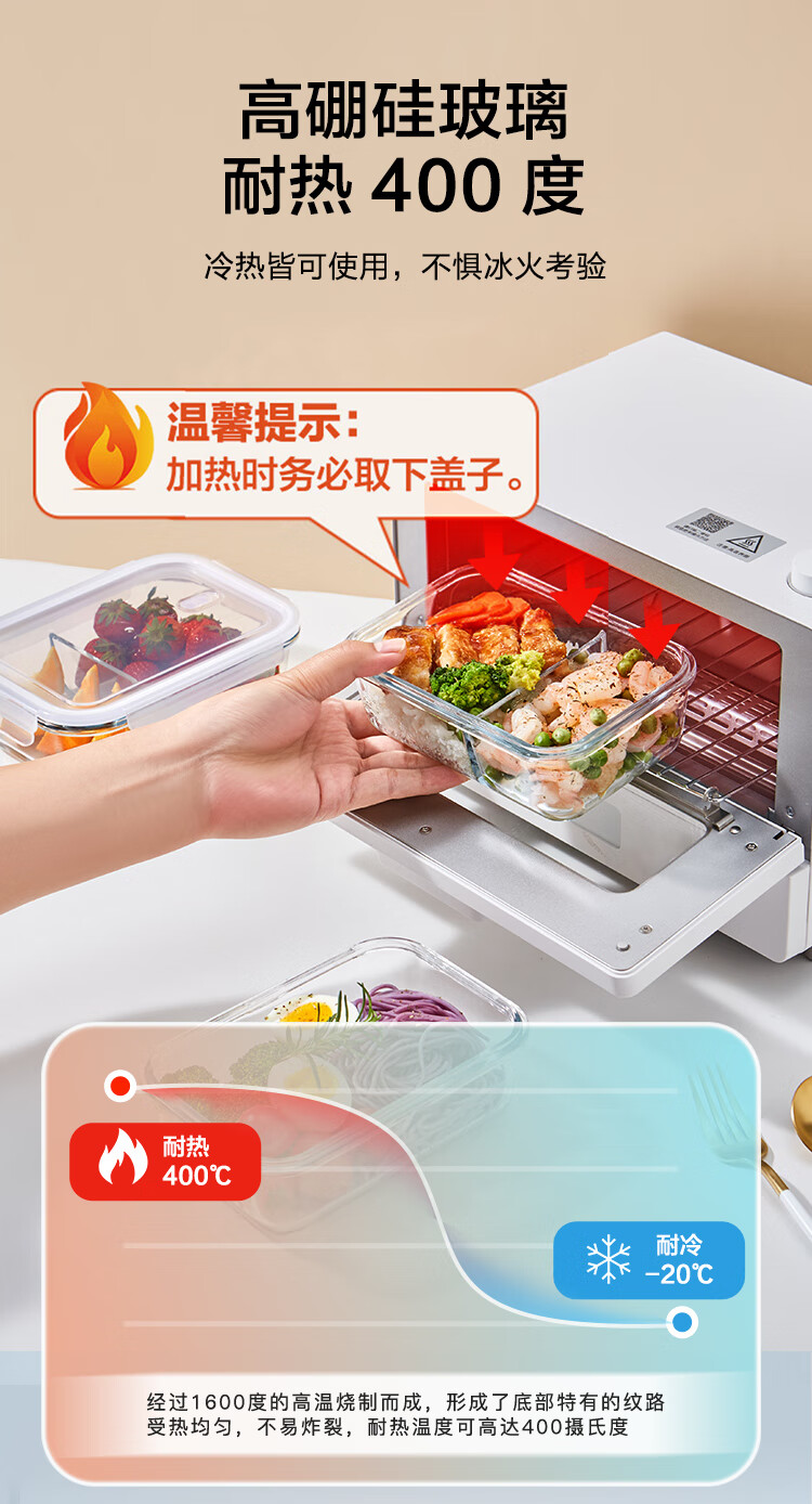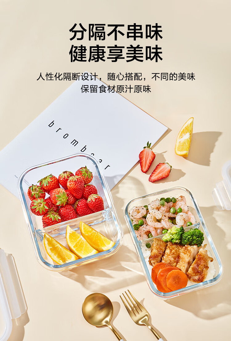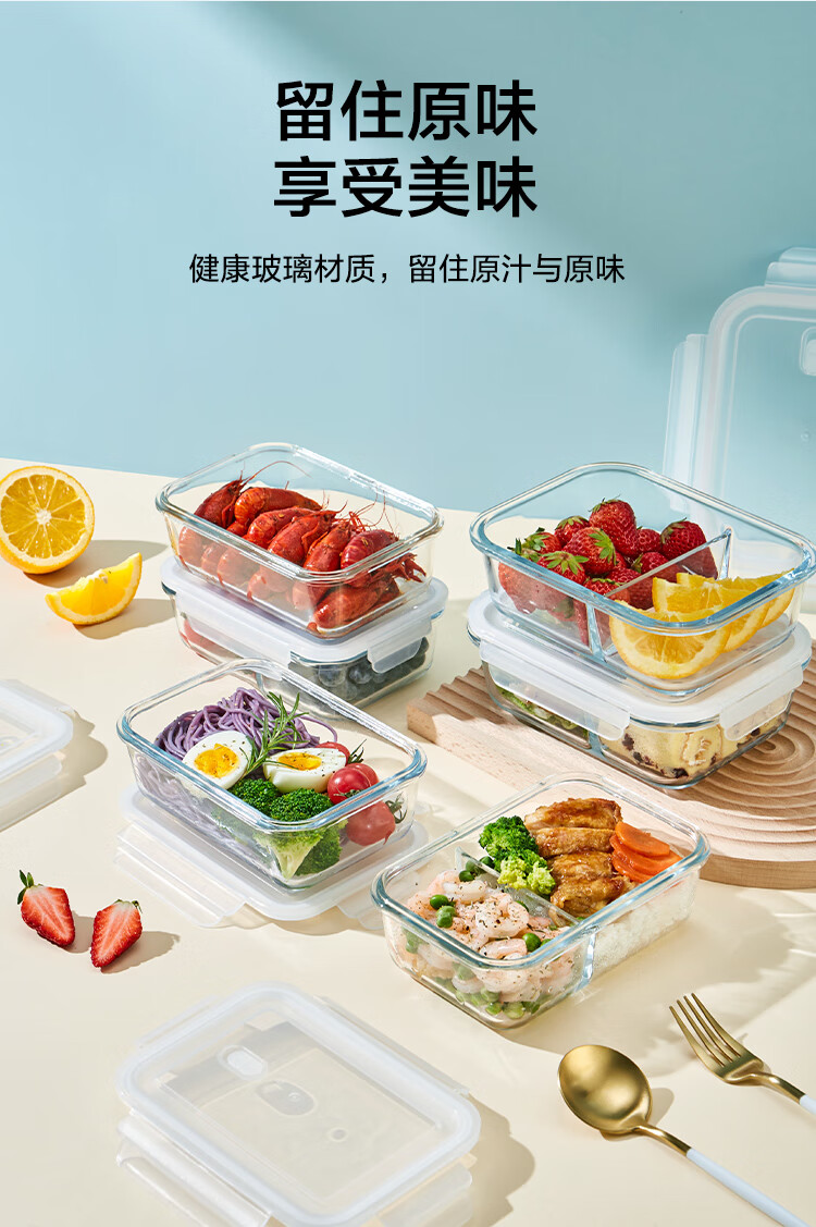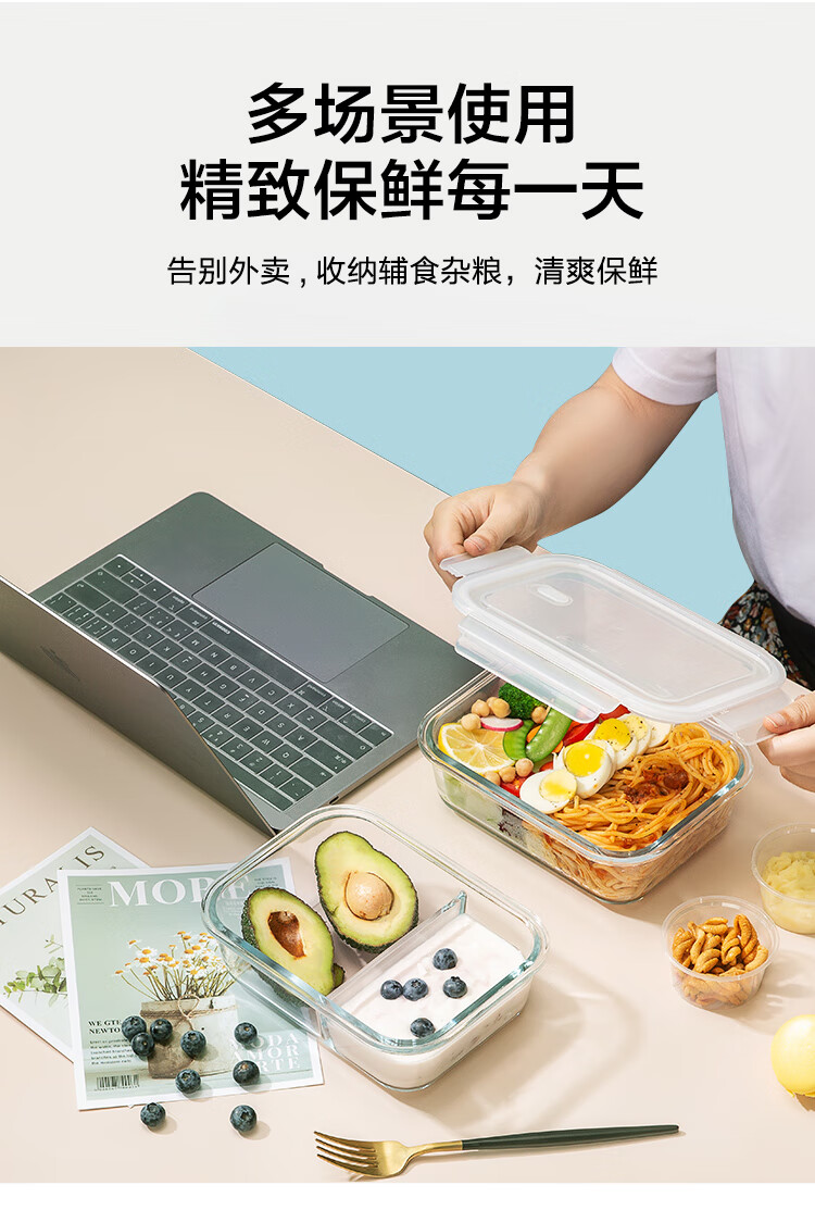 京东京造高硼硅耐热可微波分格保鲜盒学生上班族便当盒两分格1040mL