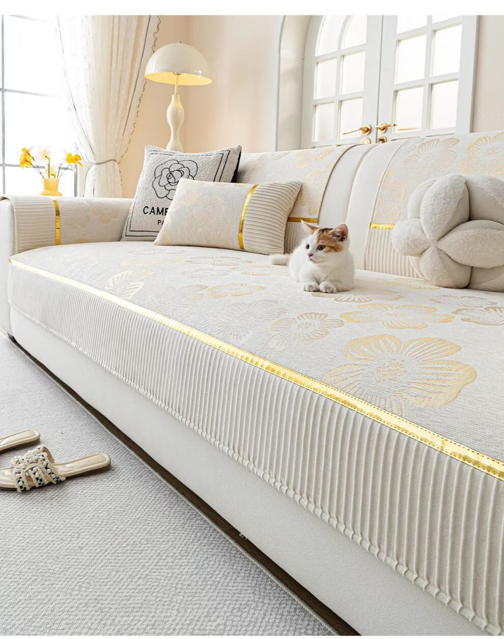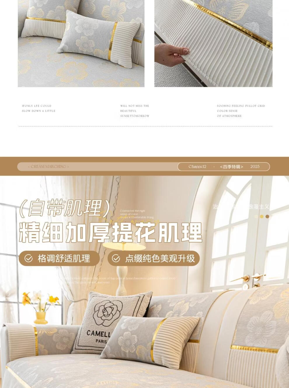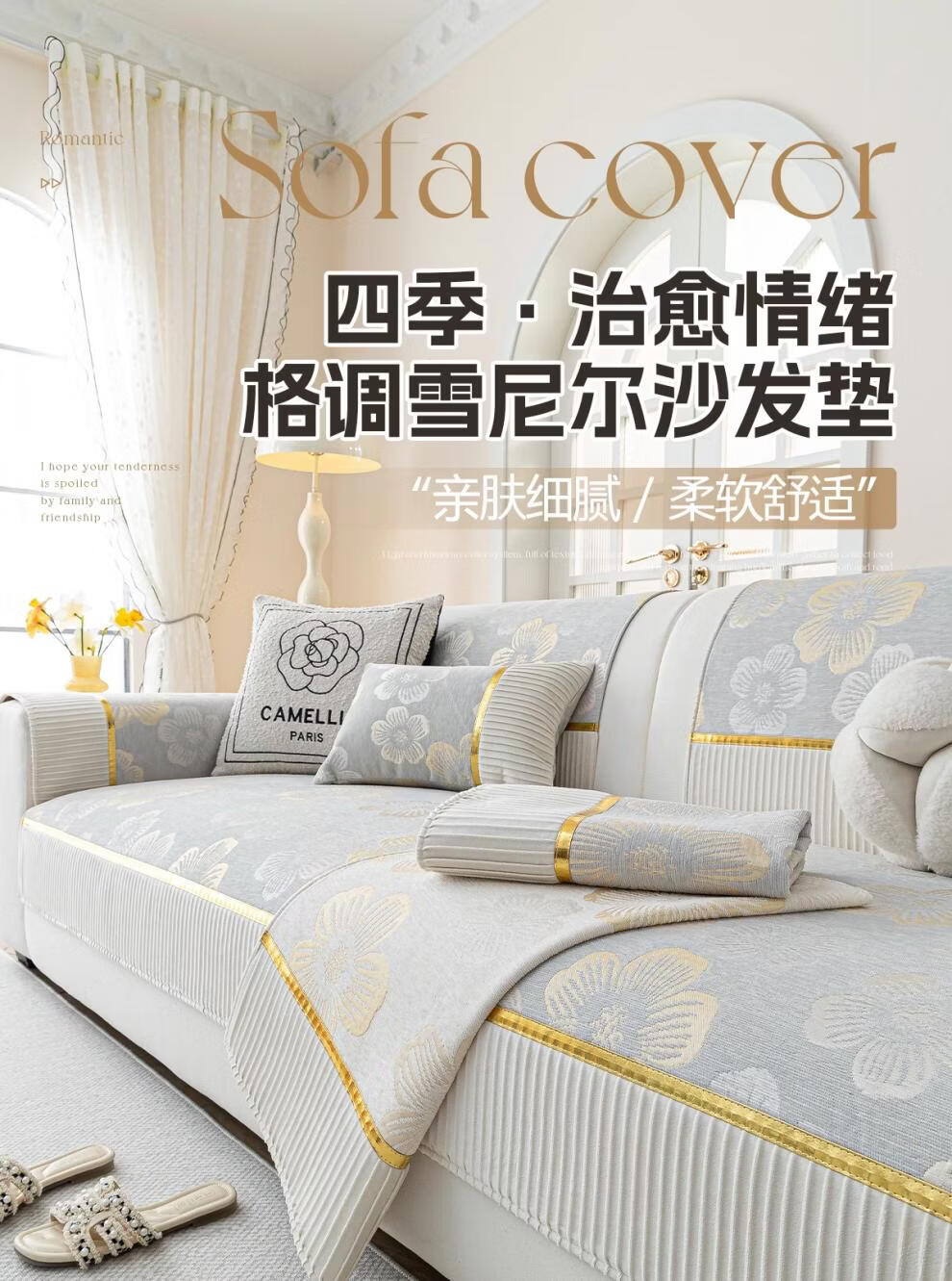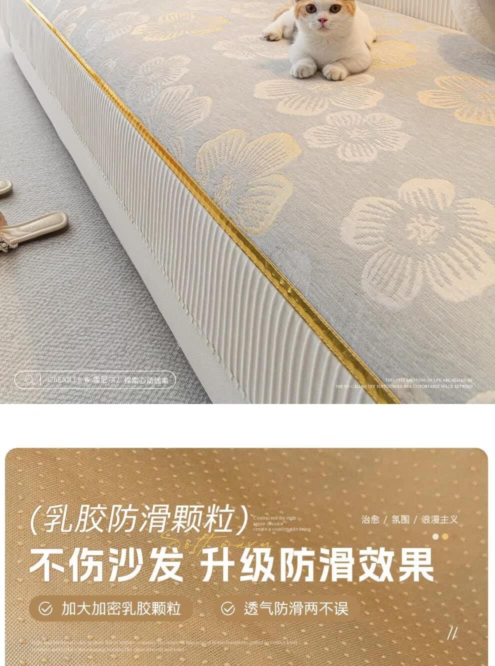 DONOYA 多罗亚雪尼尔轻奢高级沙发垫四季通用防滑2026年新款沙发套罩固定盖布巾 月意-卡其 1cm*1cm 沙发垫定制