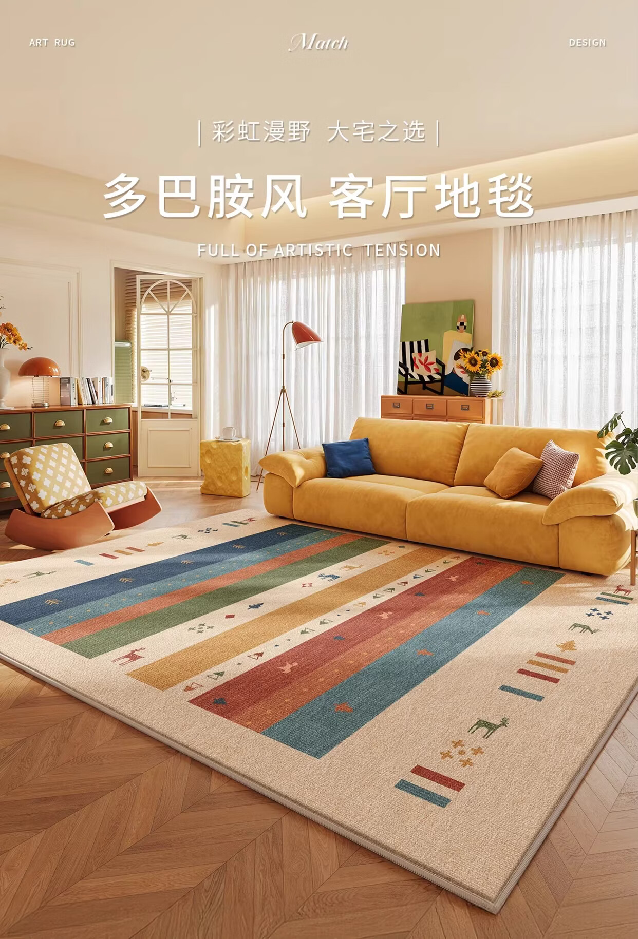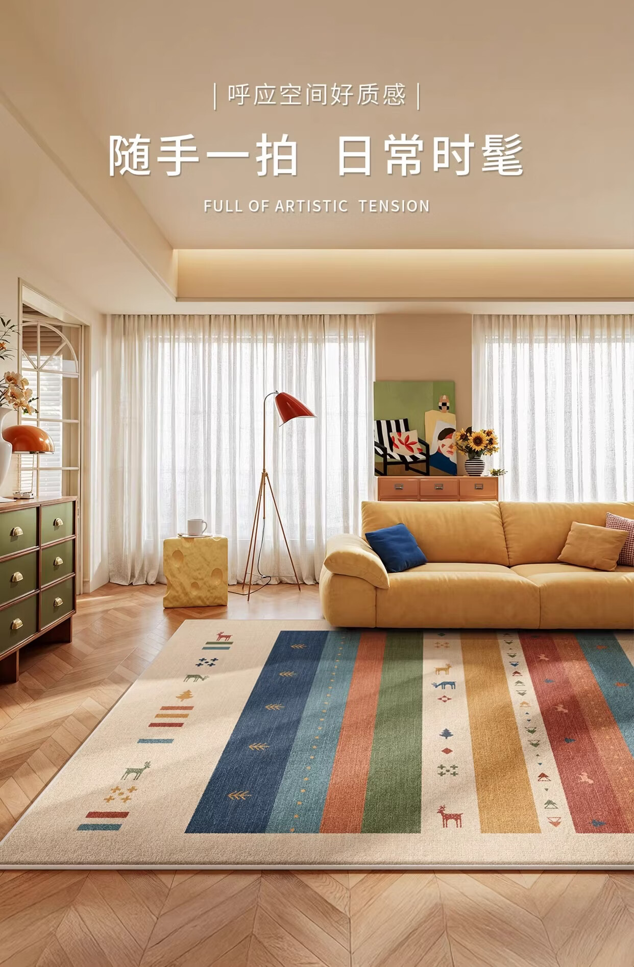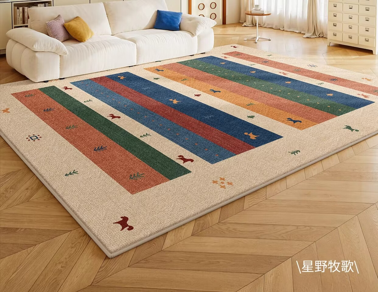 Y U-LIVE复古多巴胺地毯客厅2026新款异形中古风免洗可擦沙发卧室床边 S仿羊绒-彩虹漫野异形 定制请联系客服【享优惠】