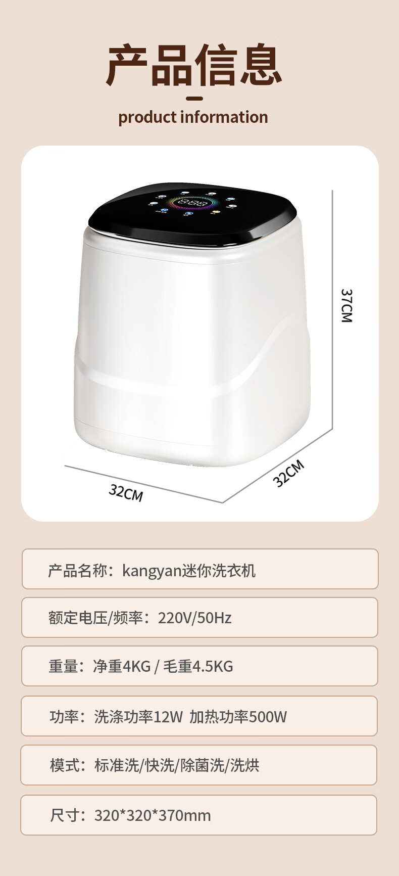 KANGYAN内衣裤洗衣机 95℃高温煮洗 三重杀菌 母婴专用洗脱一体不锈钢内桶 【洗烘脱一体】巴氏除菌·除菌99.9%·不锈钢内胆