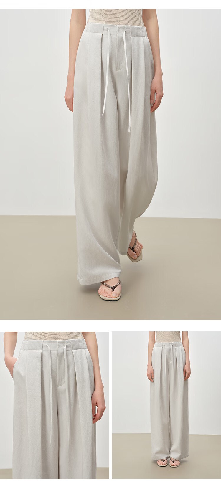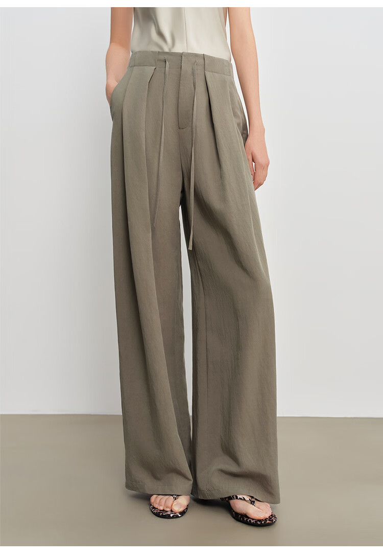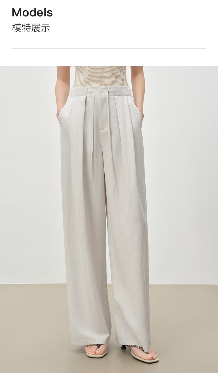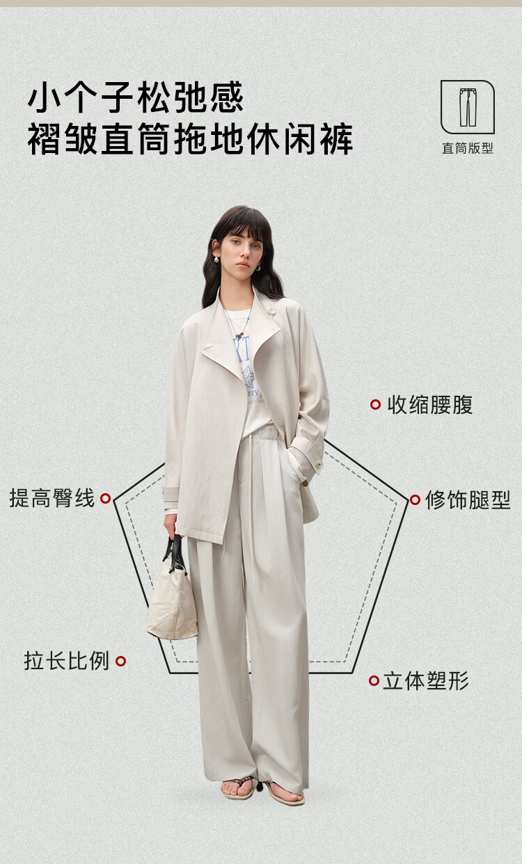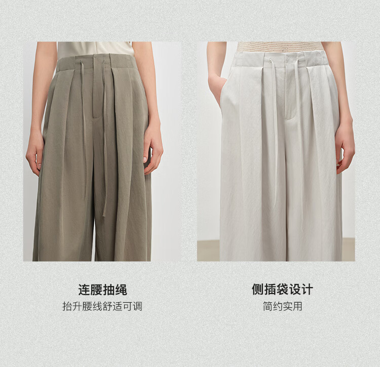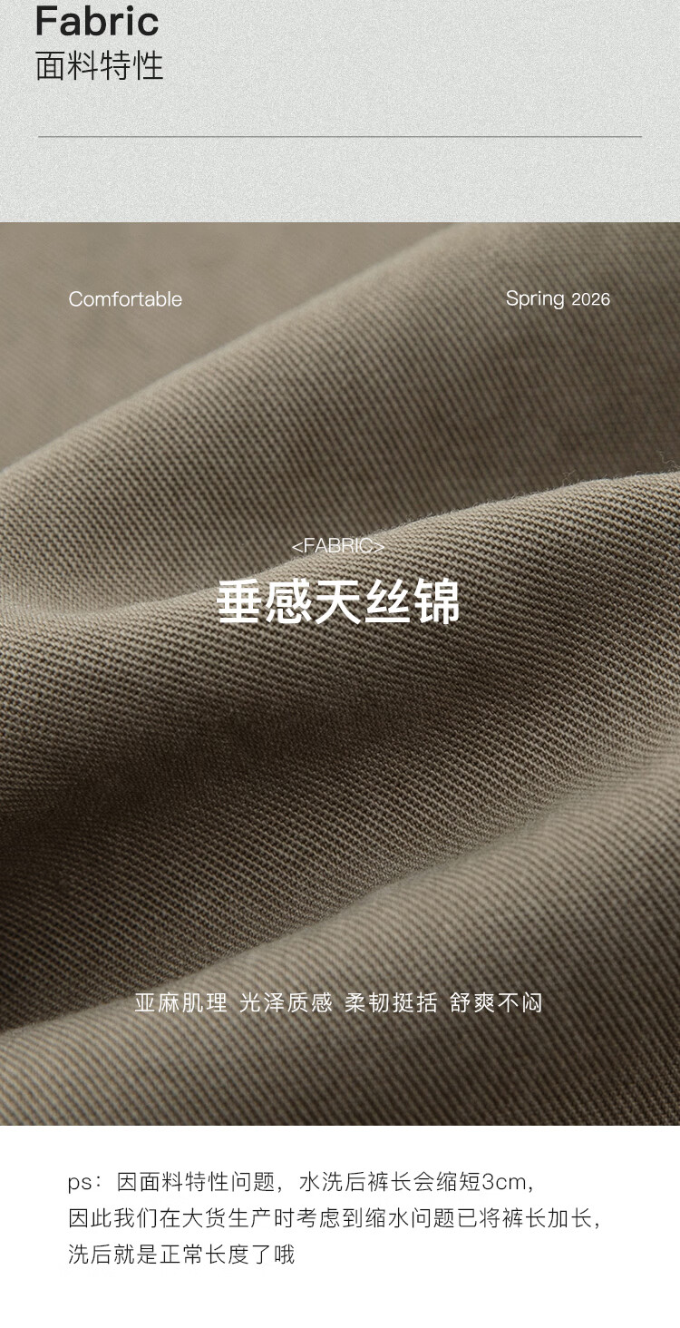 自巧小个子松弛感莱赛尔立体褶皱直筒拖地抽绳休闲裤女2026春新品 冰川灰 M (尺码:4)
