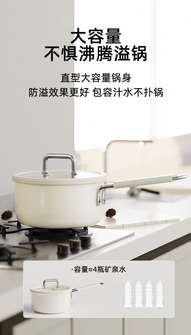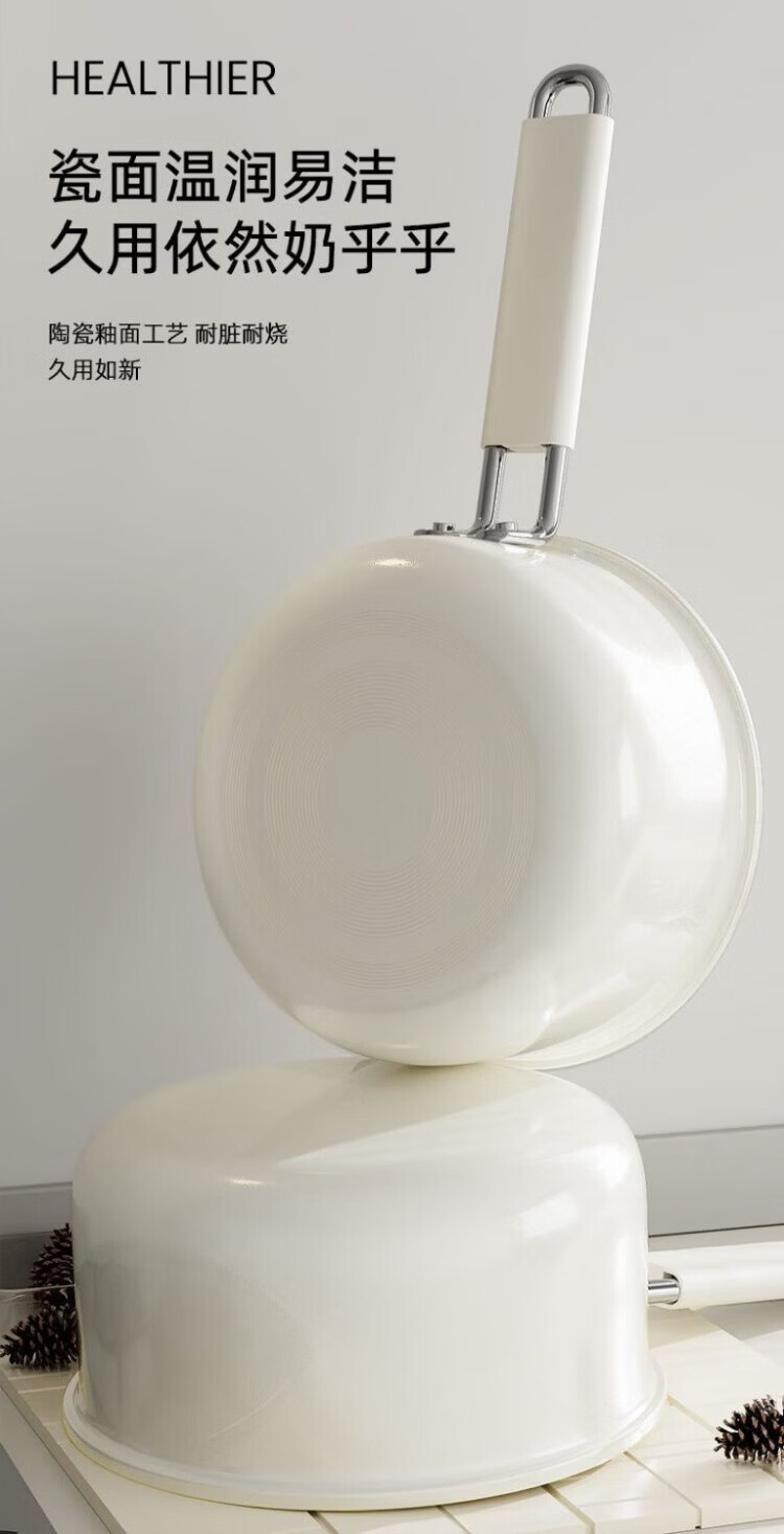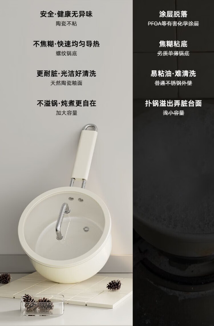 OCMOGO日本品牌奶锅不粘锅一人食婴儿宝宝辅食奶锅大容量电磁炉燃气灶通 陶瓷奶锅【带盖】 18cm