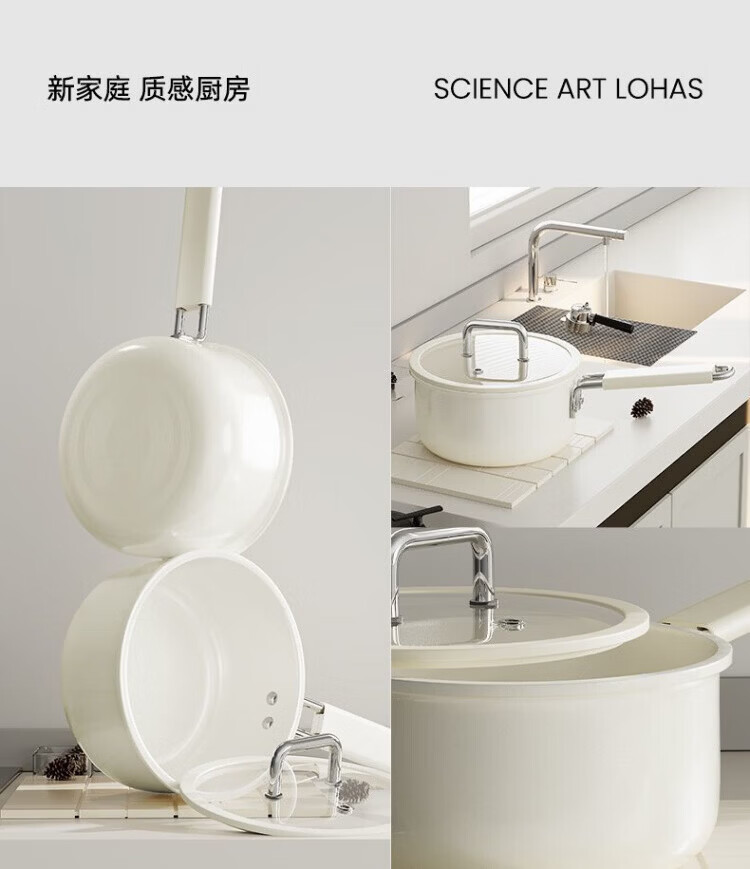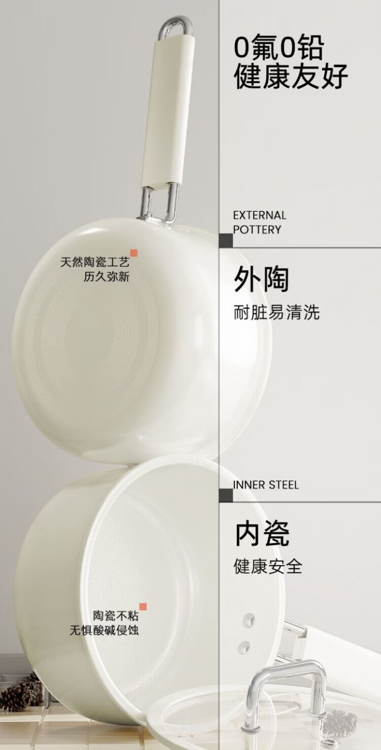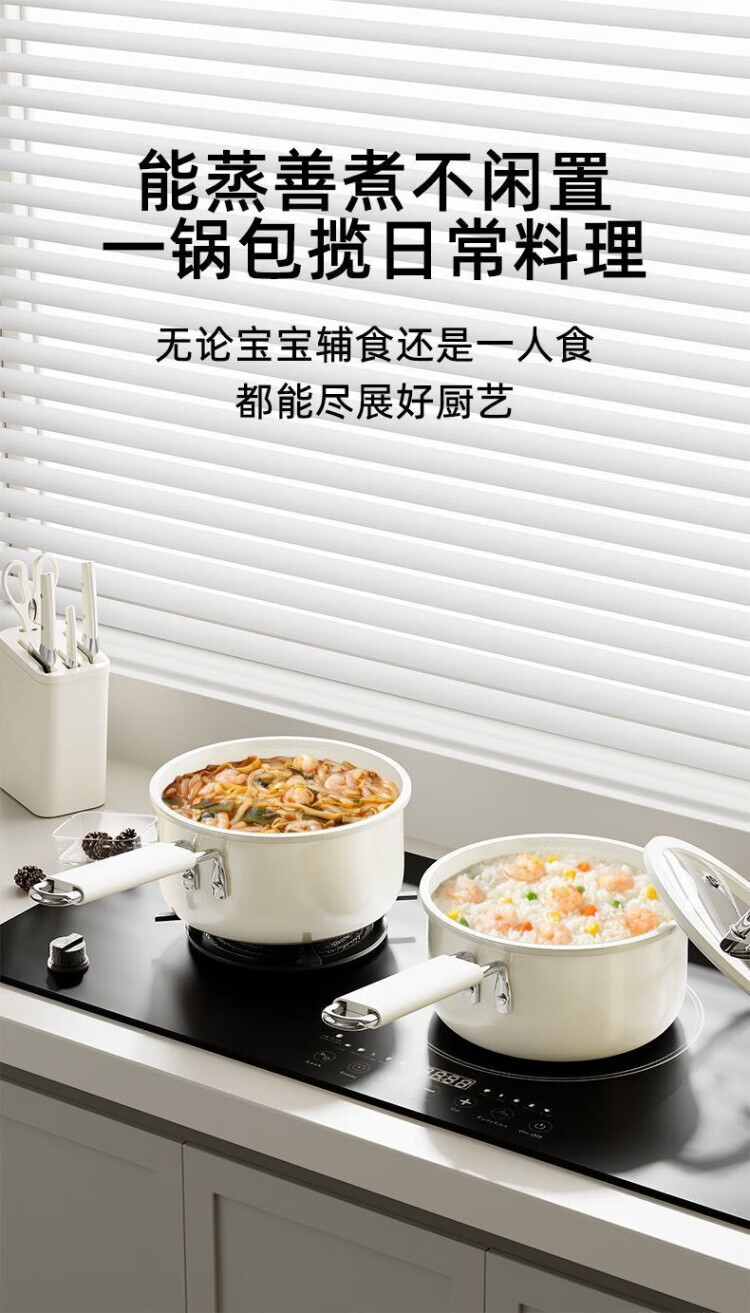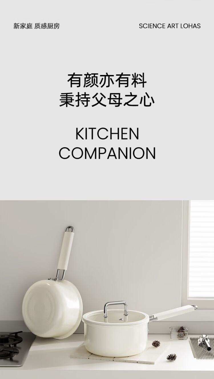 OCMOGO日本品牌奶锅不粘锅一人食婴儿宝宝辅食奶锅大容量电磁炉燃气灶通 陶瓷奶锅【带盖】 18cm
